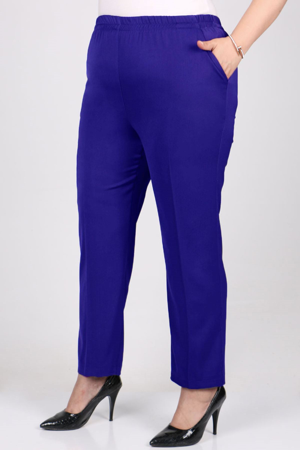 F-29020 Büyük Beden Beli Lastikli Boru Paça En Boy Pantolon - Saks