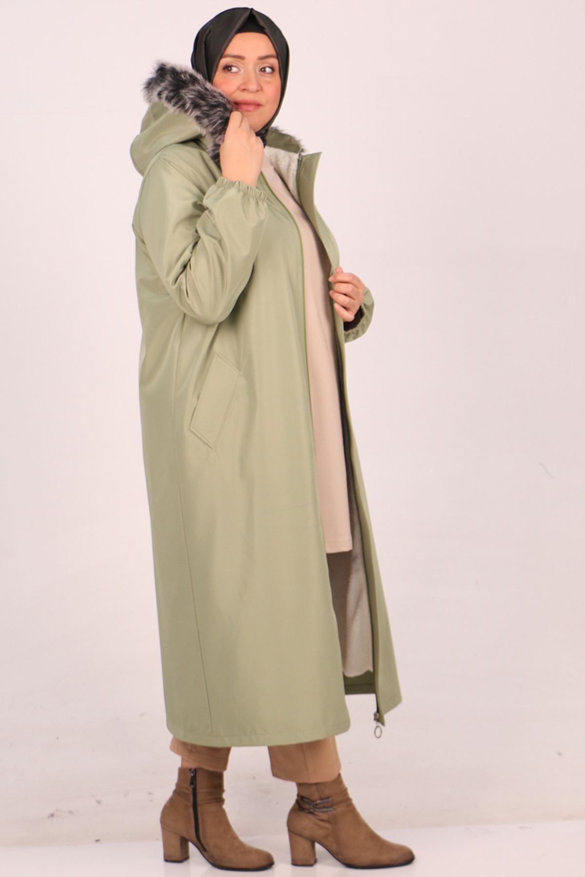 33069 Büyük Beden Kürk Astarlı Bondit Kap - Nefti