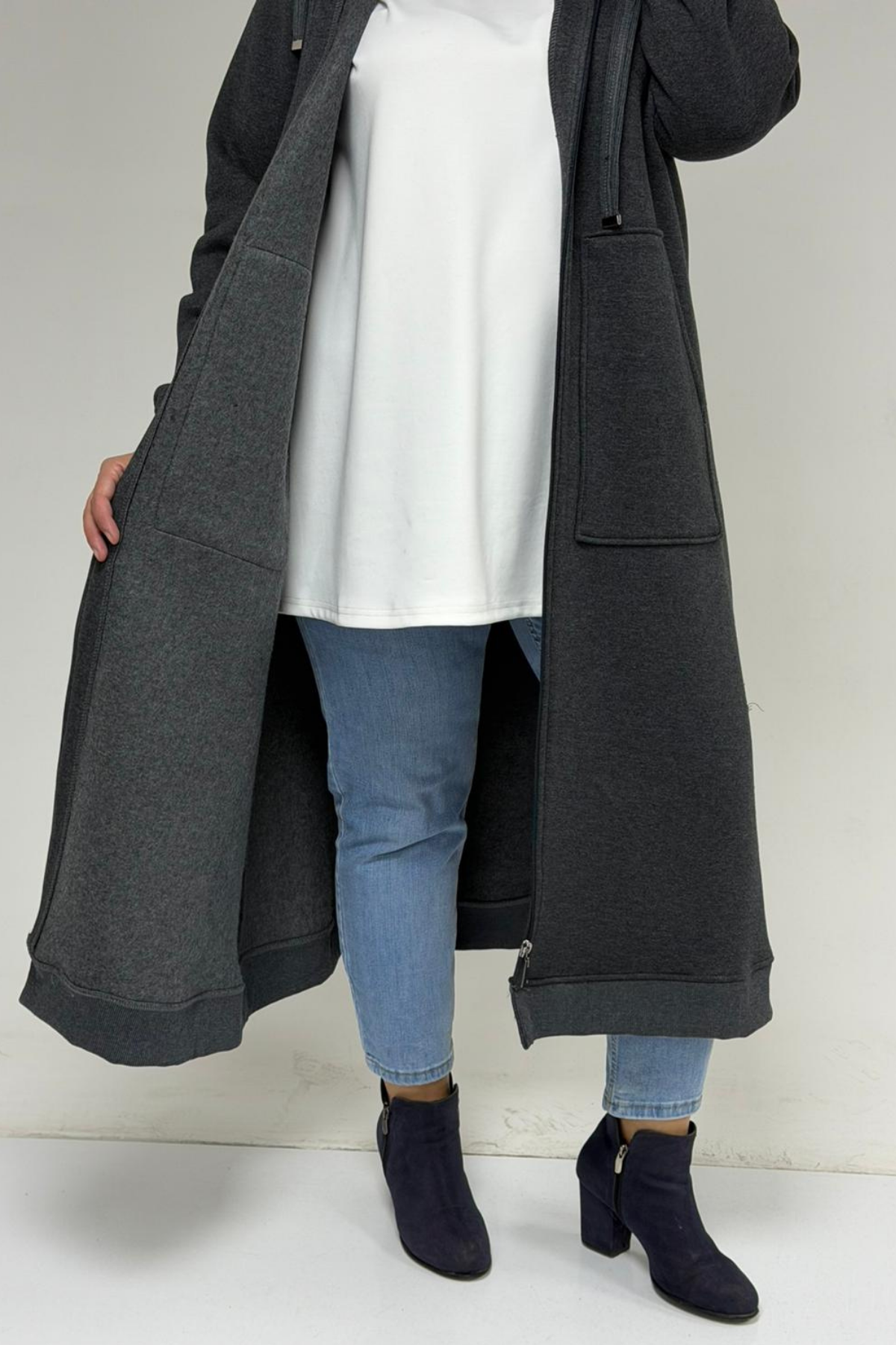33103 Büyük Beden Fermuarlı Üç İplik Kap - Antrasit