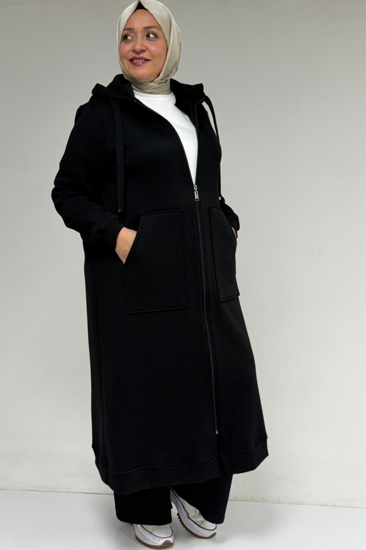 33103 Büyük Beden Fermuarlı Üç İplik Kap - Siyah