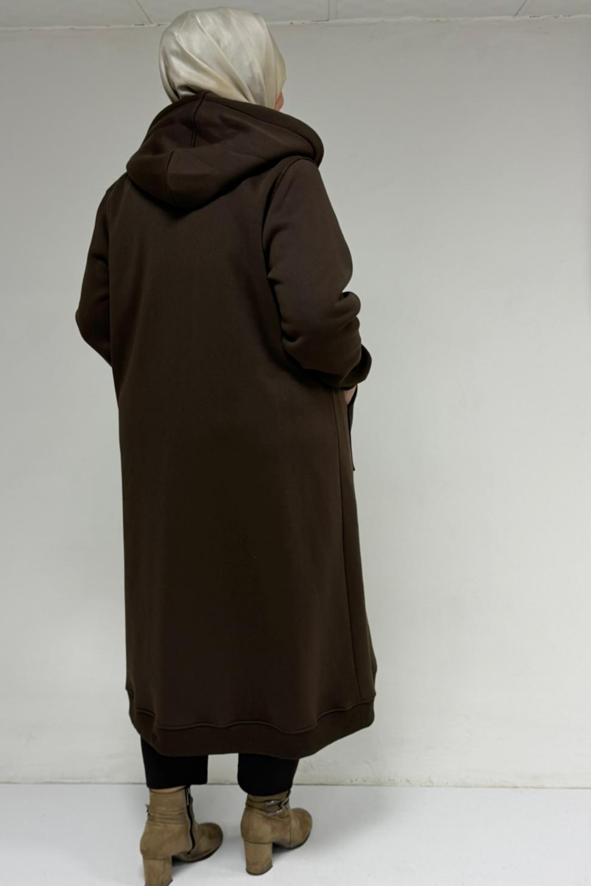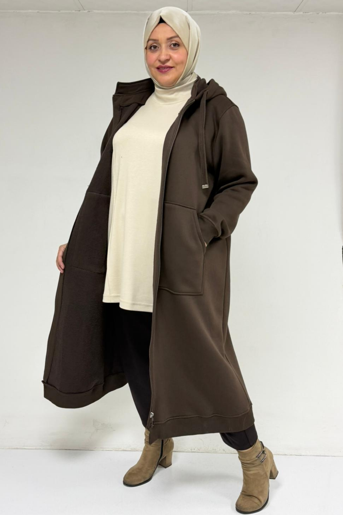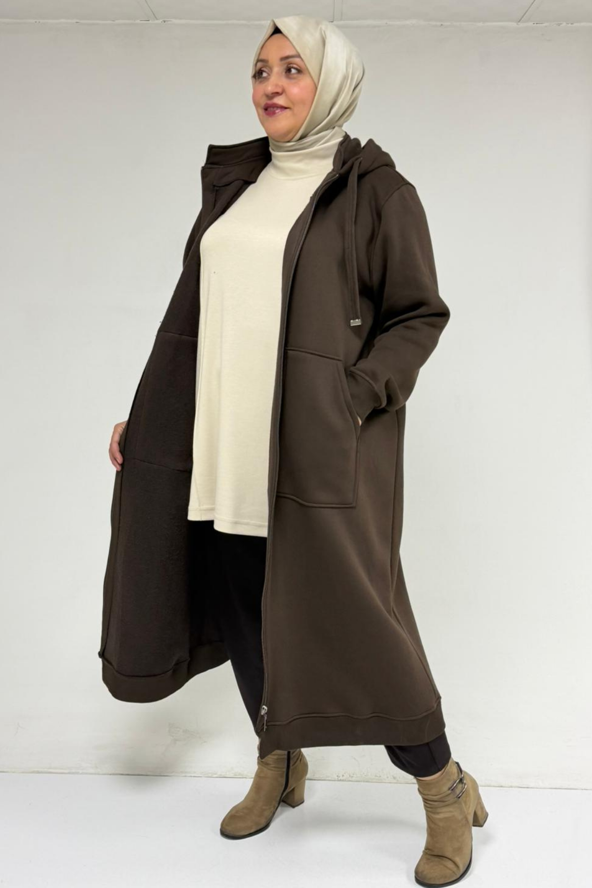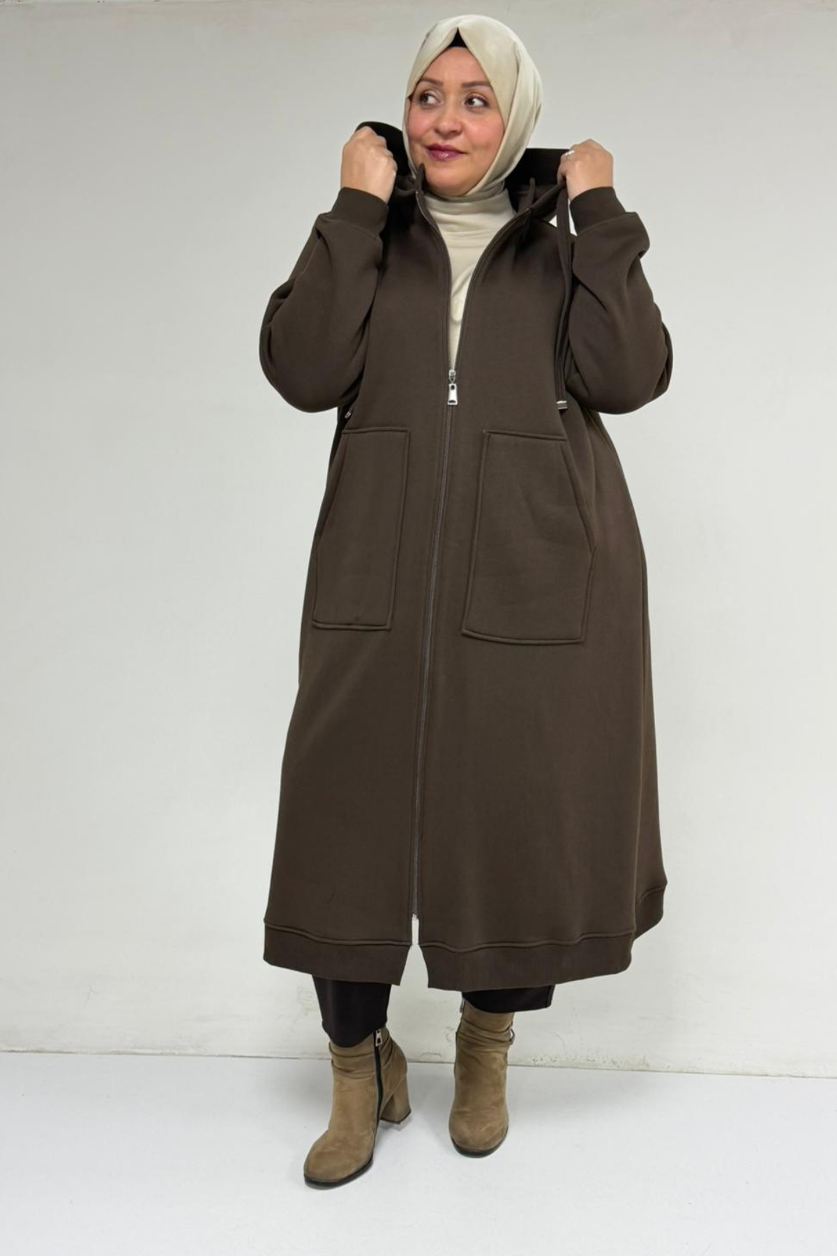 33103-E Büyük Beden Fermuarlı Üç İplik Kap - Kahve