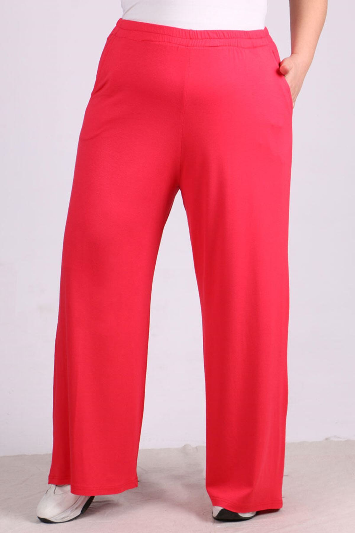 39000 Büyük Beden Yüksek Beli Lastikli Penye Pantolon - Kırmızı