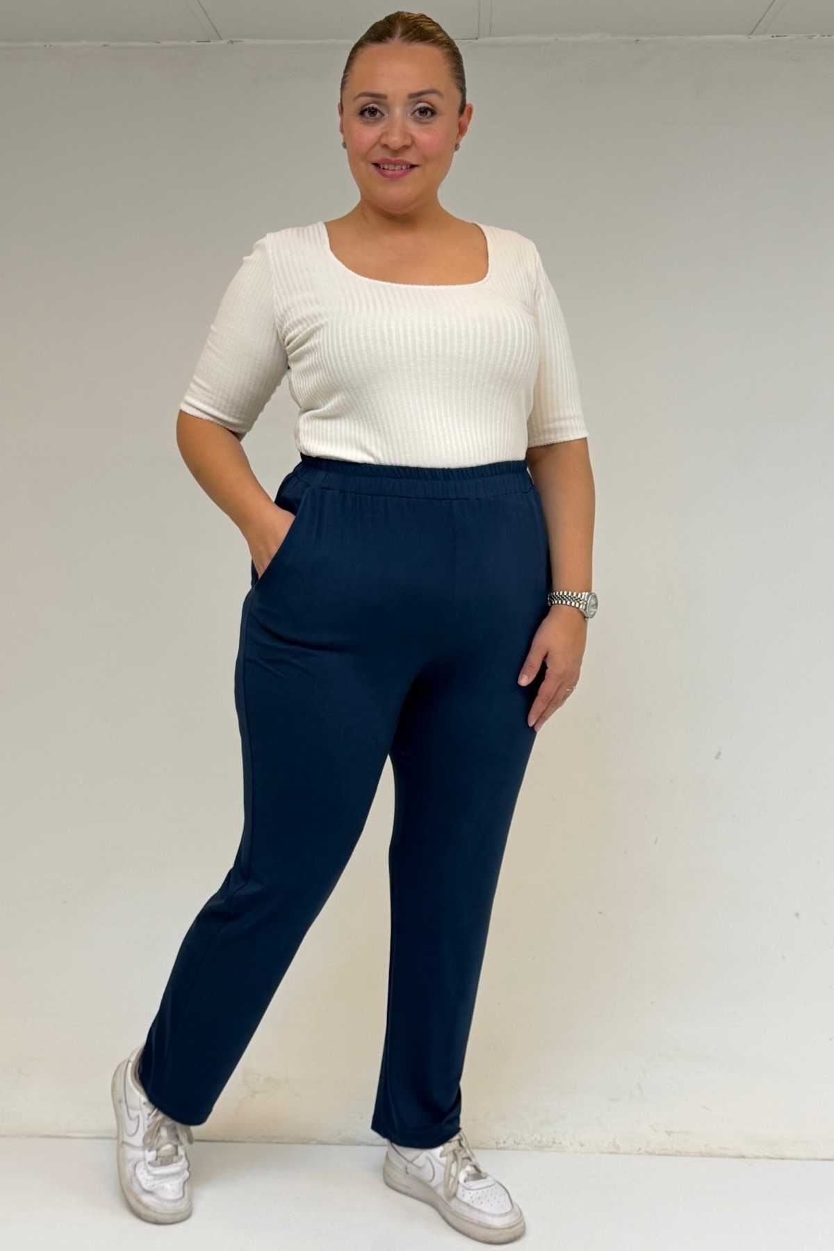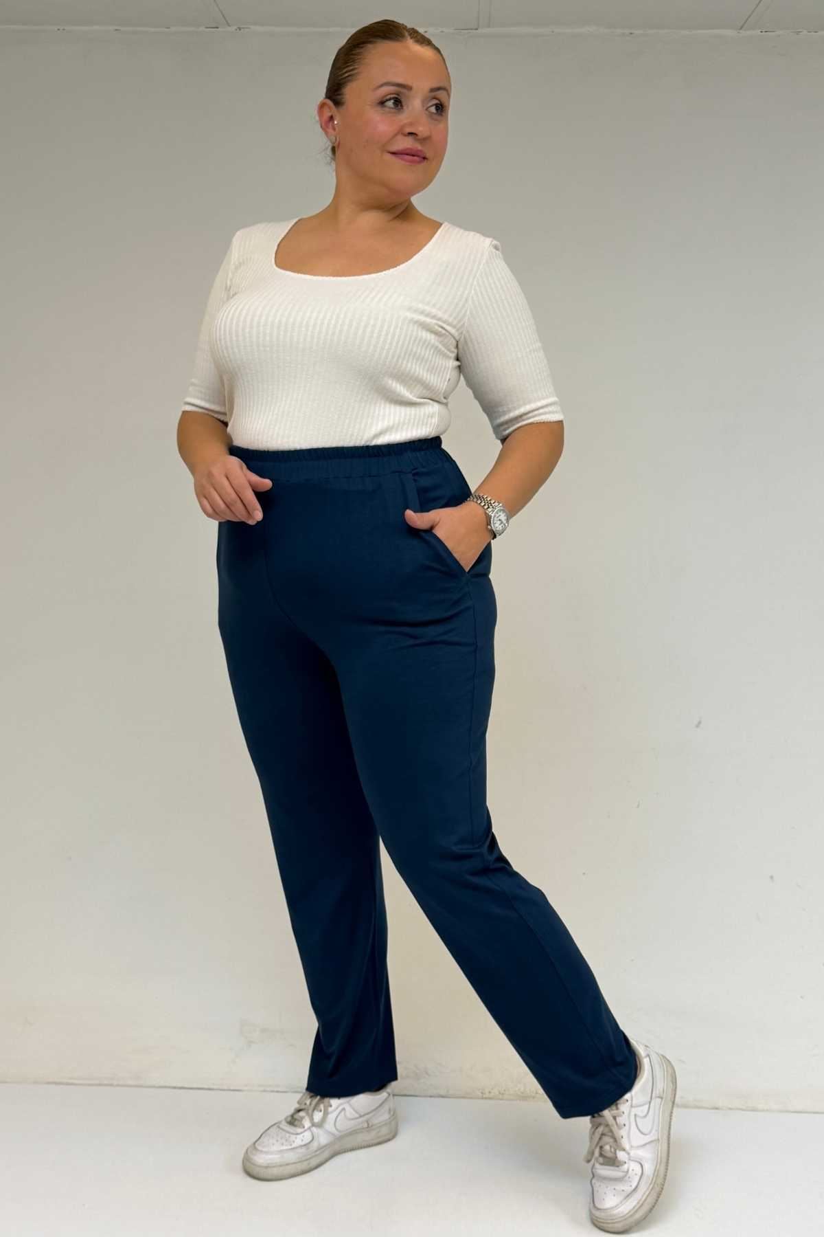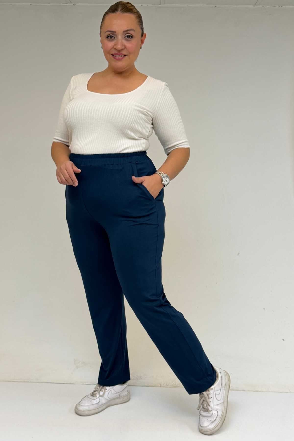 39001 Büyük Beden Yüksek Beli Lastikli Penye Pantolon -Petrol