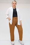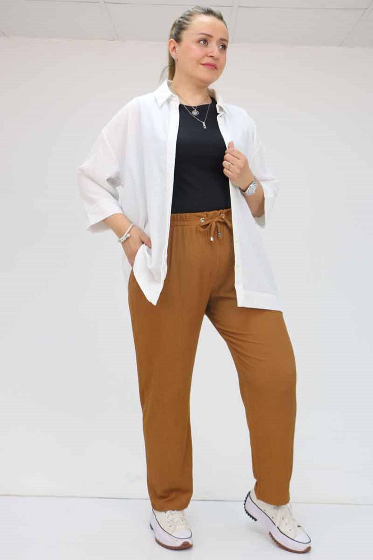 39011 Büyük Beden Lastikli Bürümcük Dar Paça Pantolon - Taba