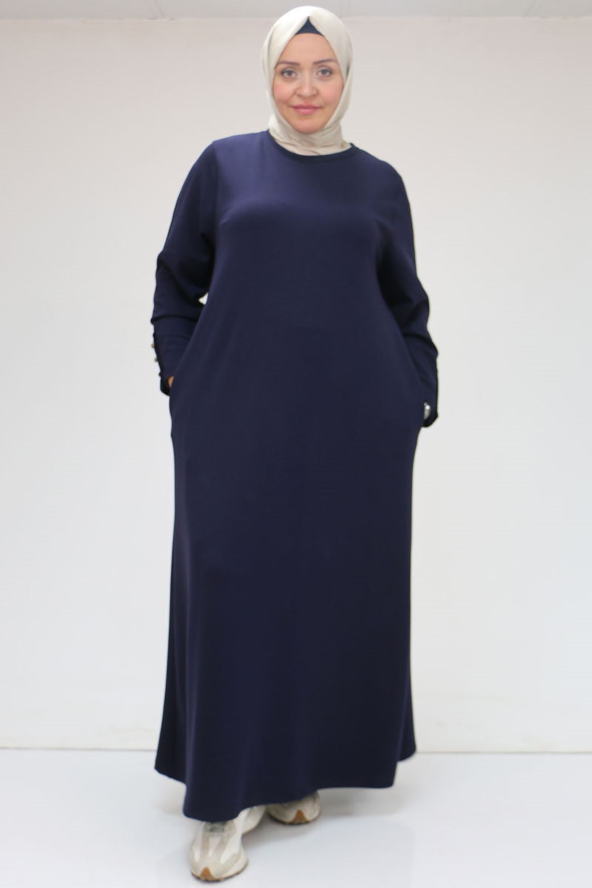 42031 Büyük Beden Cepli Patlı Oysho Elbise - Lacivert
