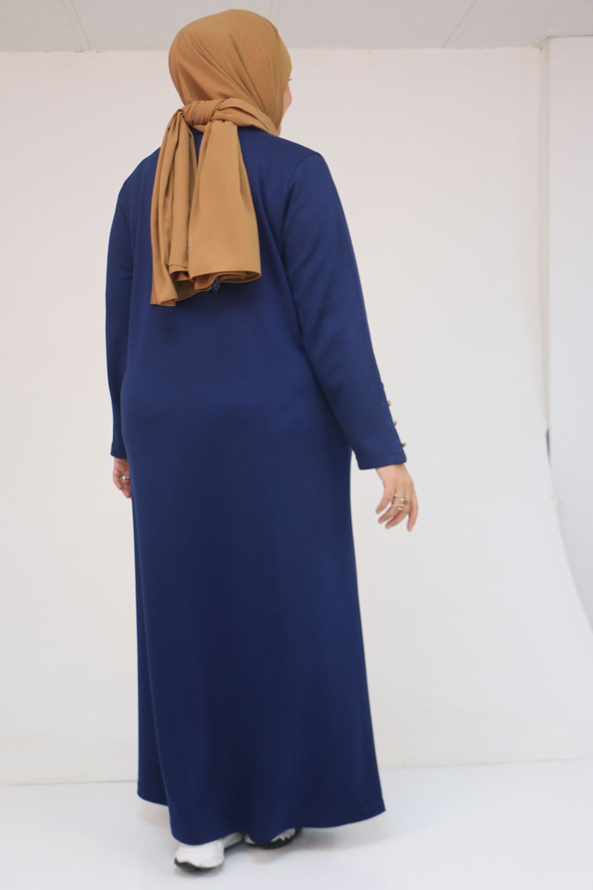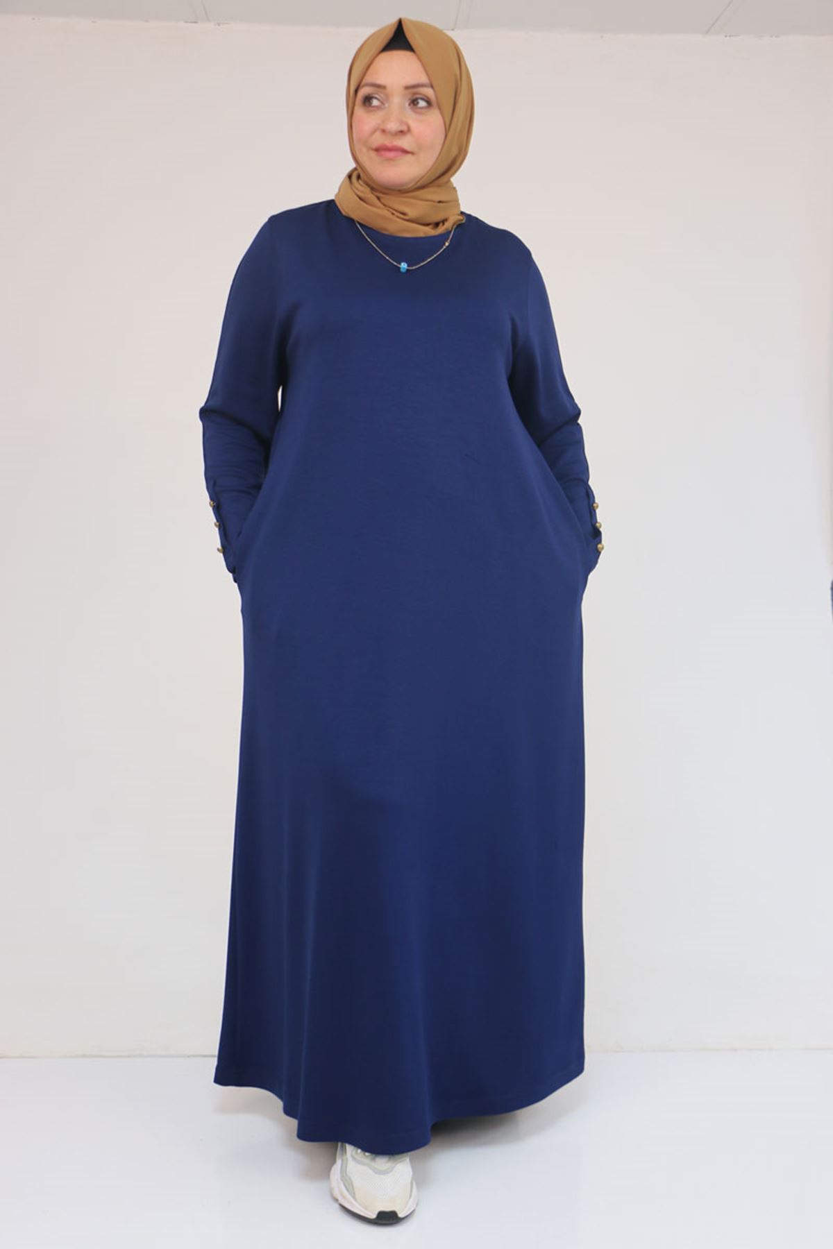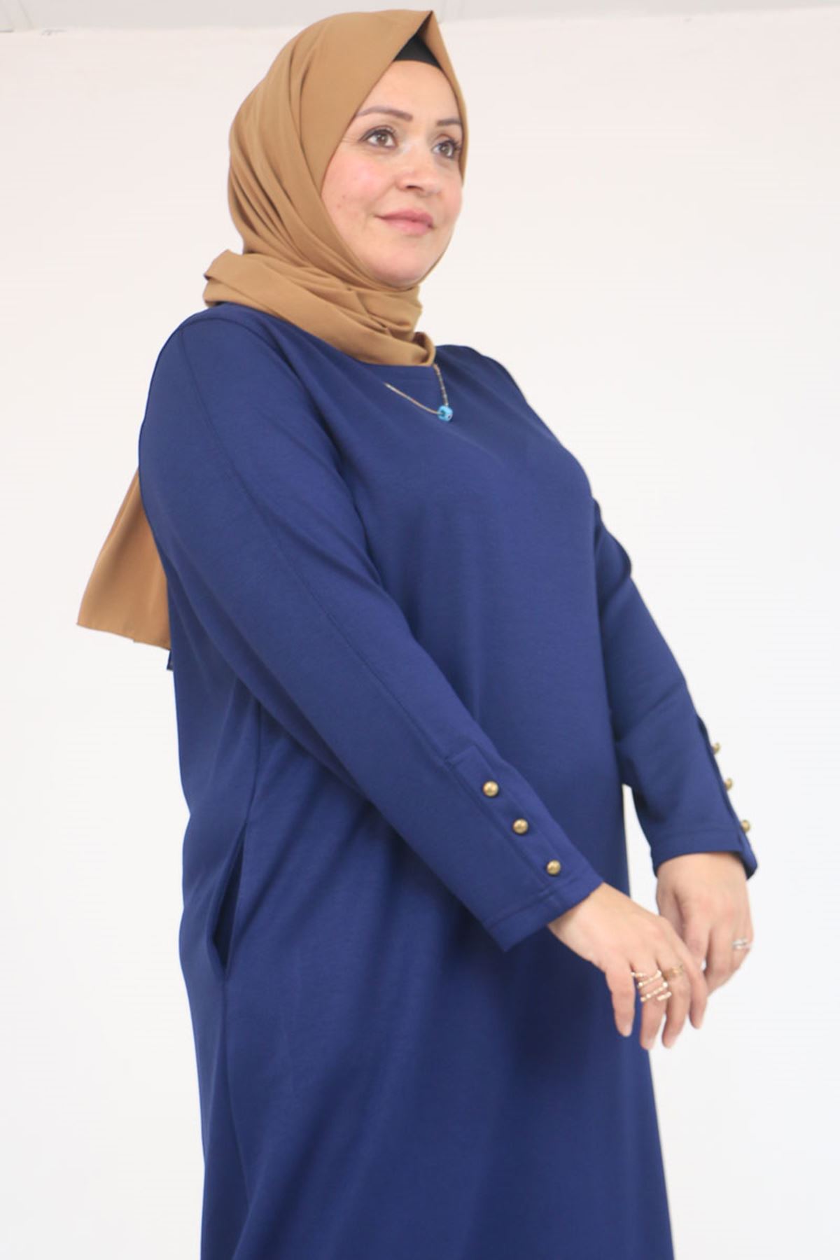 42031 Büyük Beden Cepli Patlı Modal Elbise - İndigo