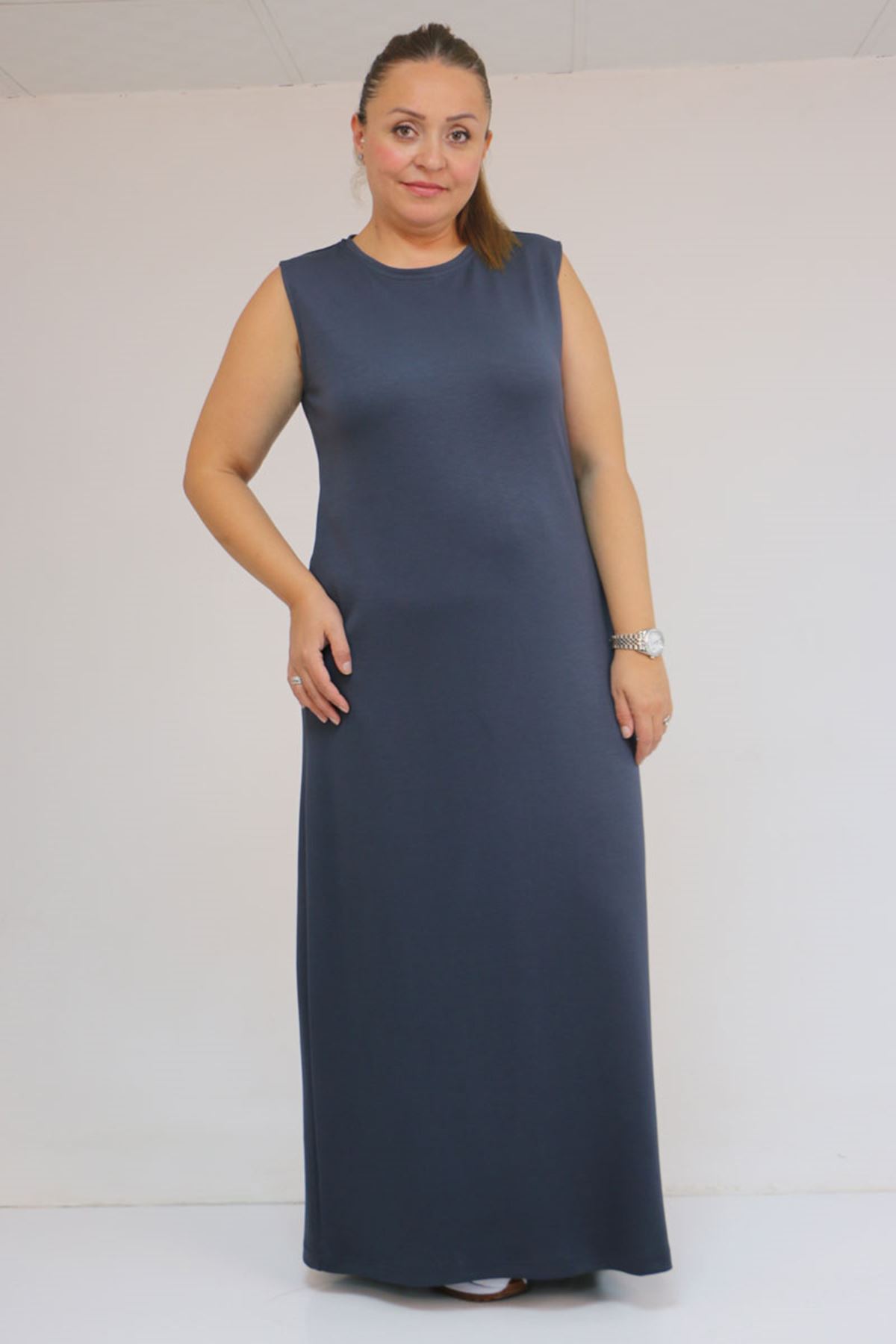 42050 Büyük Beden Modal Kolsuz Elbise - Antrasit
