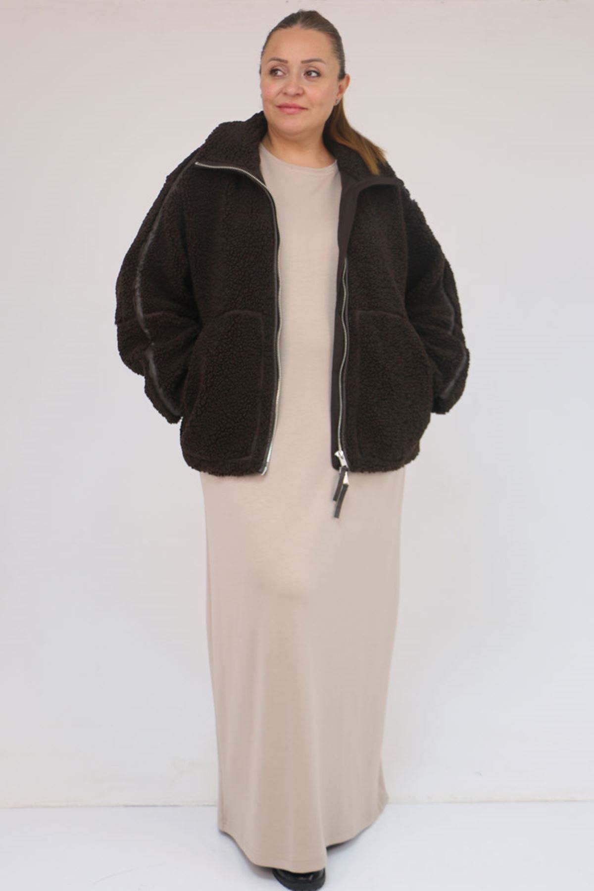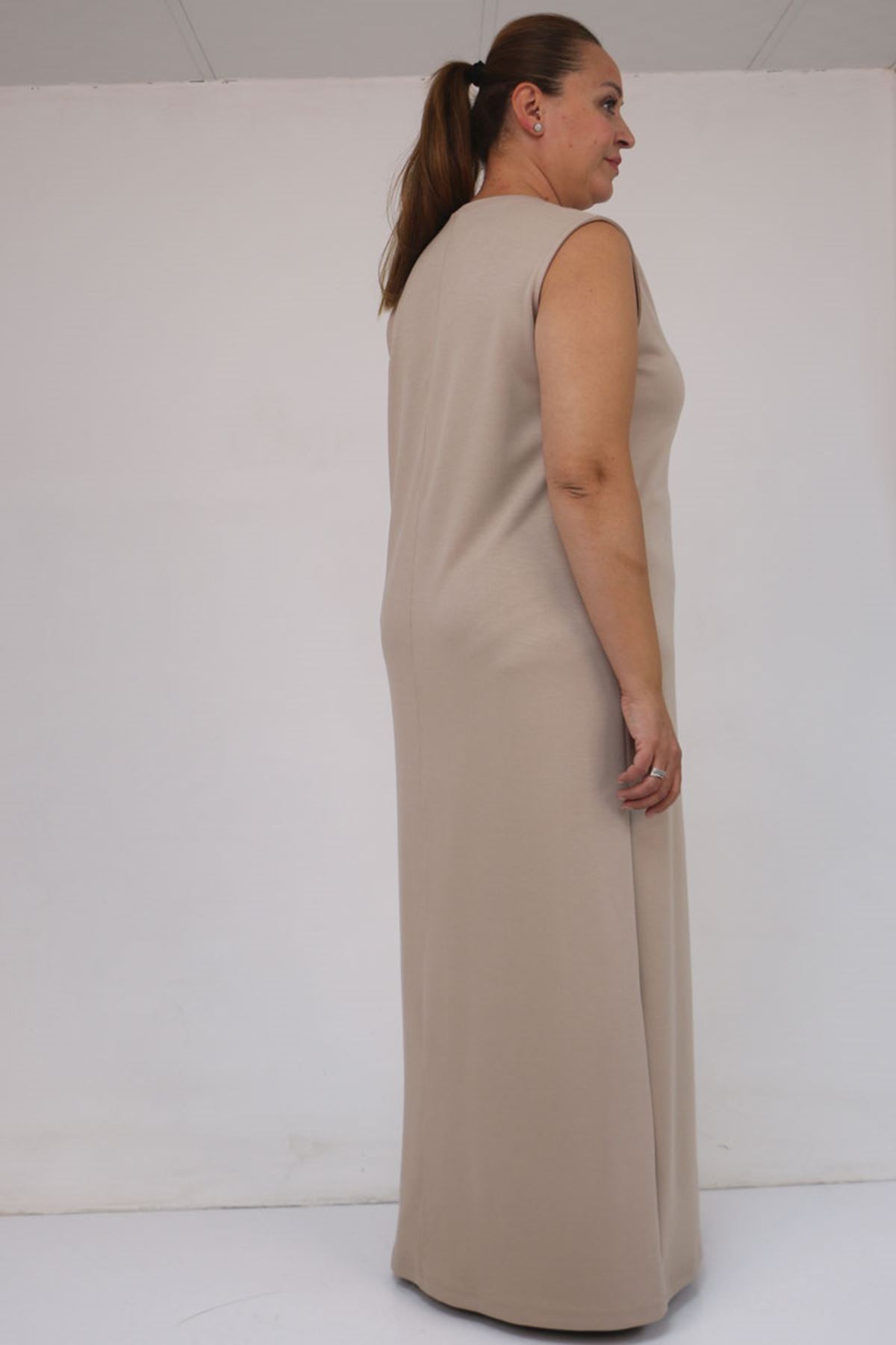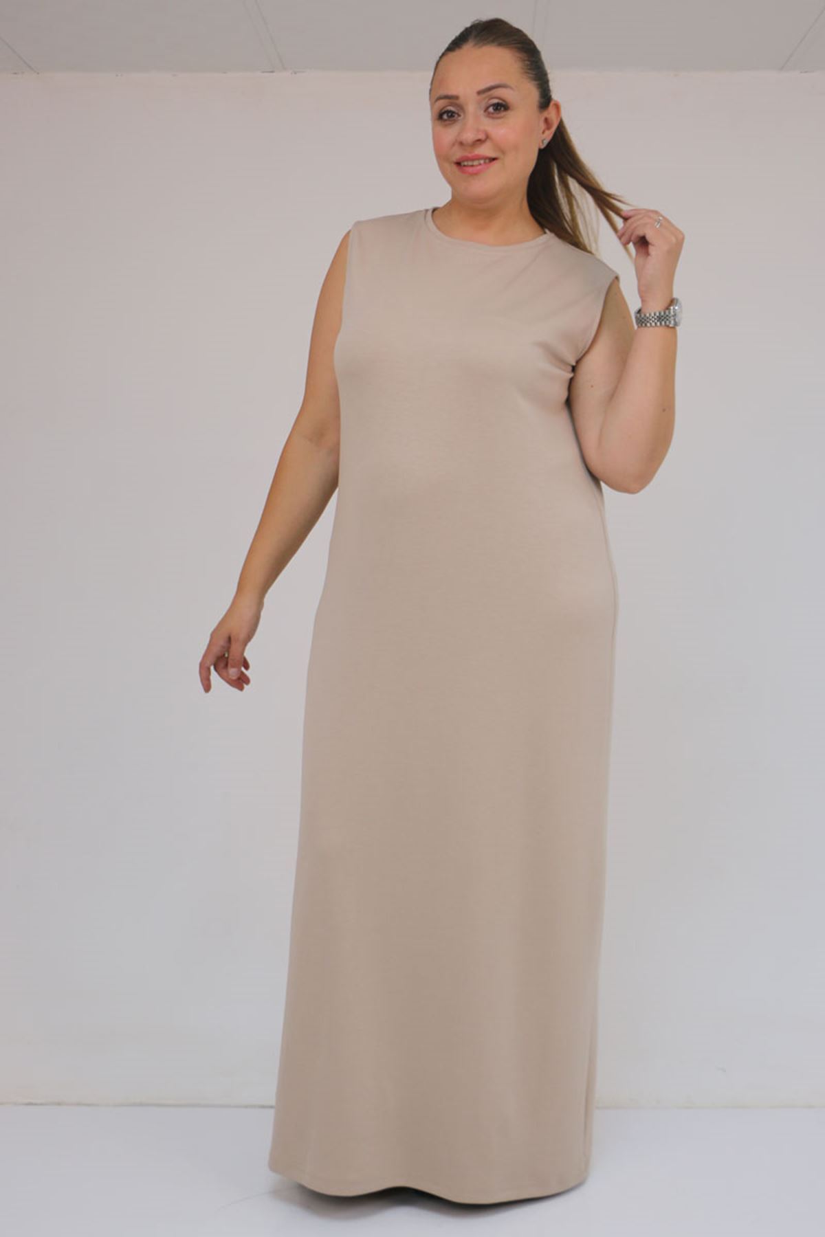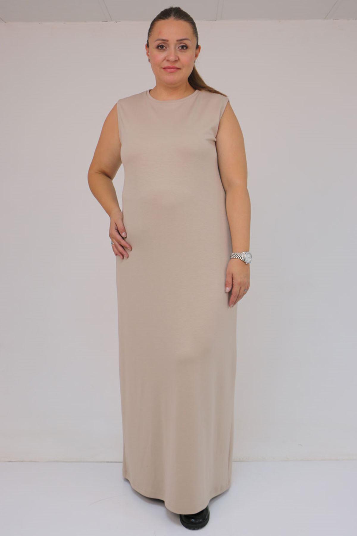 42050 Büyük Beden Modal Kolsuz Elbise - Bej