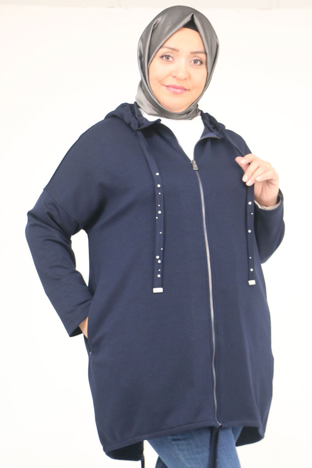 43068 Büyük Beden Eteği Oval Kesim Modal Ceket - Lacivert