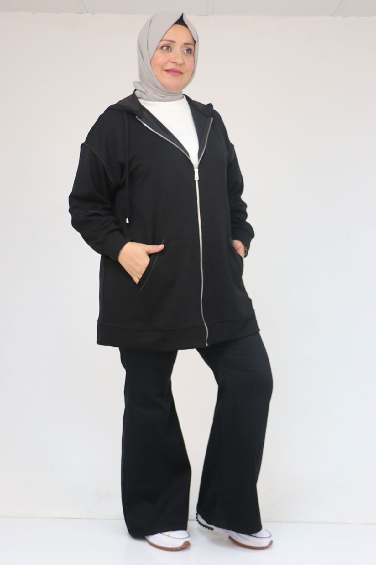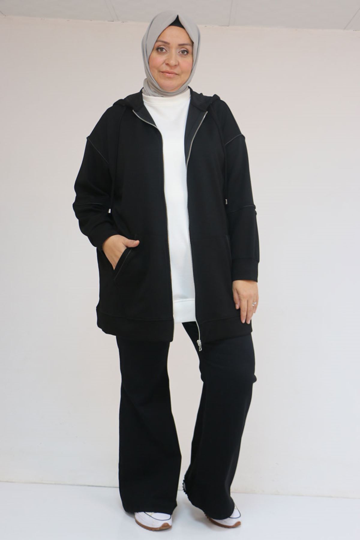 43072 Büyük Beden Waterport Biyeli Oysho Ceket - Siyah