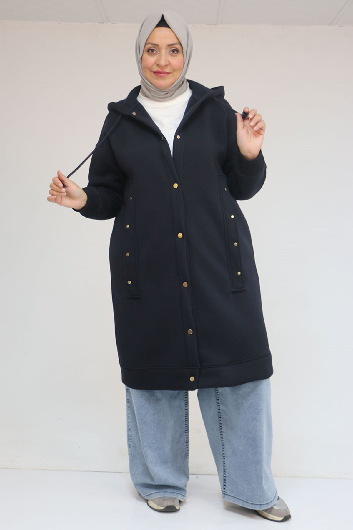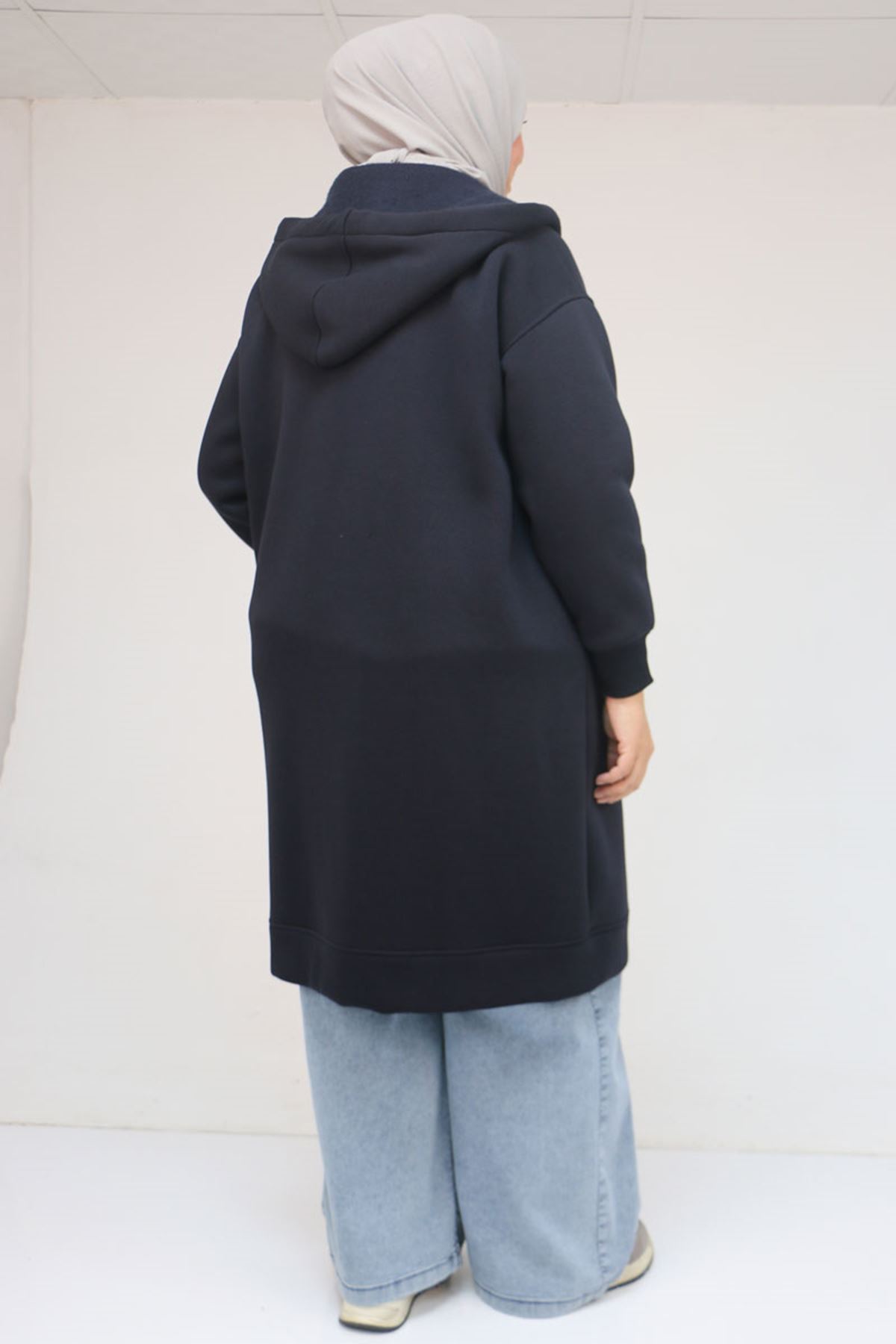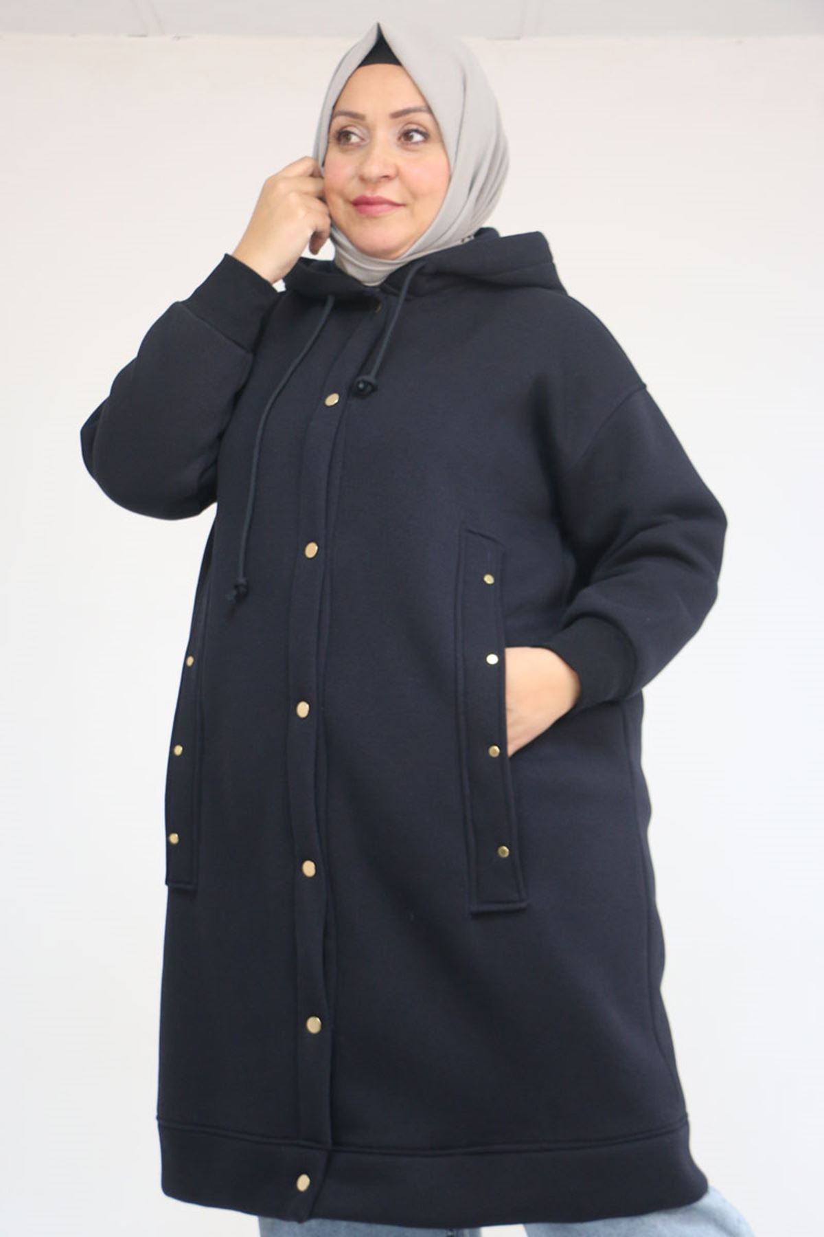 43077 Büyük Beden Kol Ve Etek Ucu Ribanalı Üç İplik Kap - Lacivert