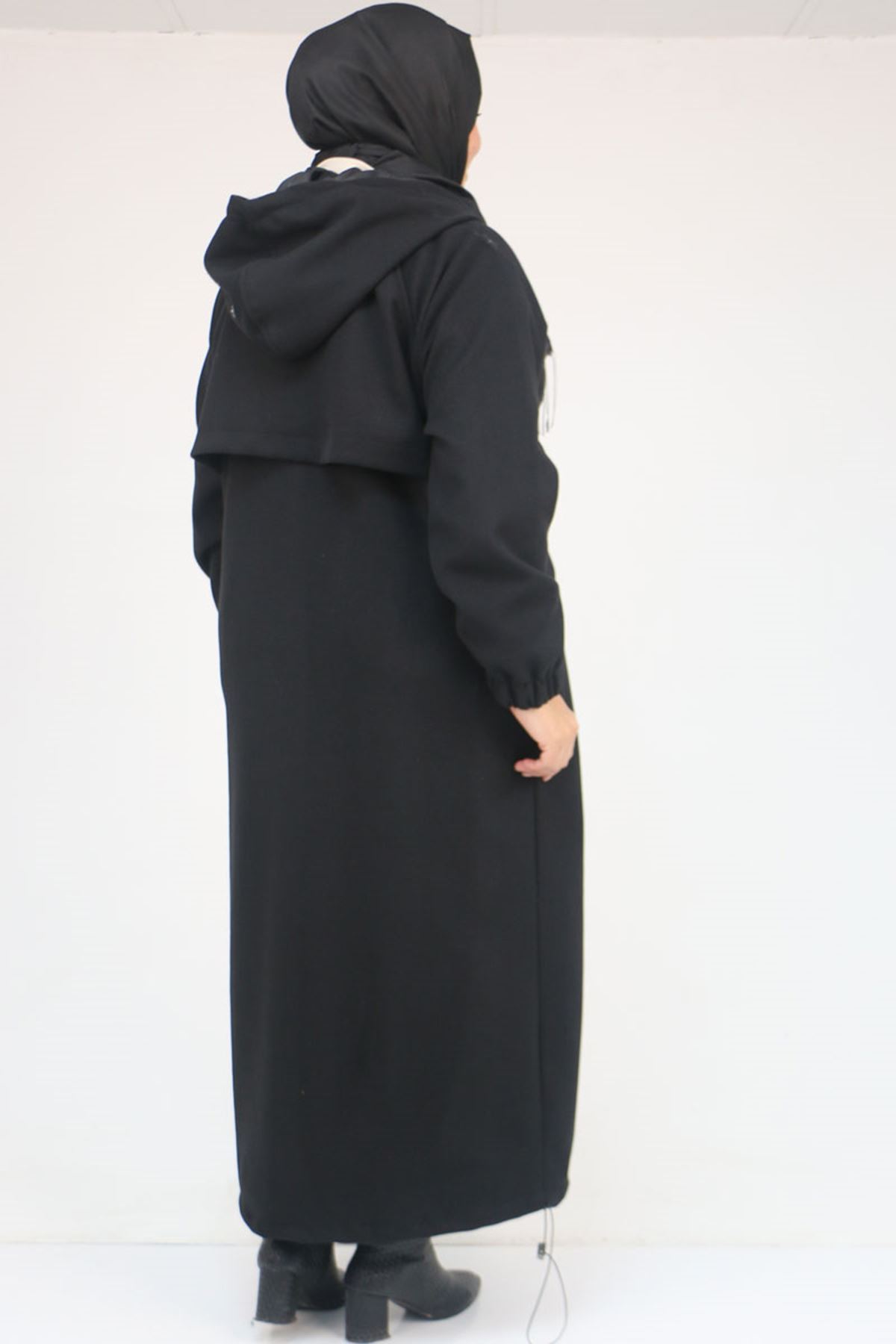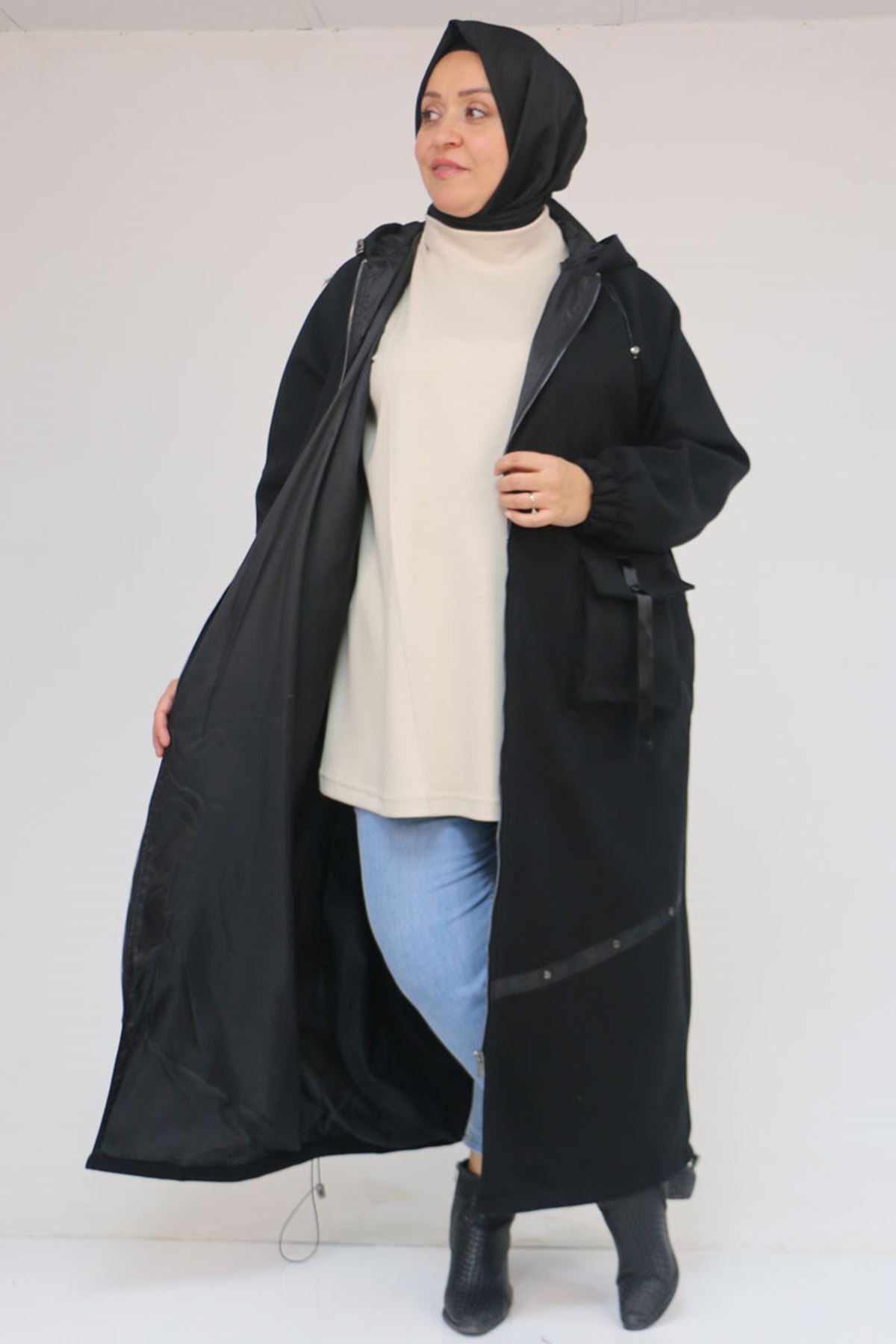 43082 Büyük Beden Eteği Bebe Lastikli Kaşe Kaban - Siyah