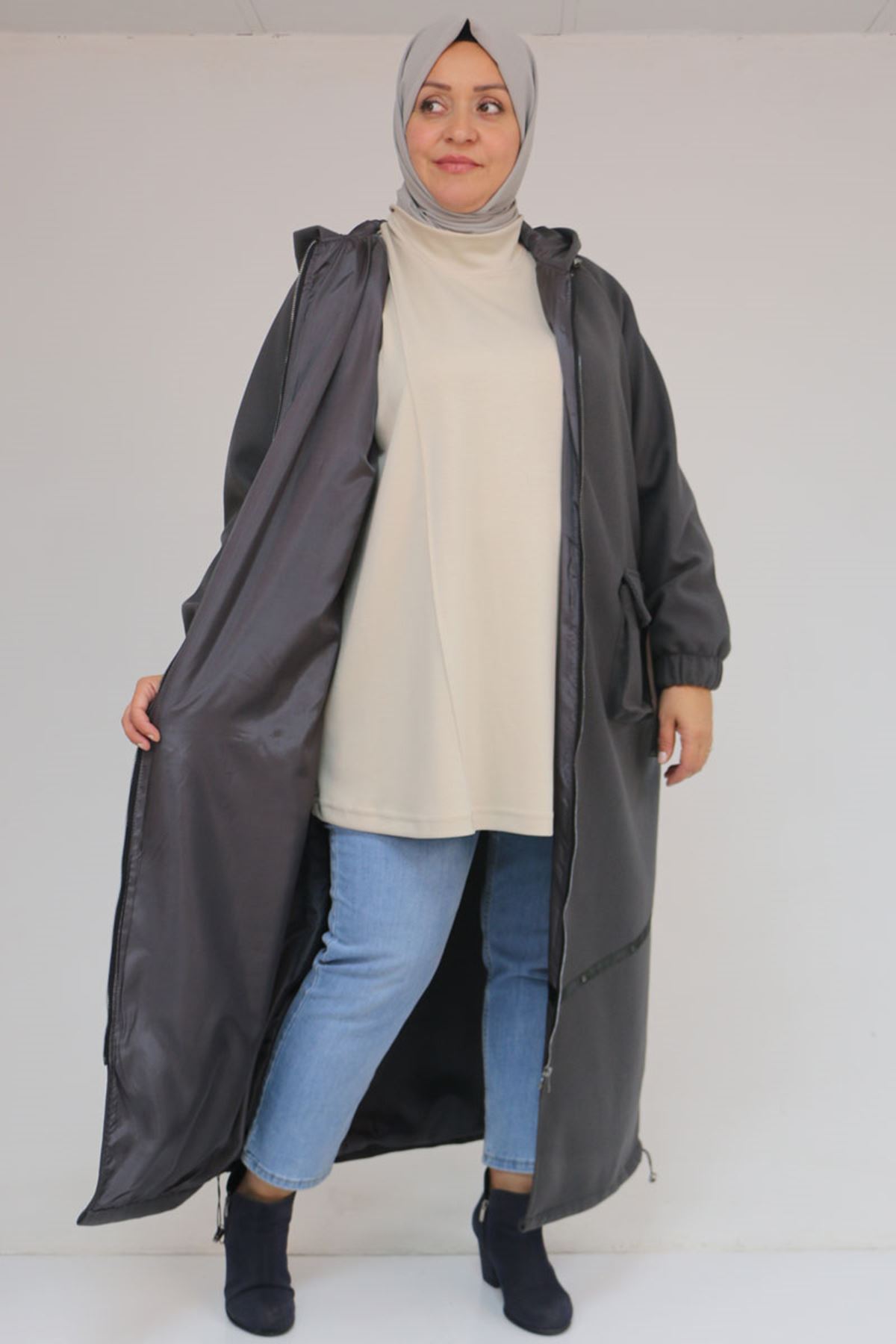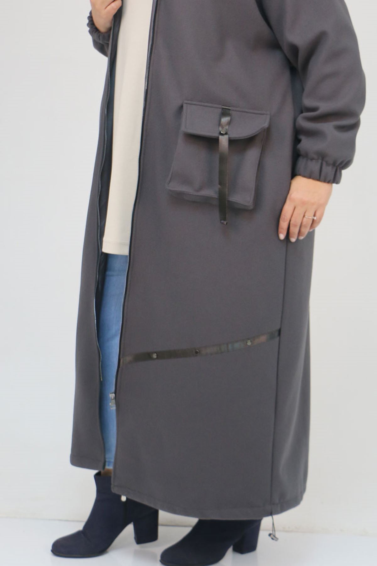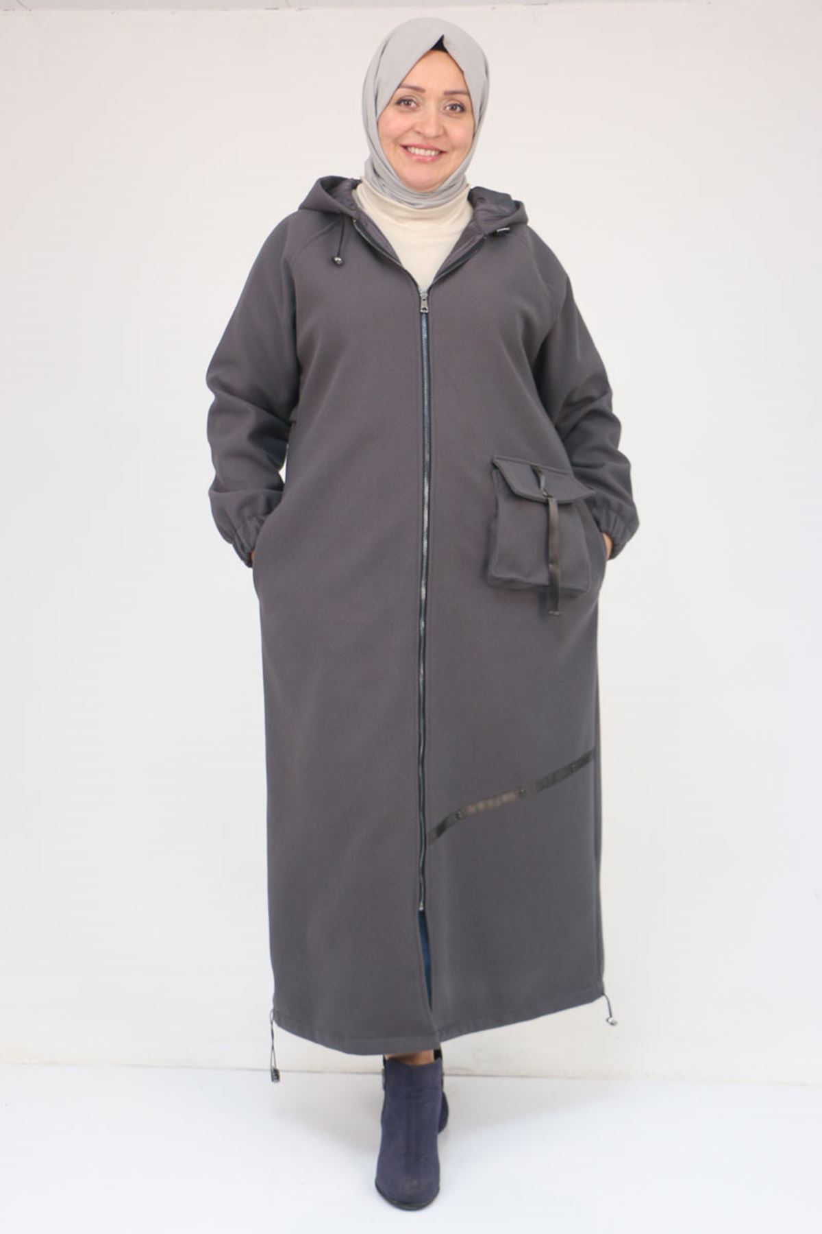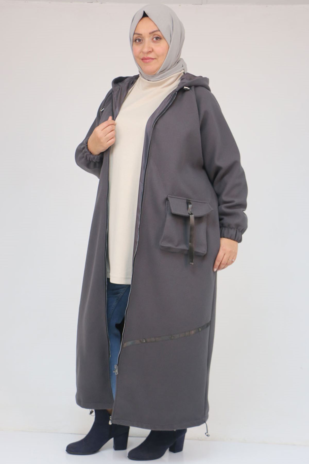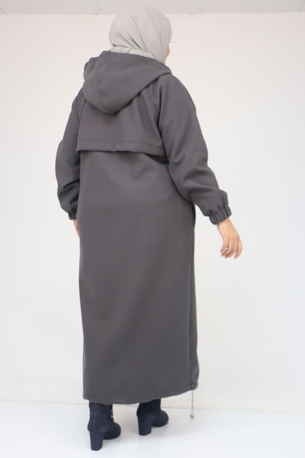 43082-E Büyük Beden Eteği Bebe Lastikli Kaşe Kaban - Antrasit