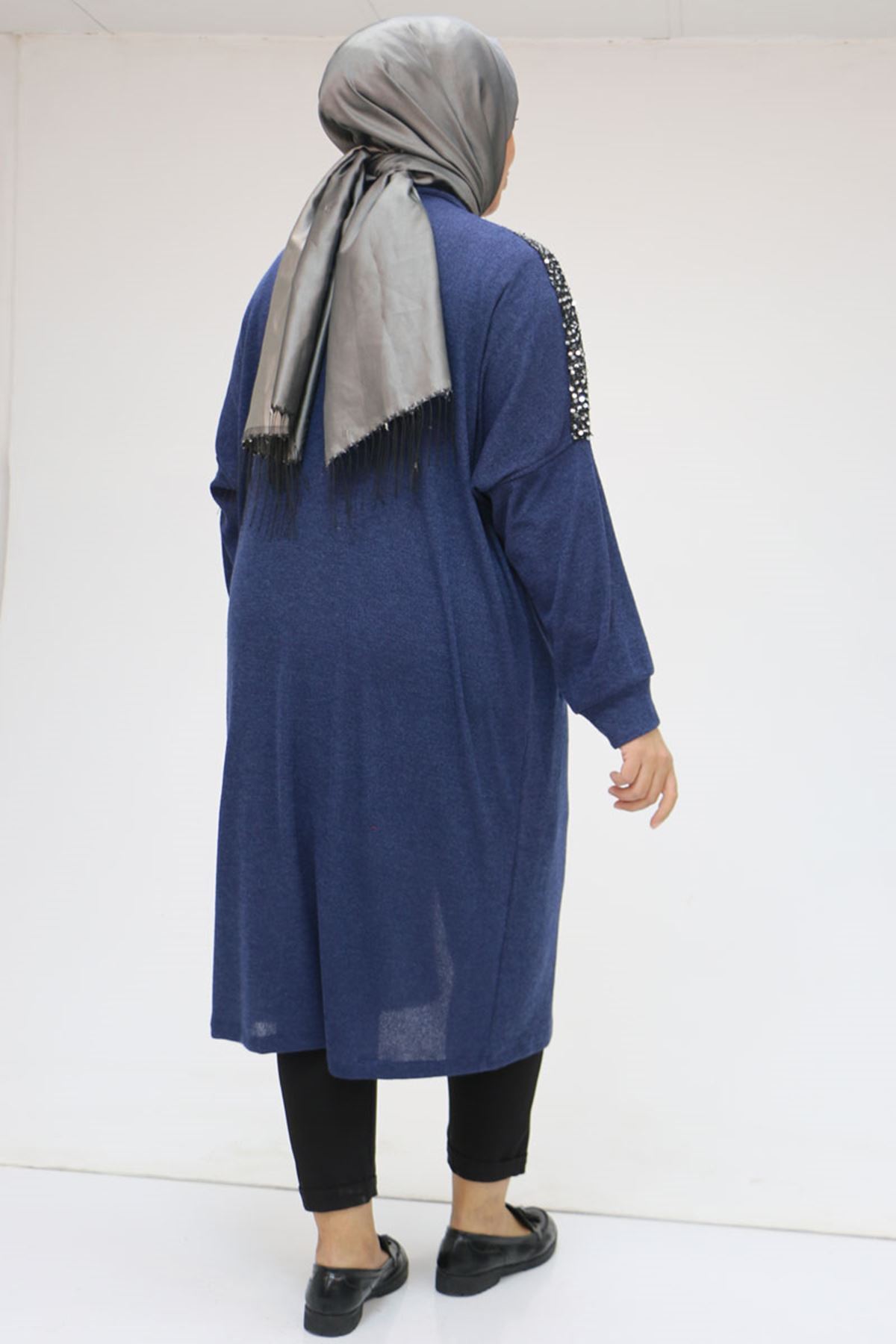 43083-E Büyük Beden Düşük Kol Mir Pul Payetli Ceket - İndigo