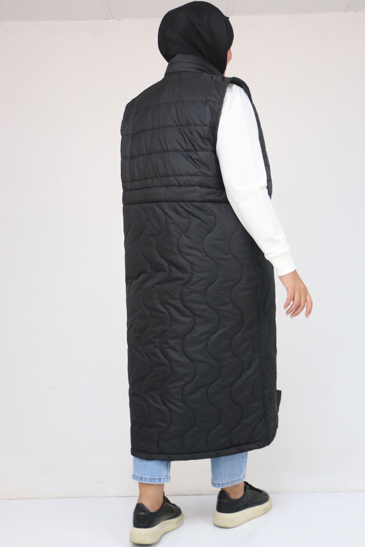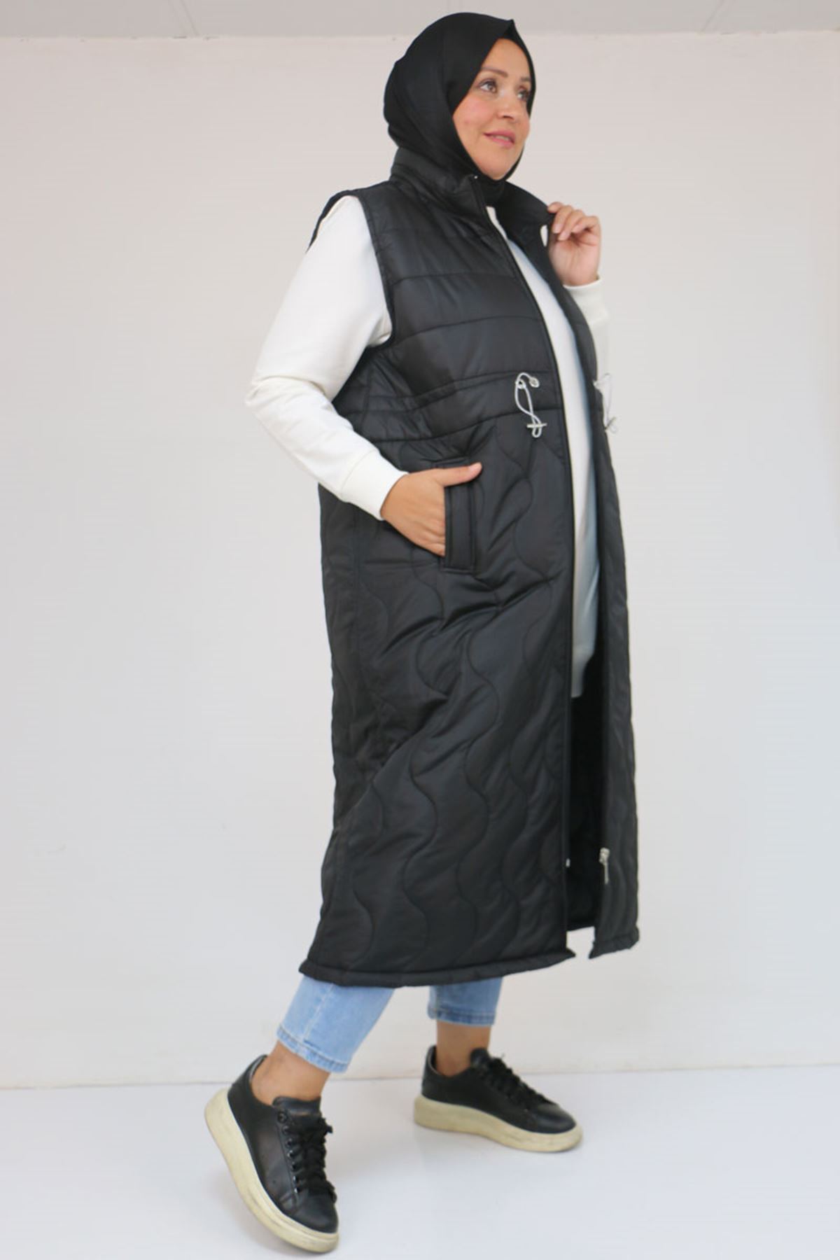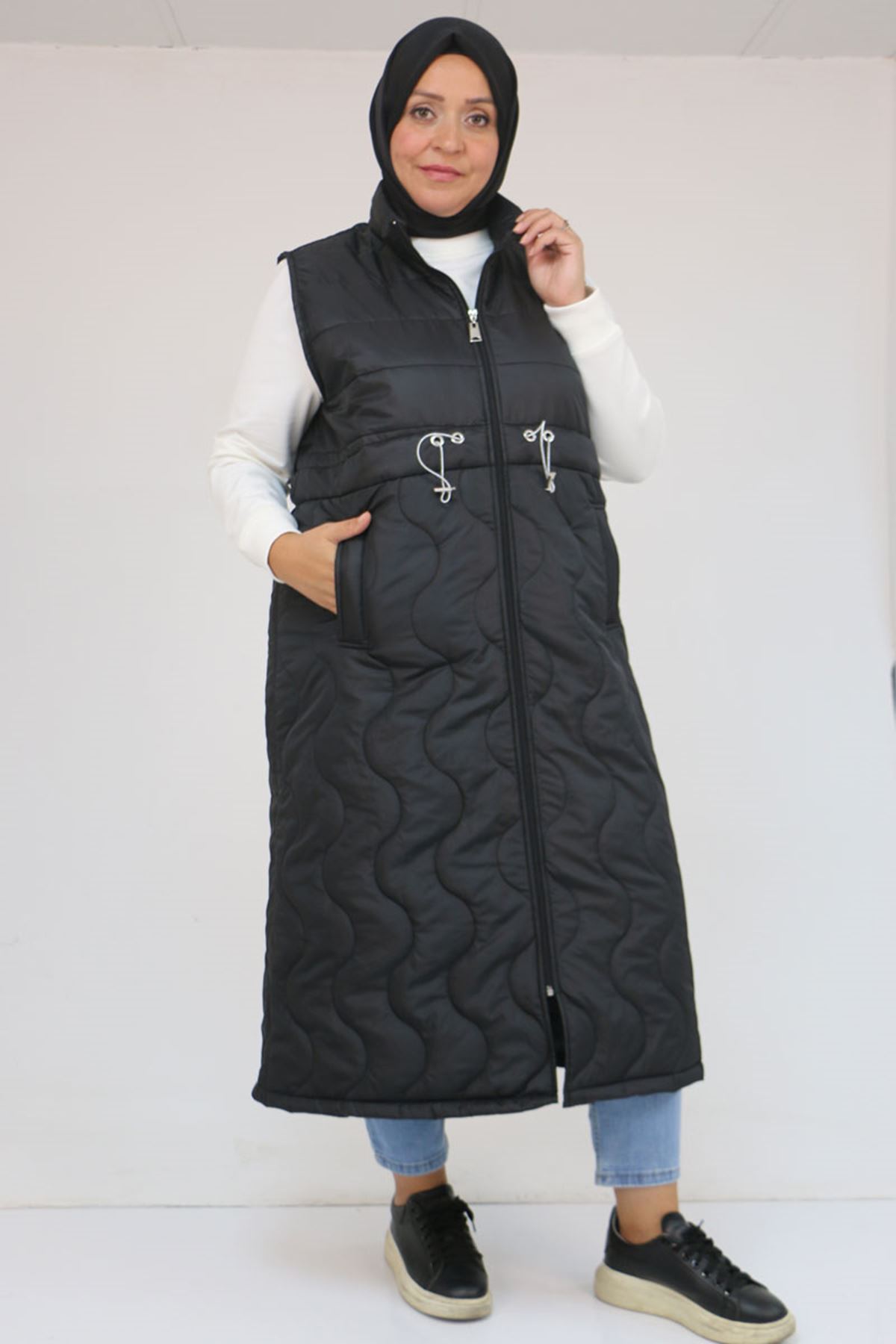44009 Büyük Beden Bebe Lastiği Detaylı Kapitone Yelek - Siyah