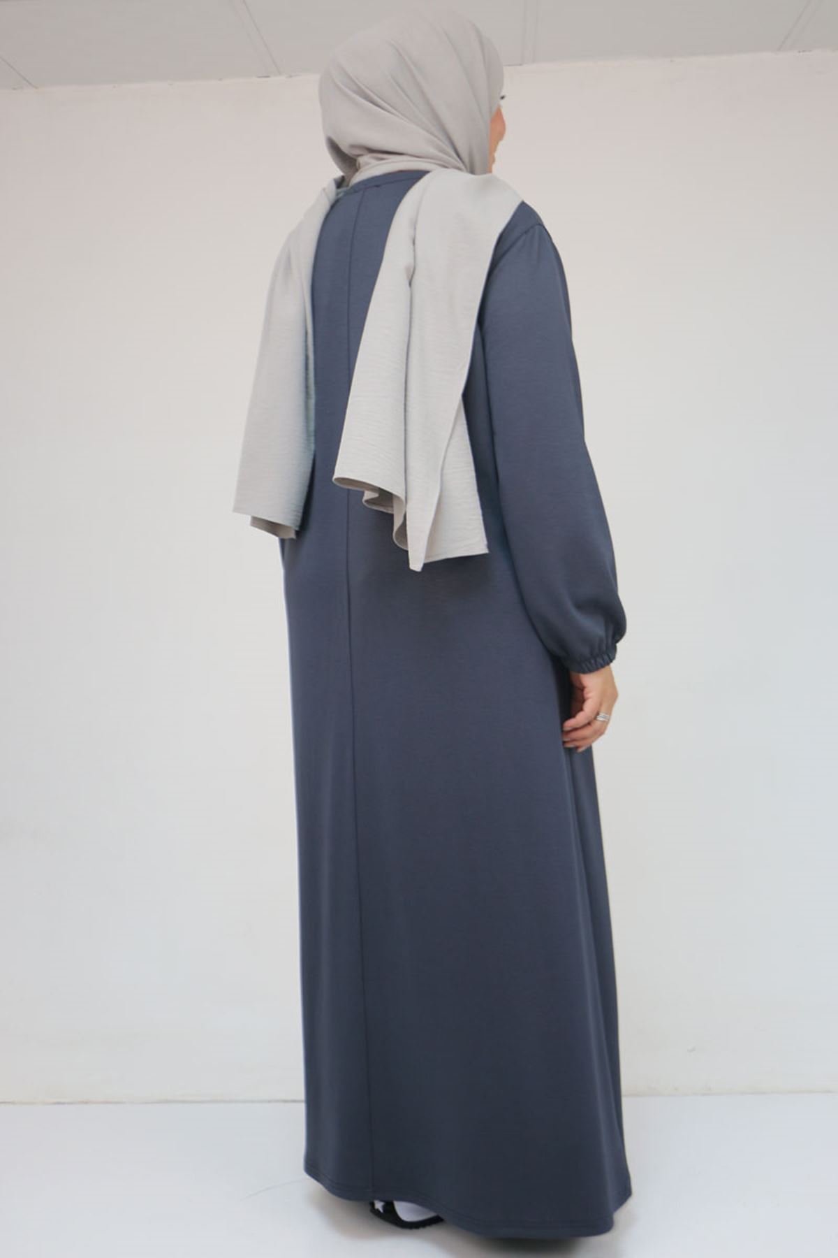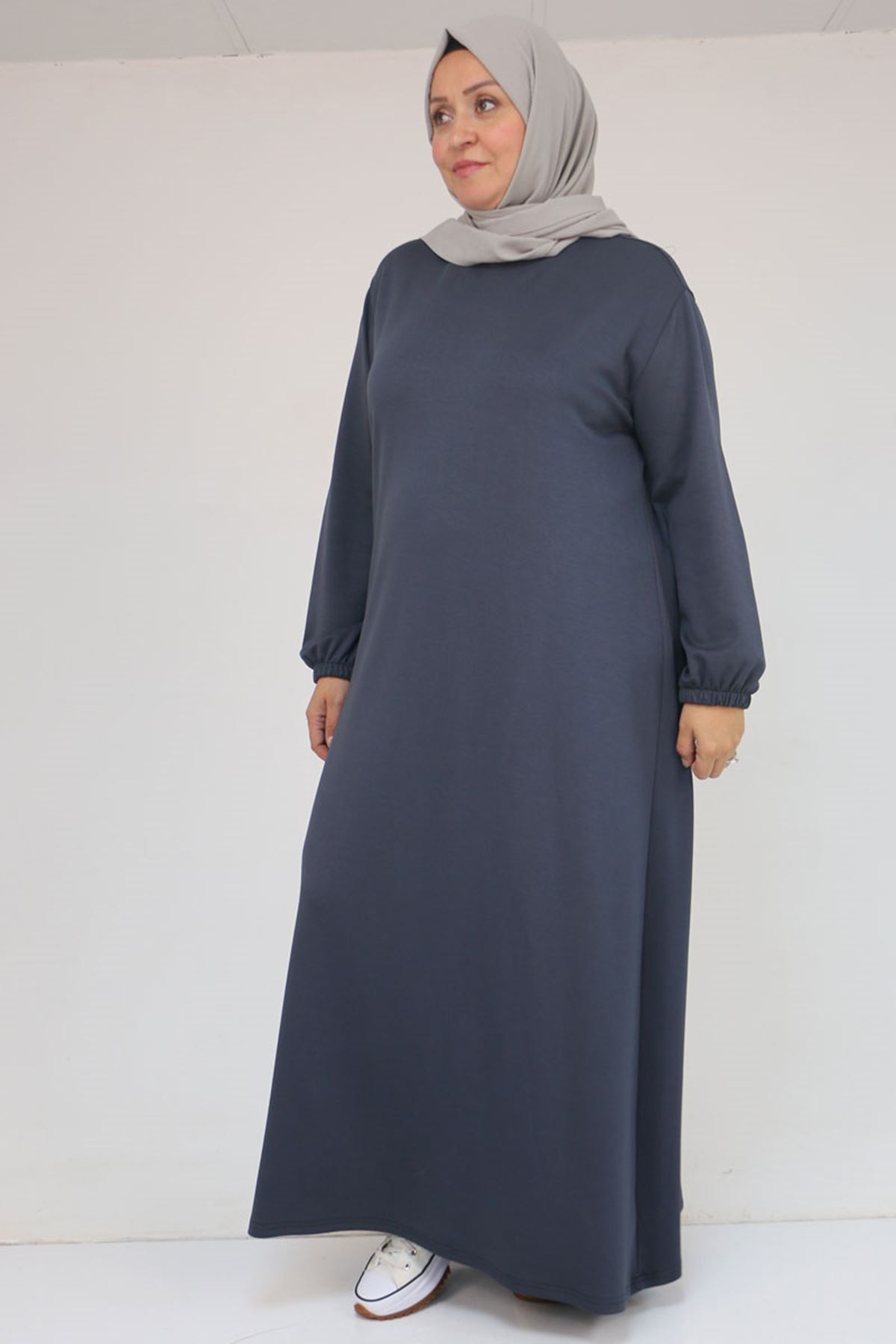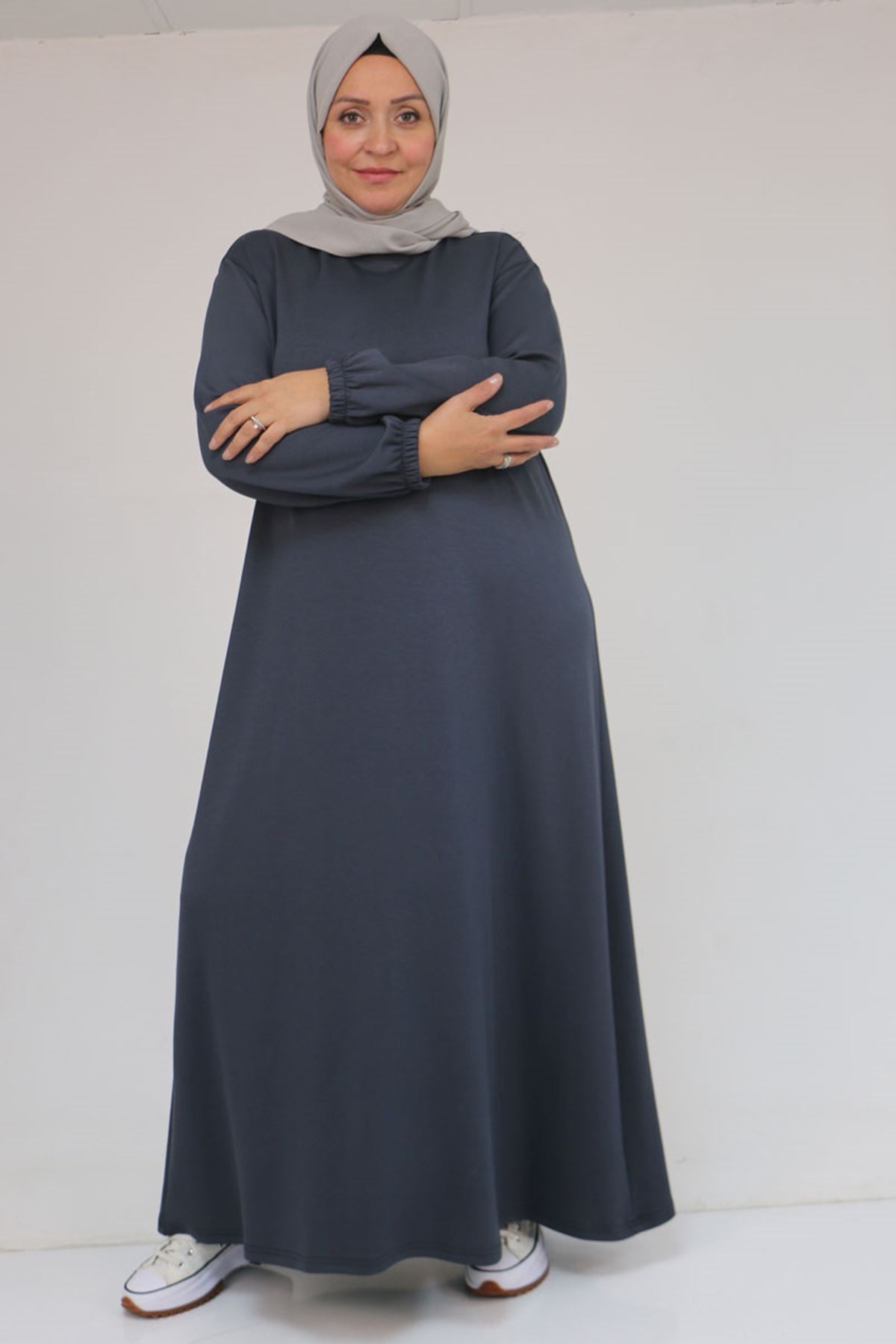 52031 Büyük Beden Kolu Lastikli Modal Elbise - Antrasit