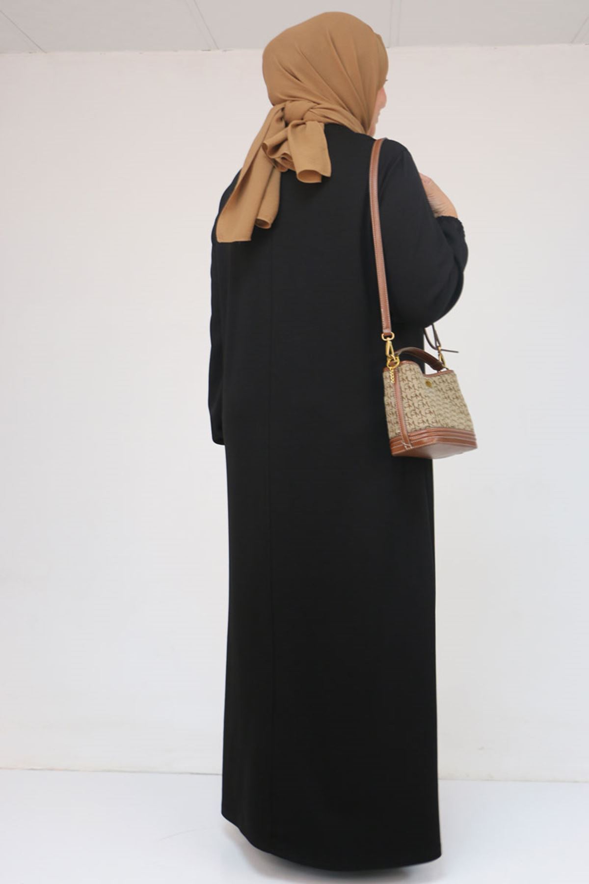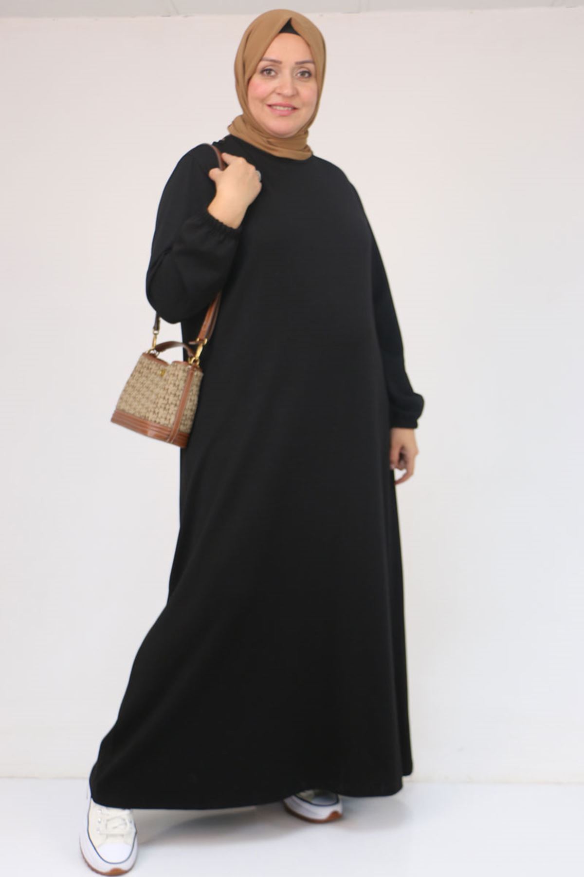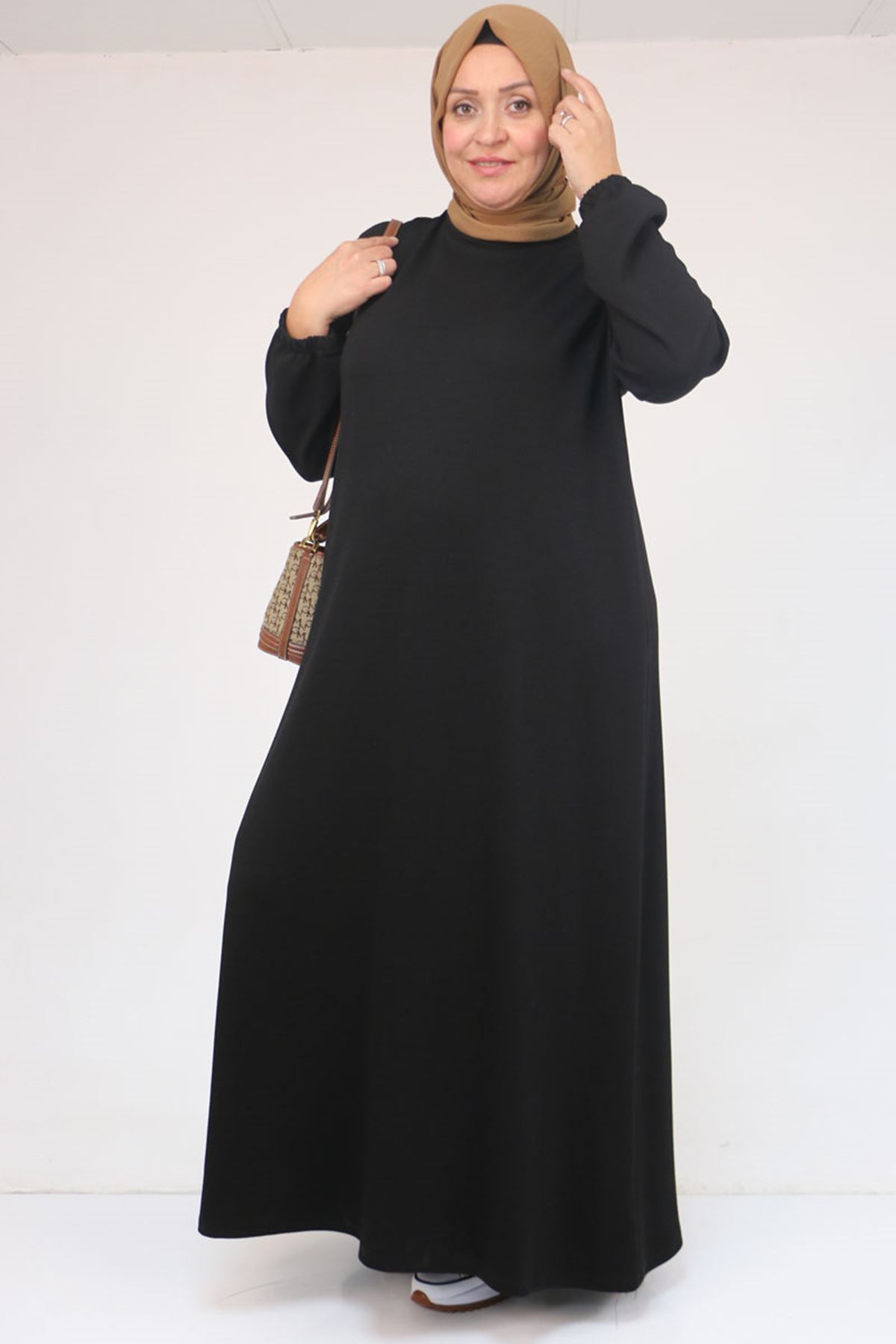 52031 Büyük Beden Kolu Lastikli Modal Elbise - Siyah