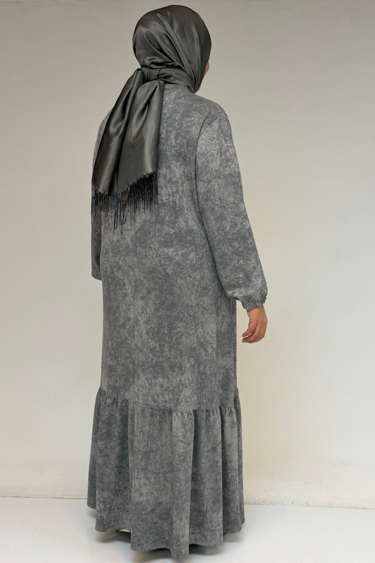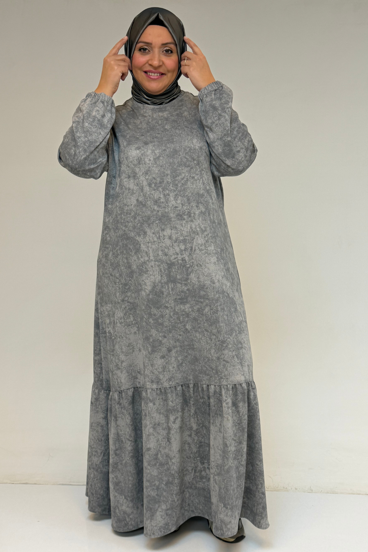 52032 Büyük Beden Eteği Fırfırlı Batik Modal Elbise - Batik Gri