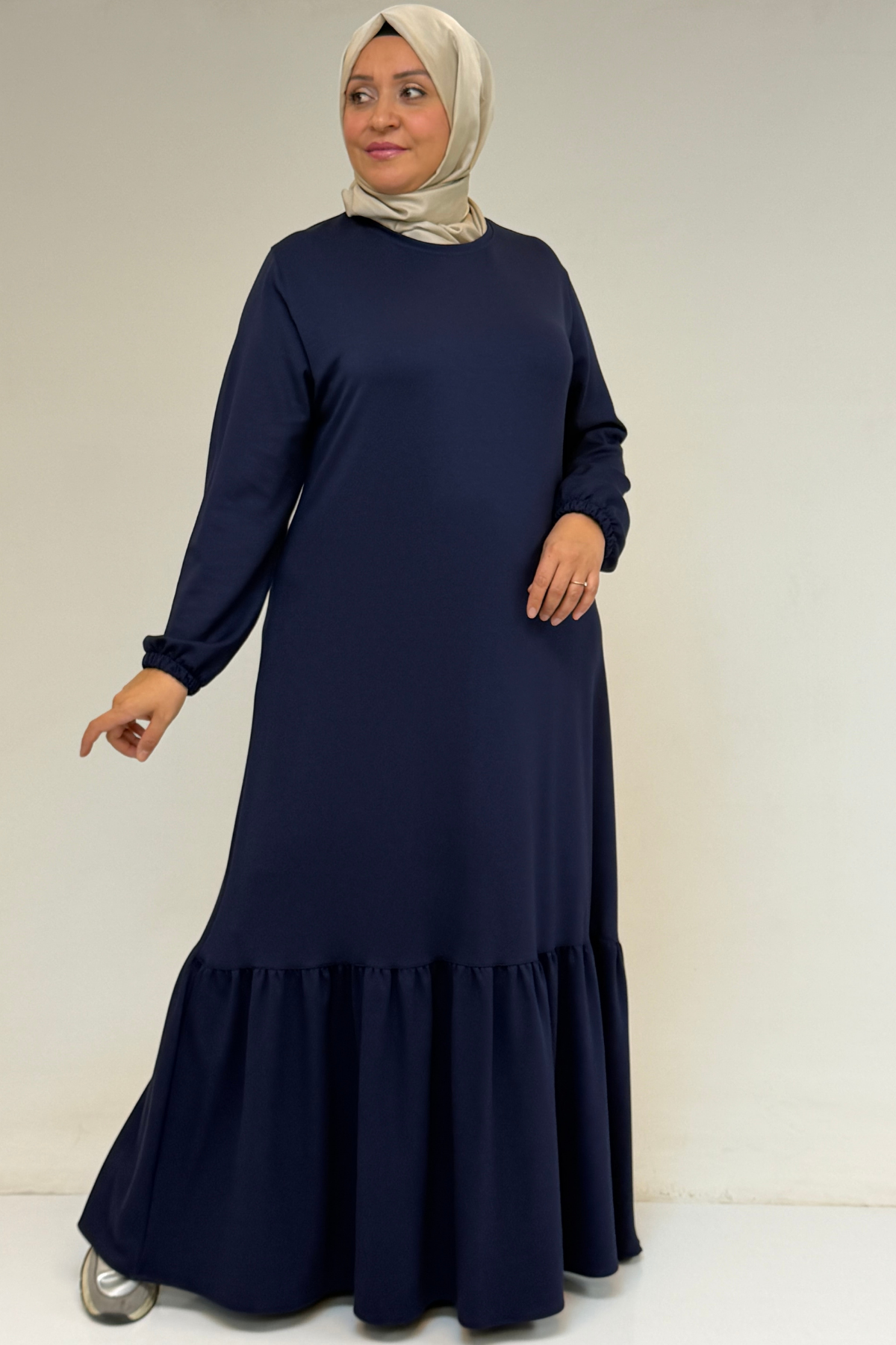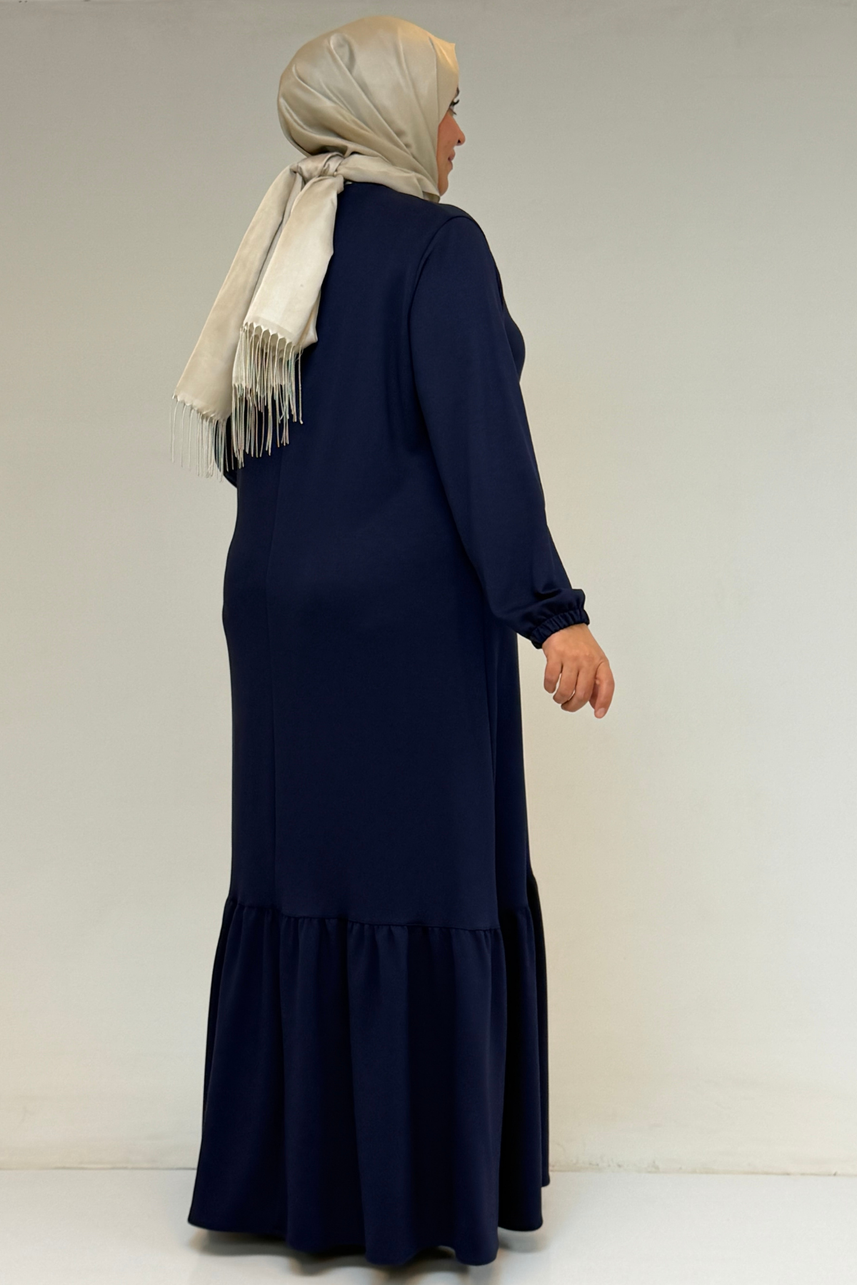 52033 Büyük Beden Eteği Fırfırlı Modal Elbise - İndigo