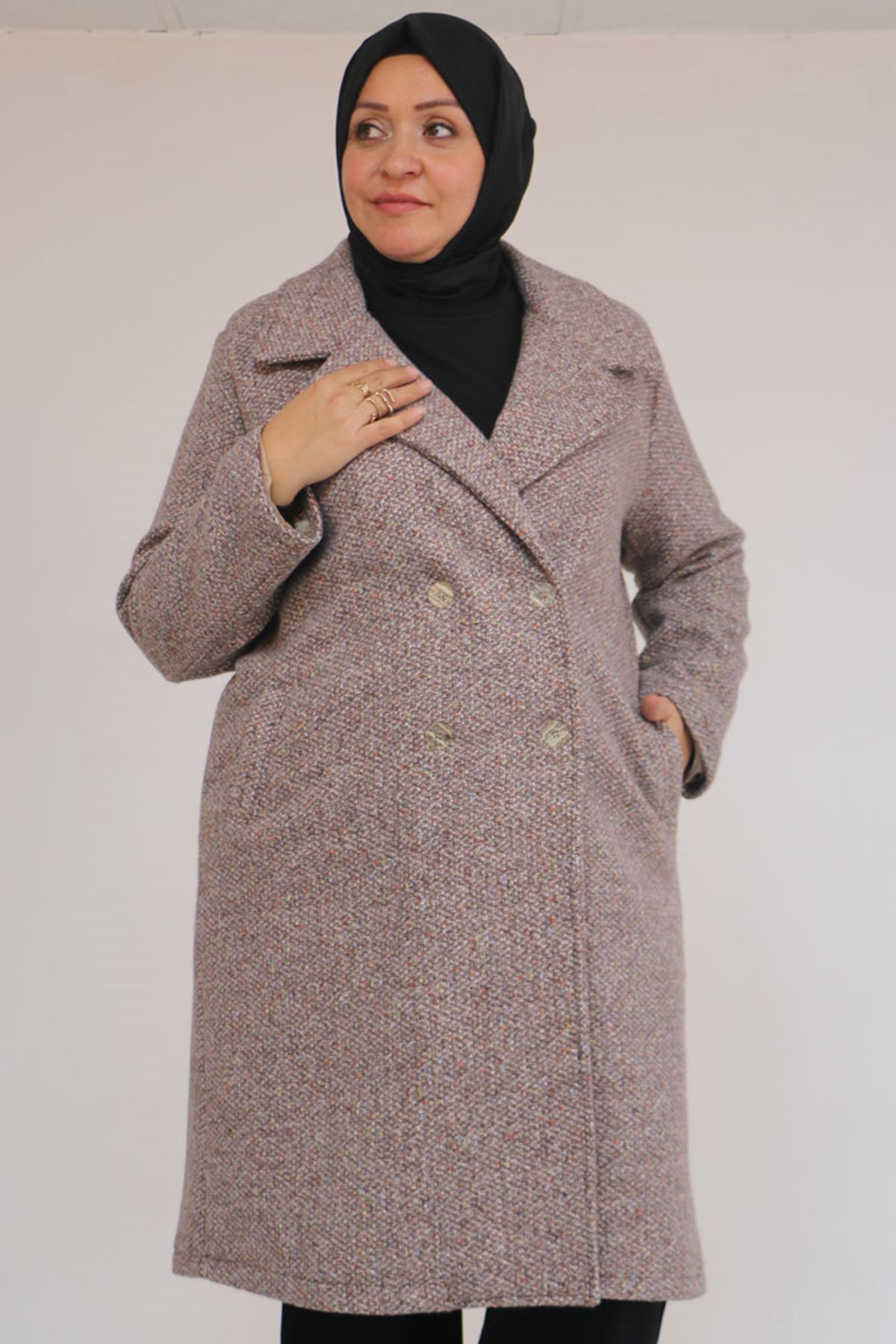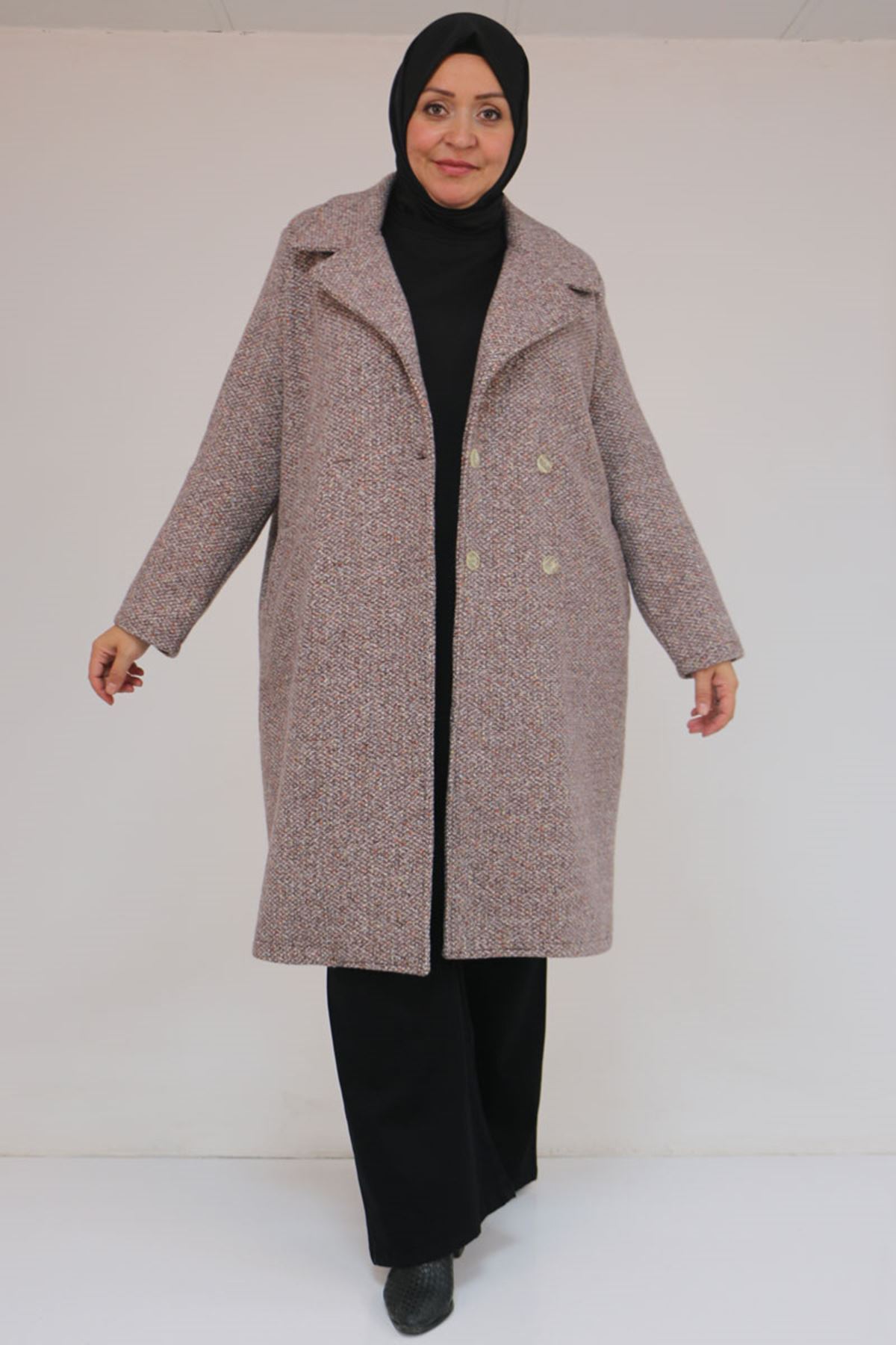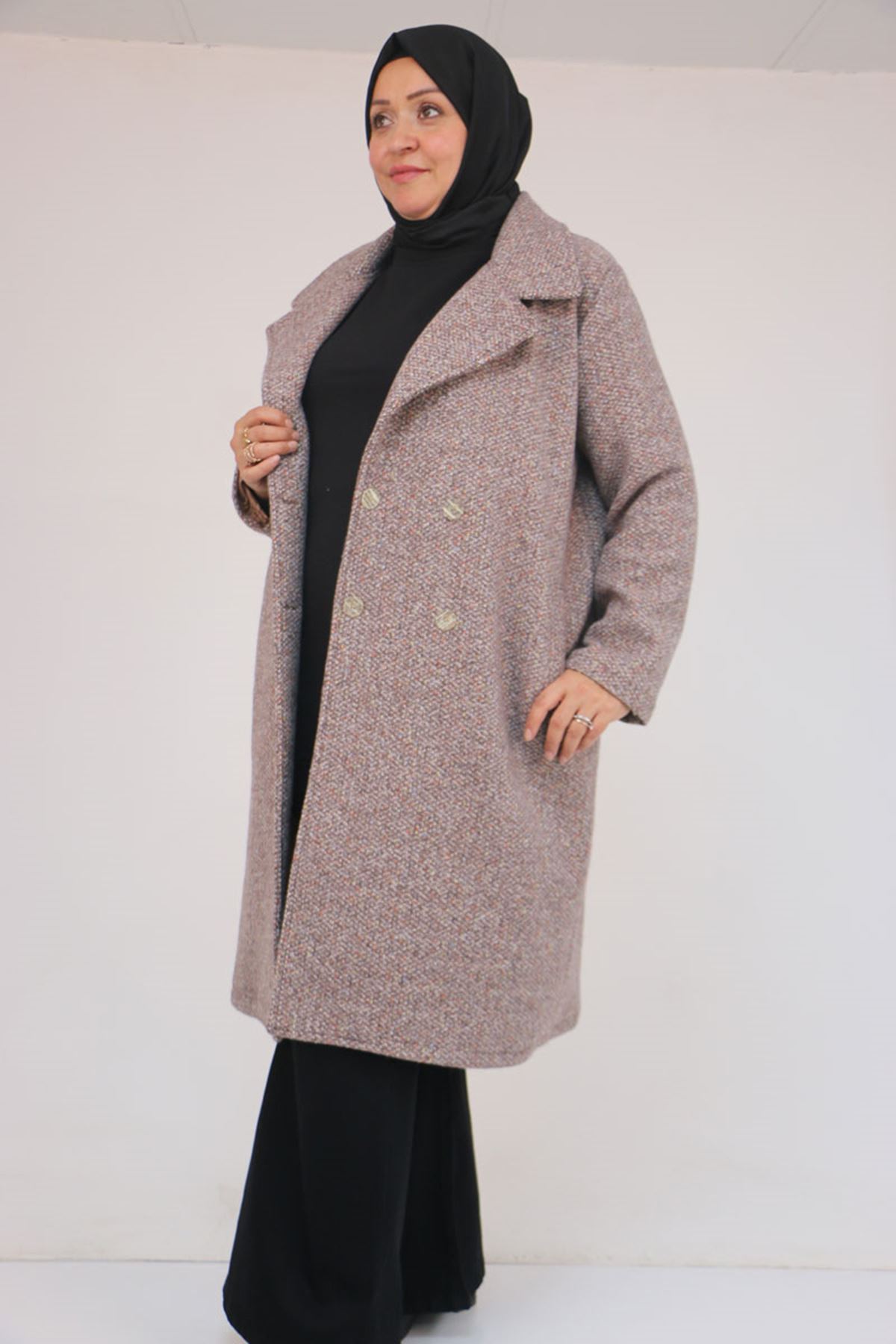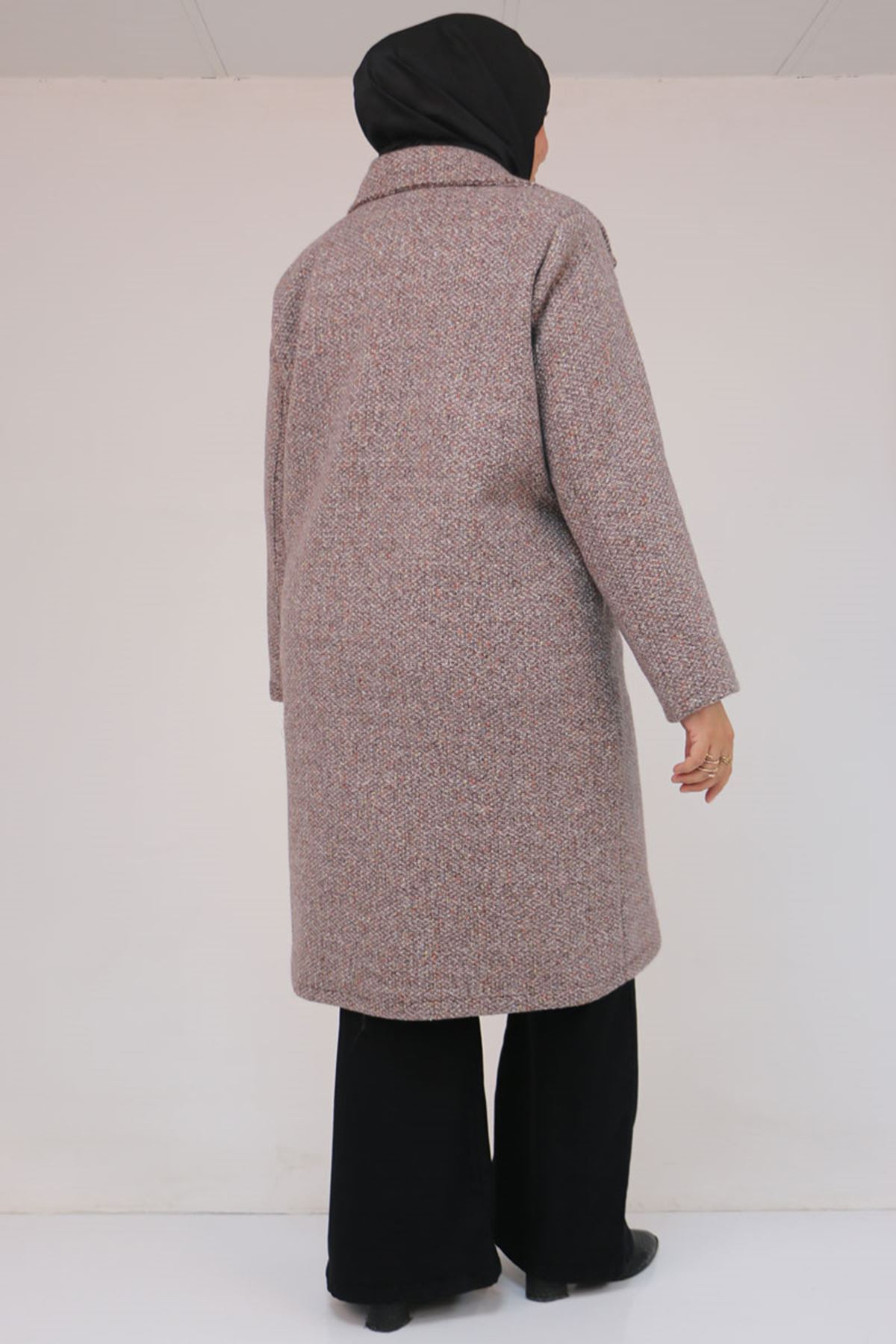 53037 Büyük Beden Mostralı Erkek Yaka Şanel Kaban - Kahve