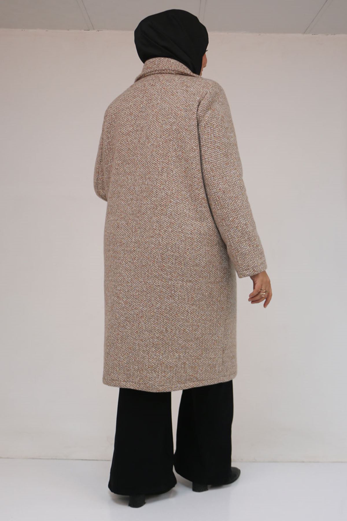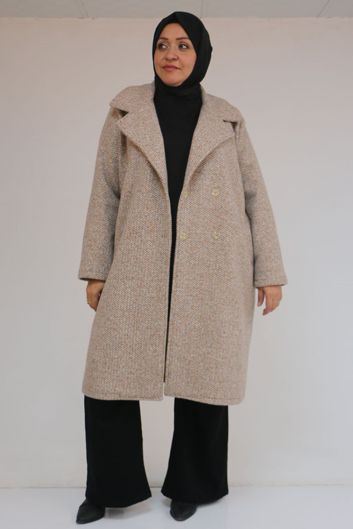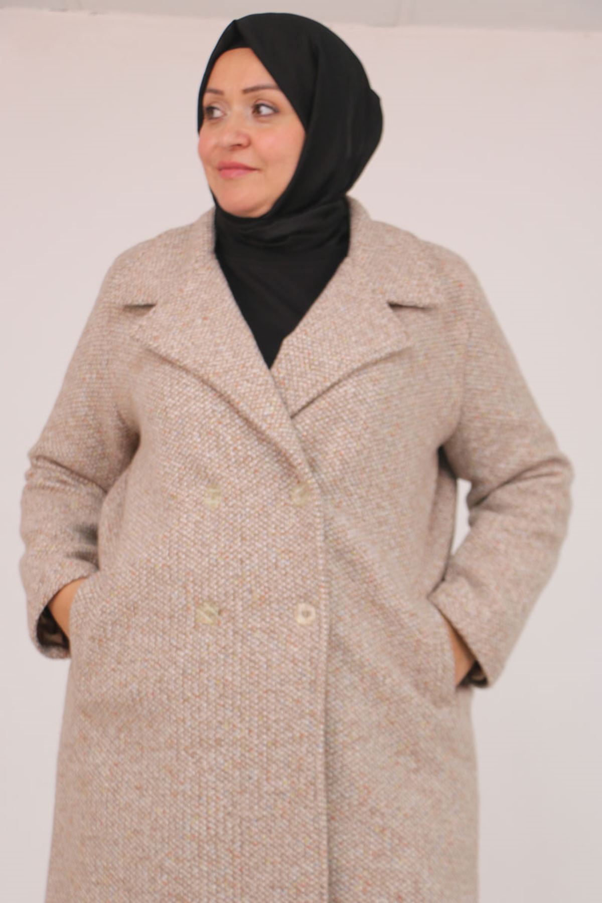 53037 Büyük Beden Mostralı Erkek Yaka Şanel Kaban - Vizon