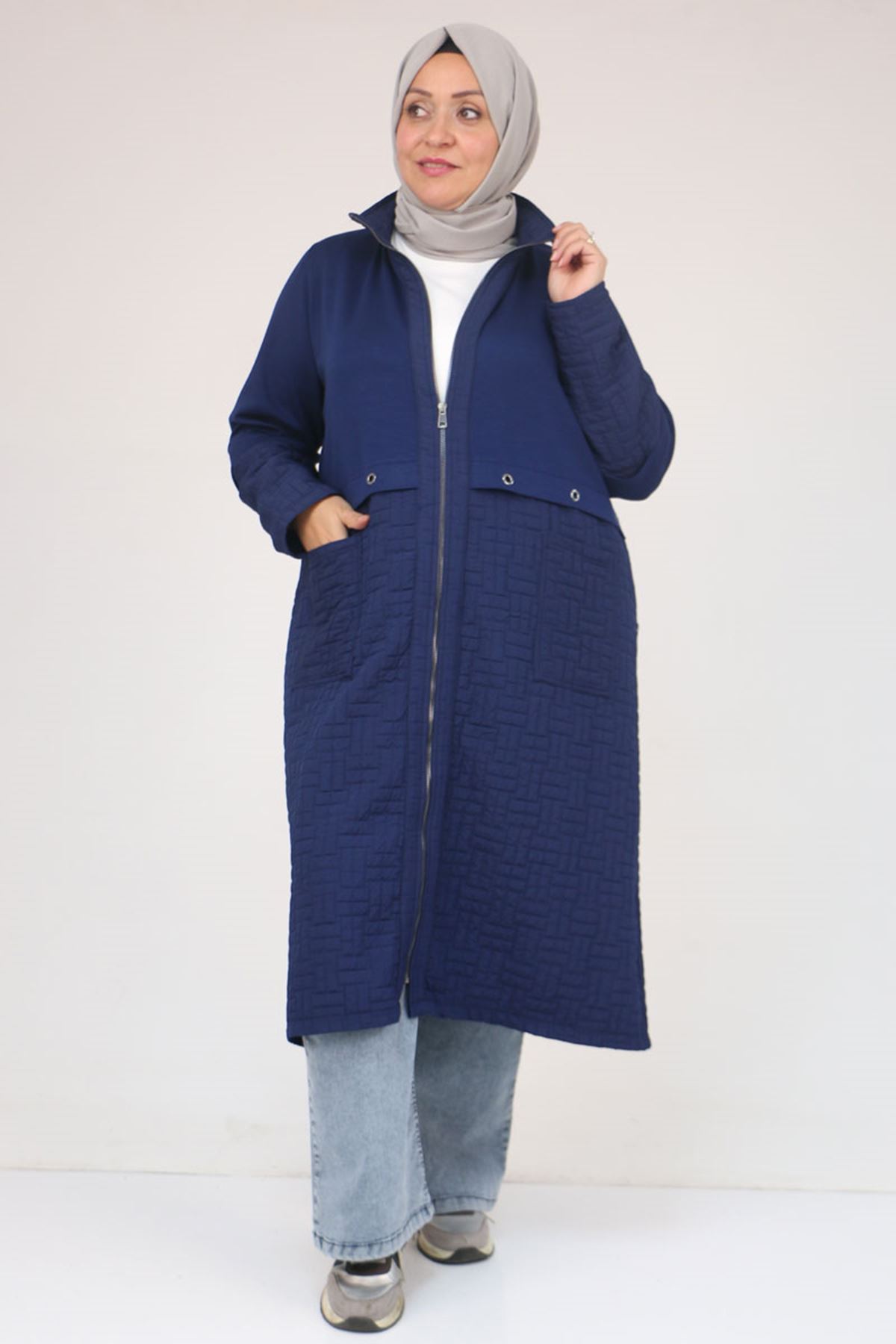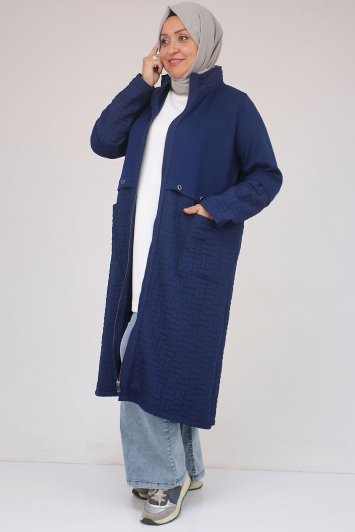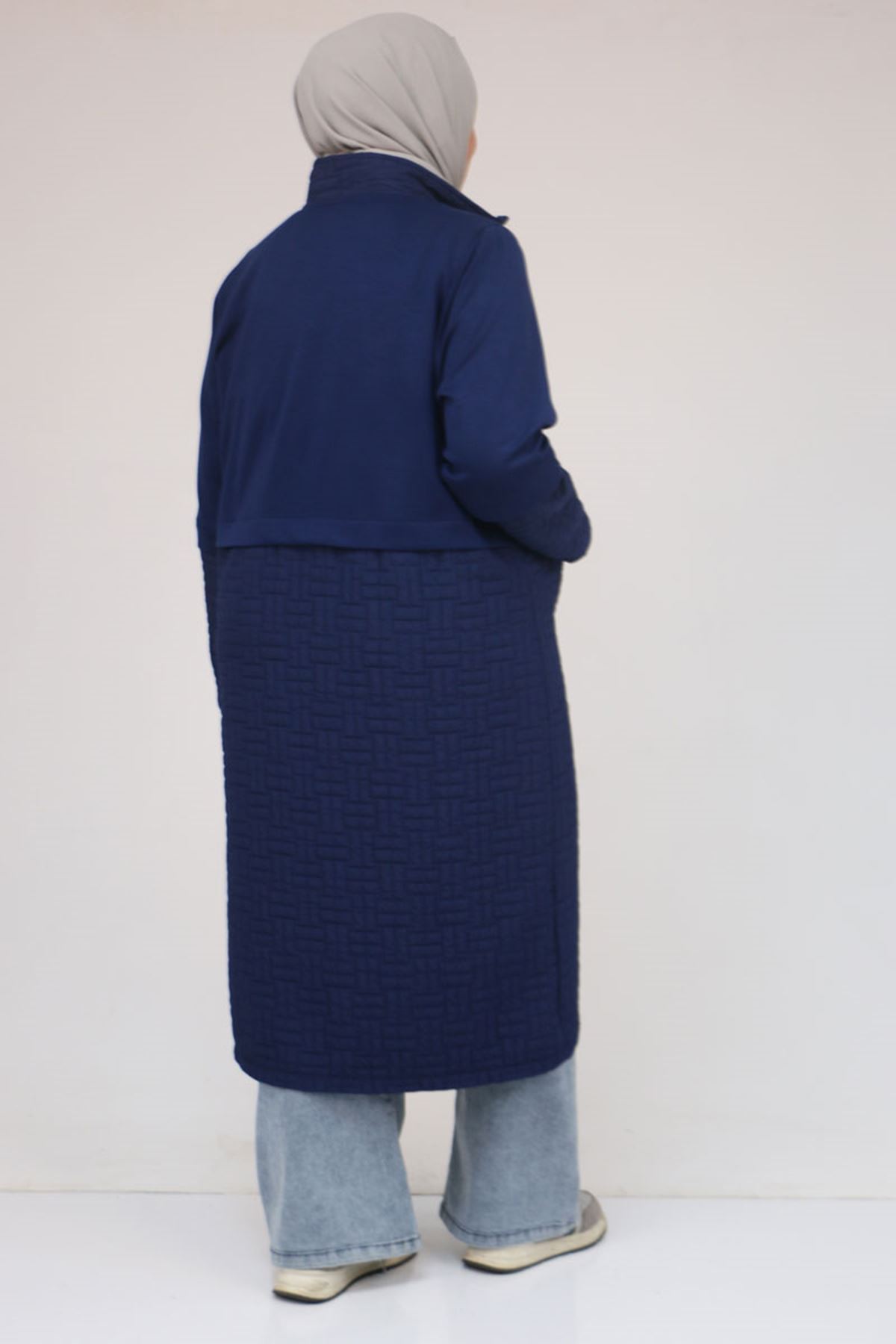 53039 Büyük Beden Kapitone - Modal Kombinli Trençkot - İndigo
