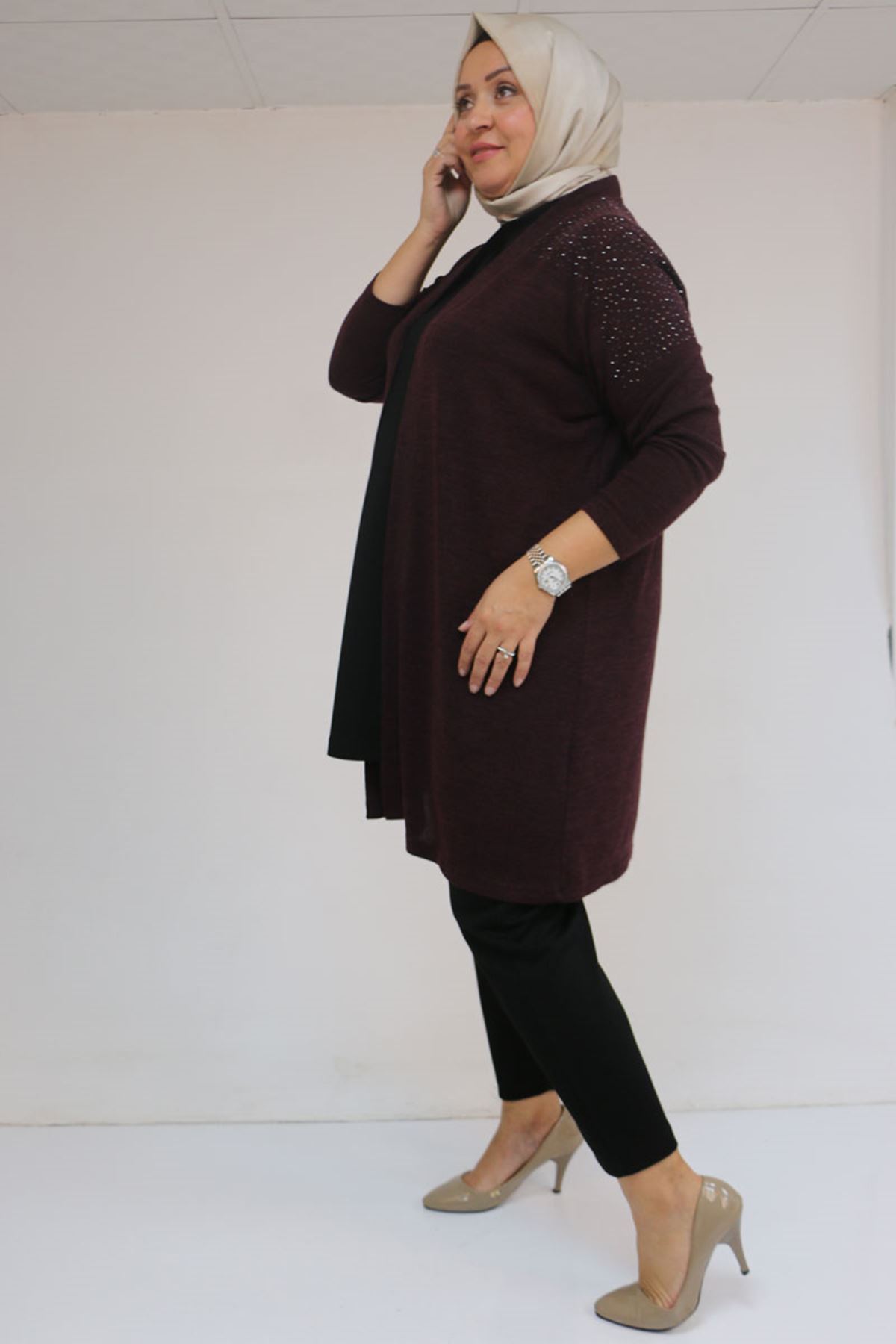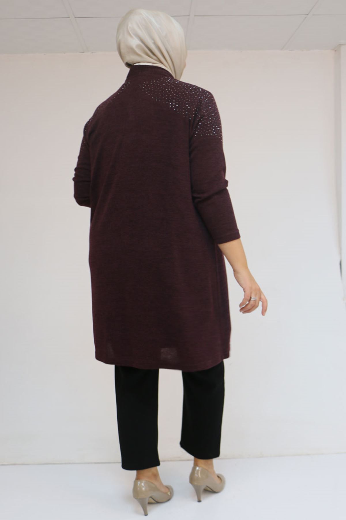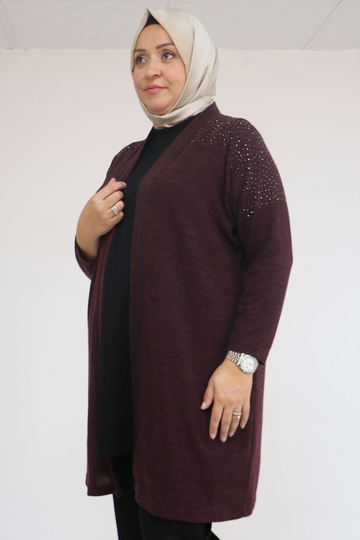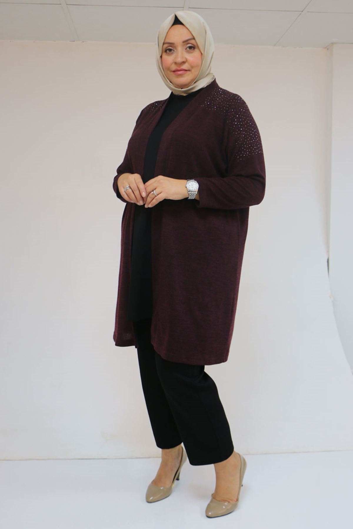 53047 Büyük Beden Omzu Taş Detaylı Mir Ceket - Mürdüm