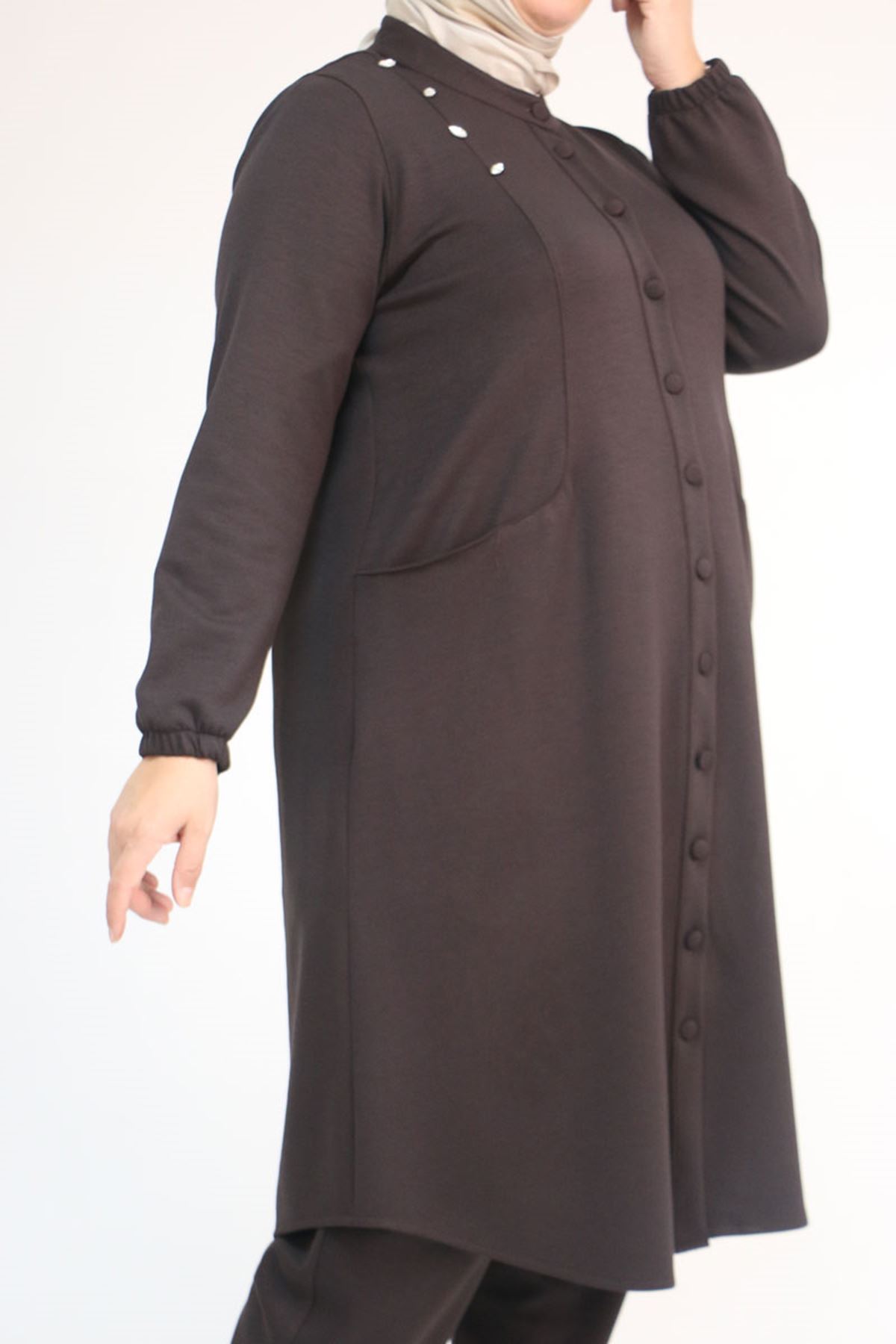 53054 Büyük Beden Boydan Düğmeli Modal Ceket - Kahve