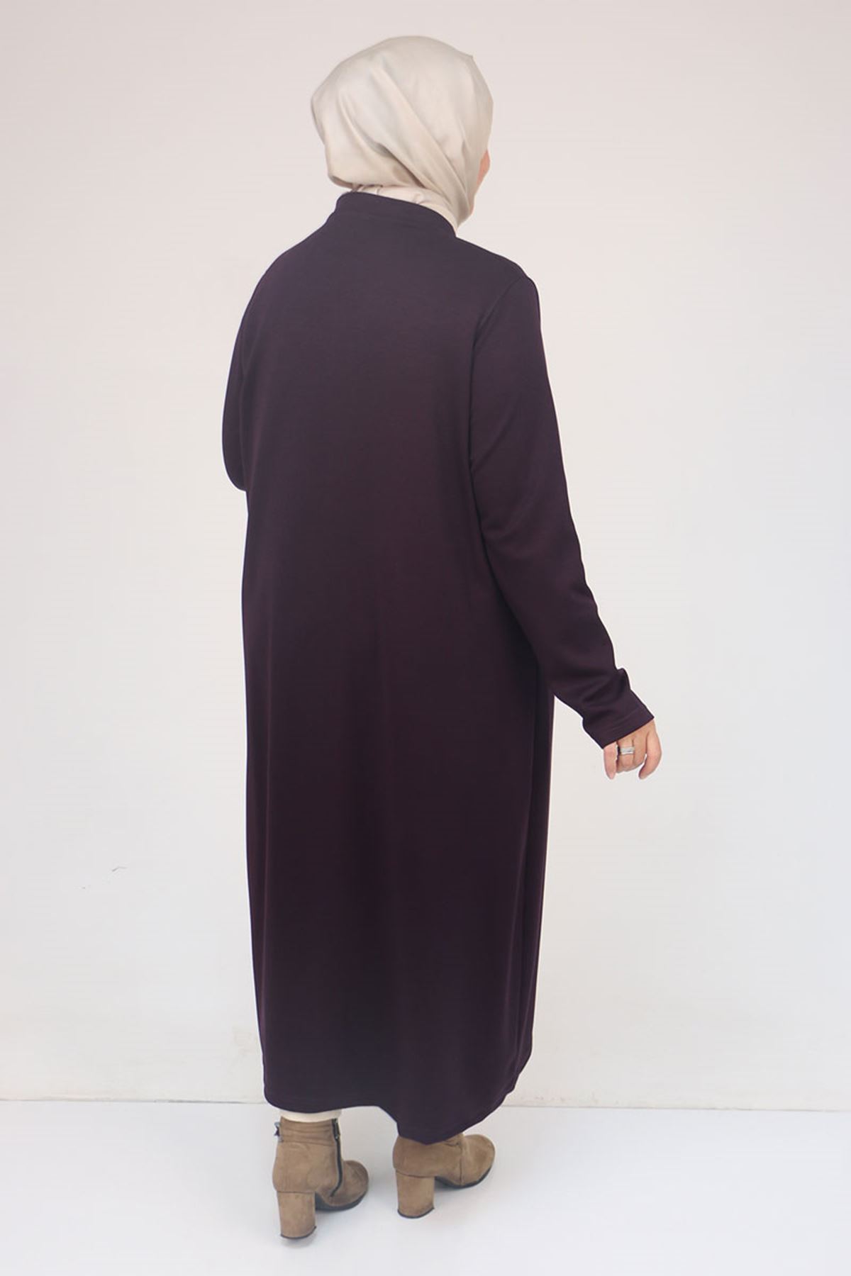 53058 Büyük Beden Fermuarlı Batik-Modal Ceket - Mürdüm