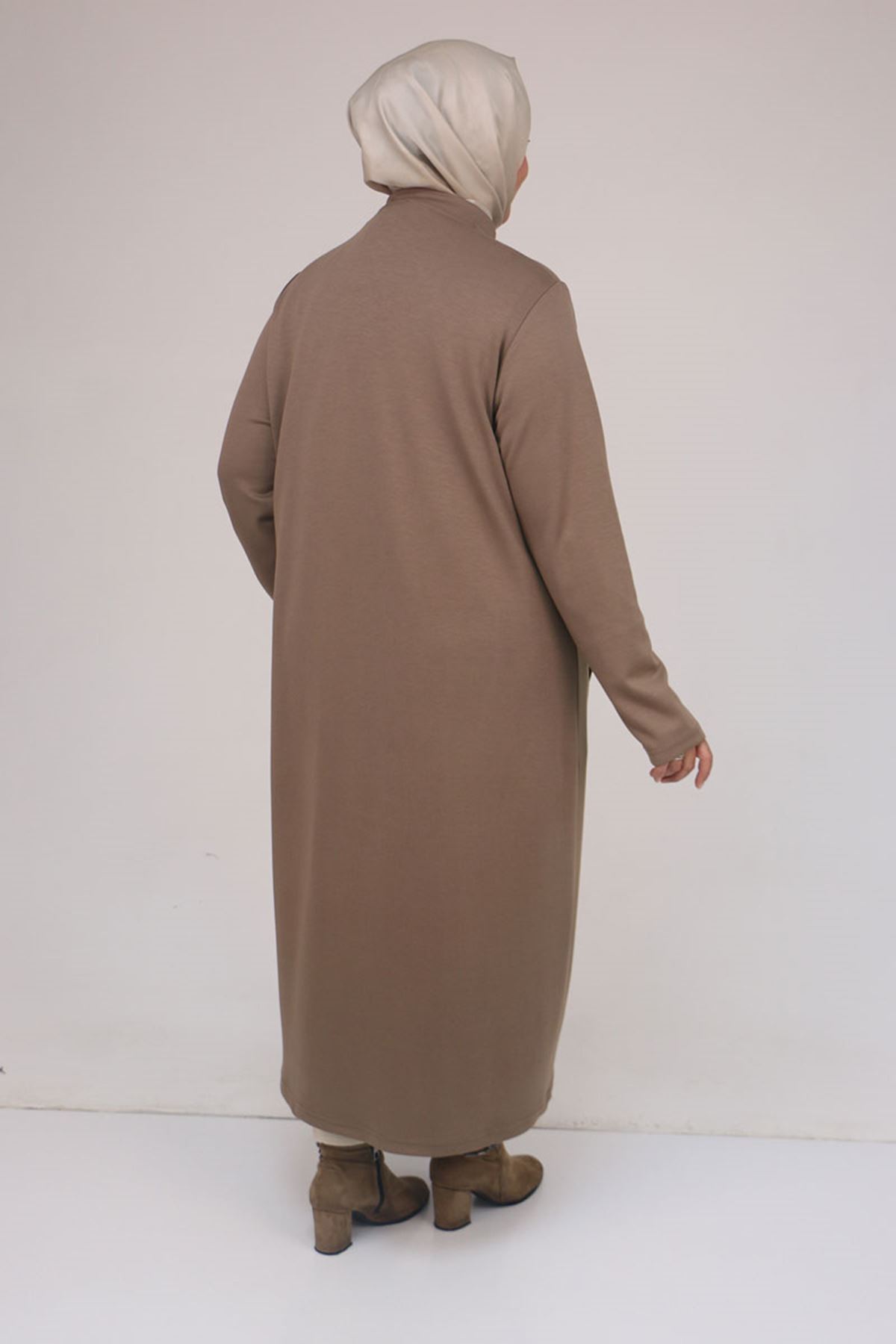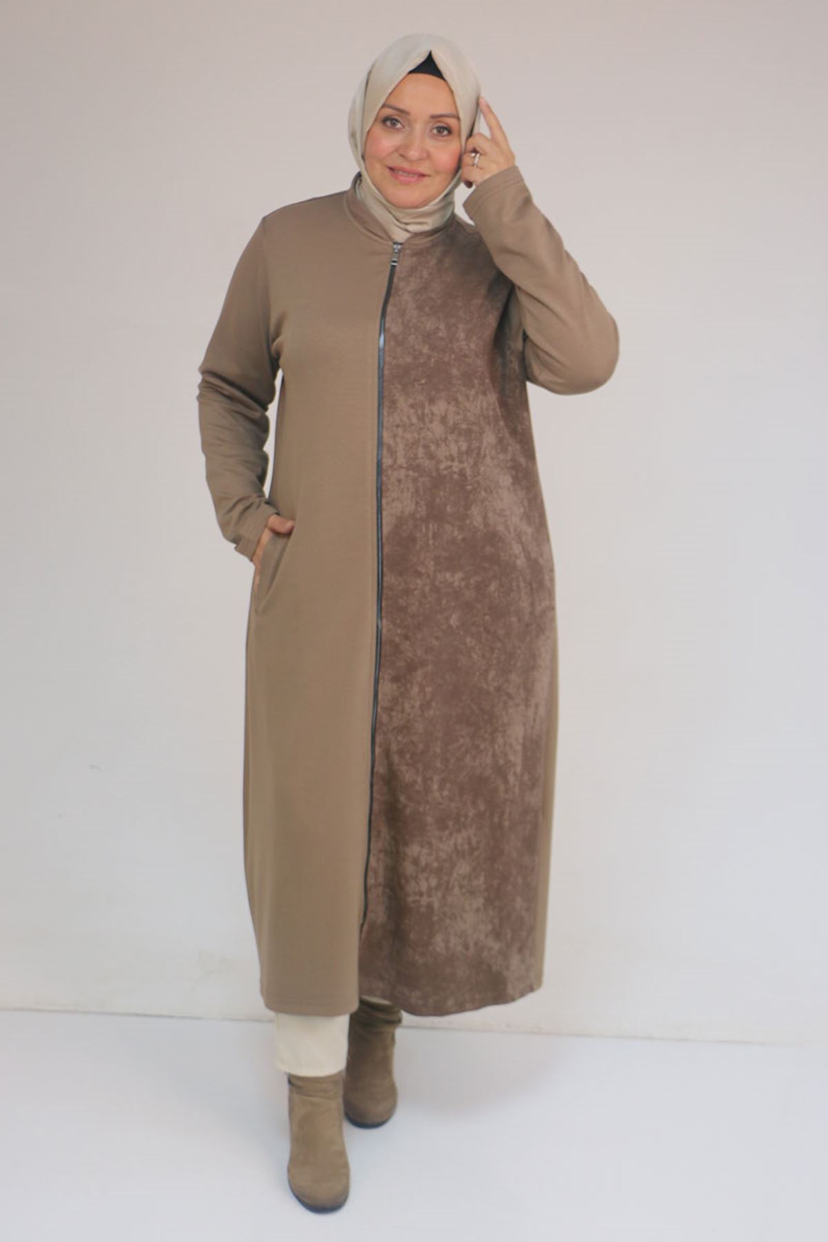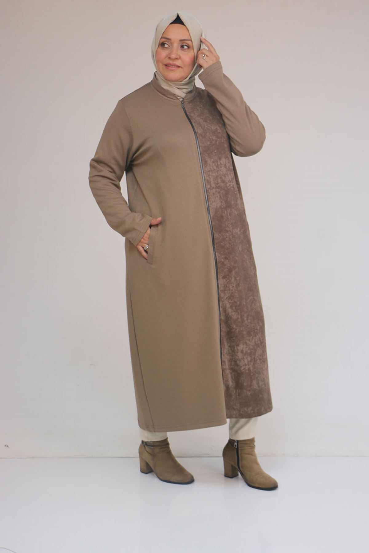 53058 Büyük Beden Fermuarlı Batik-Modal Ceket - Vizon