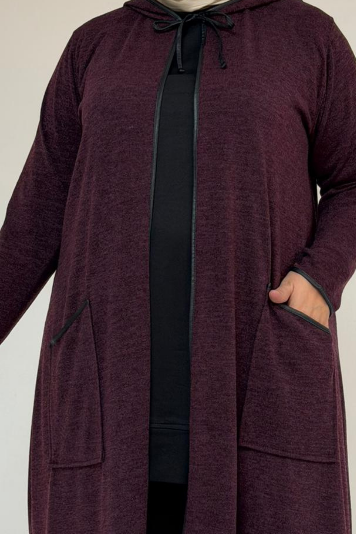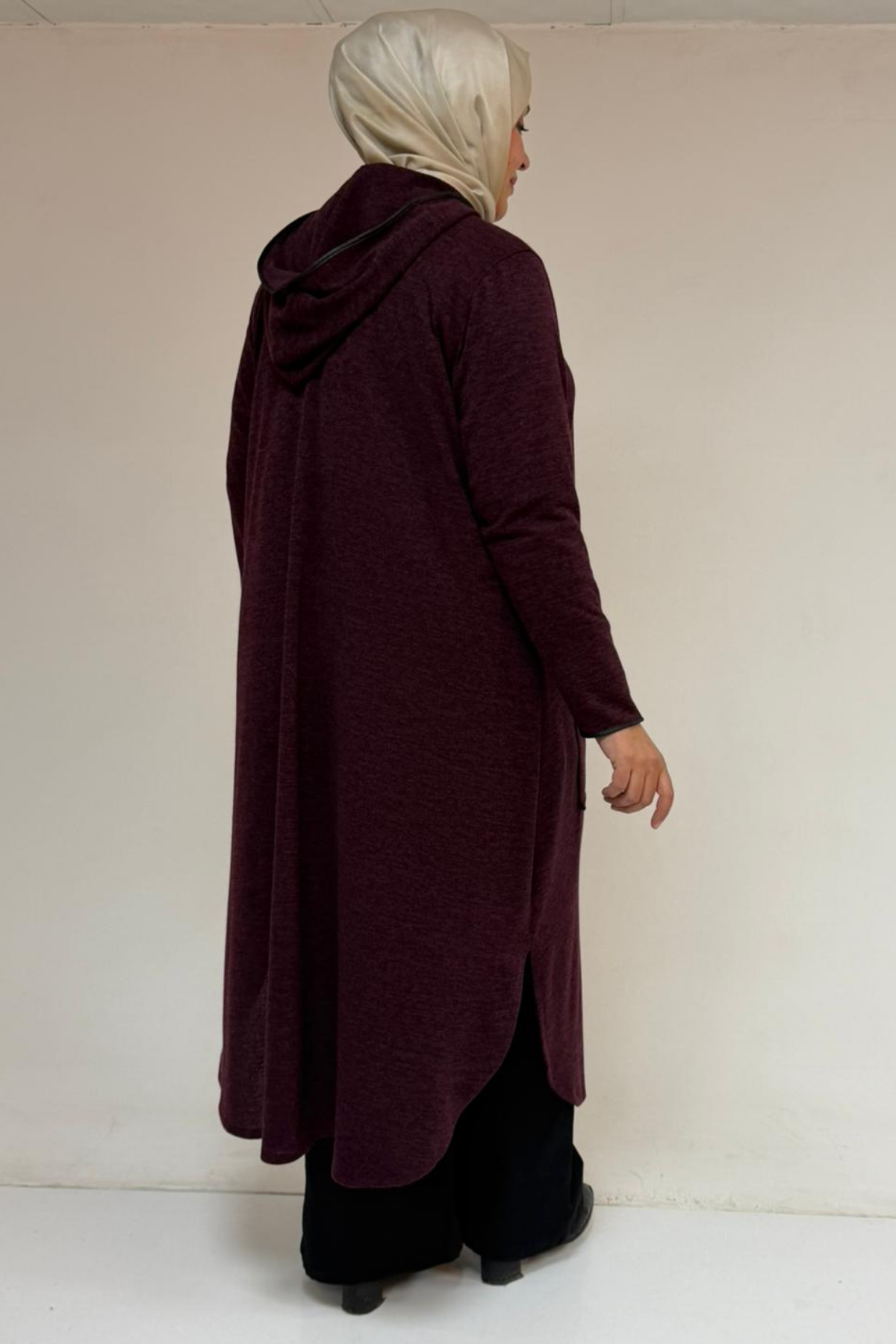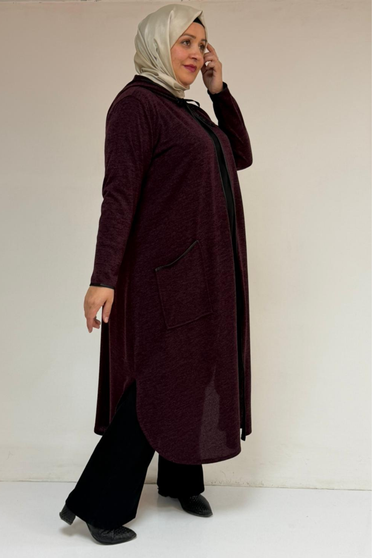 53063 Büyük Beden Biyeli Cepli Mir Ceket - Mürdüm