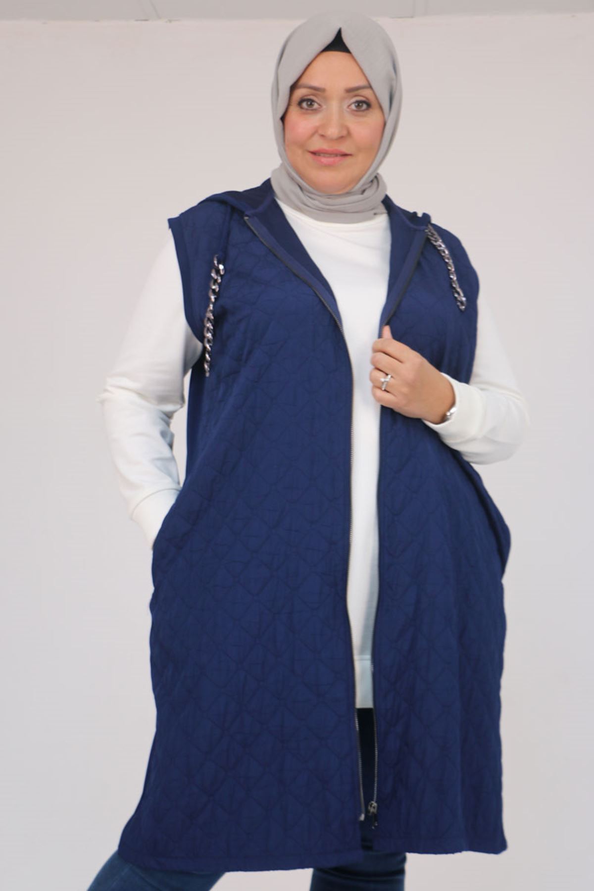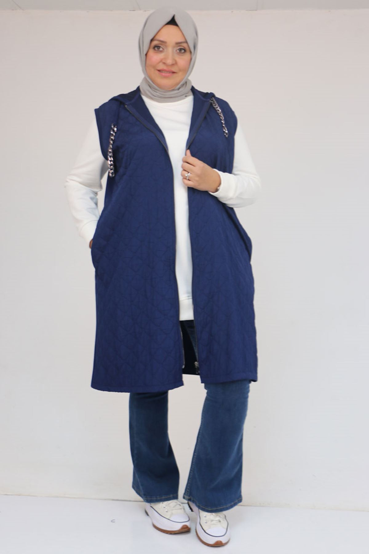 54010 Büyük Beden Kapitone - Modal Yelek - İndigo