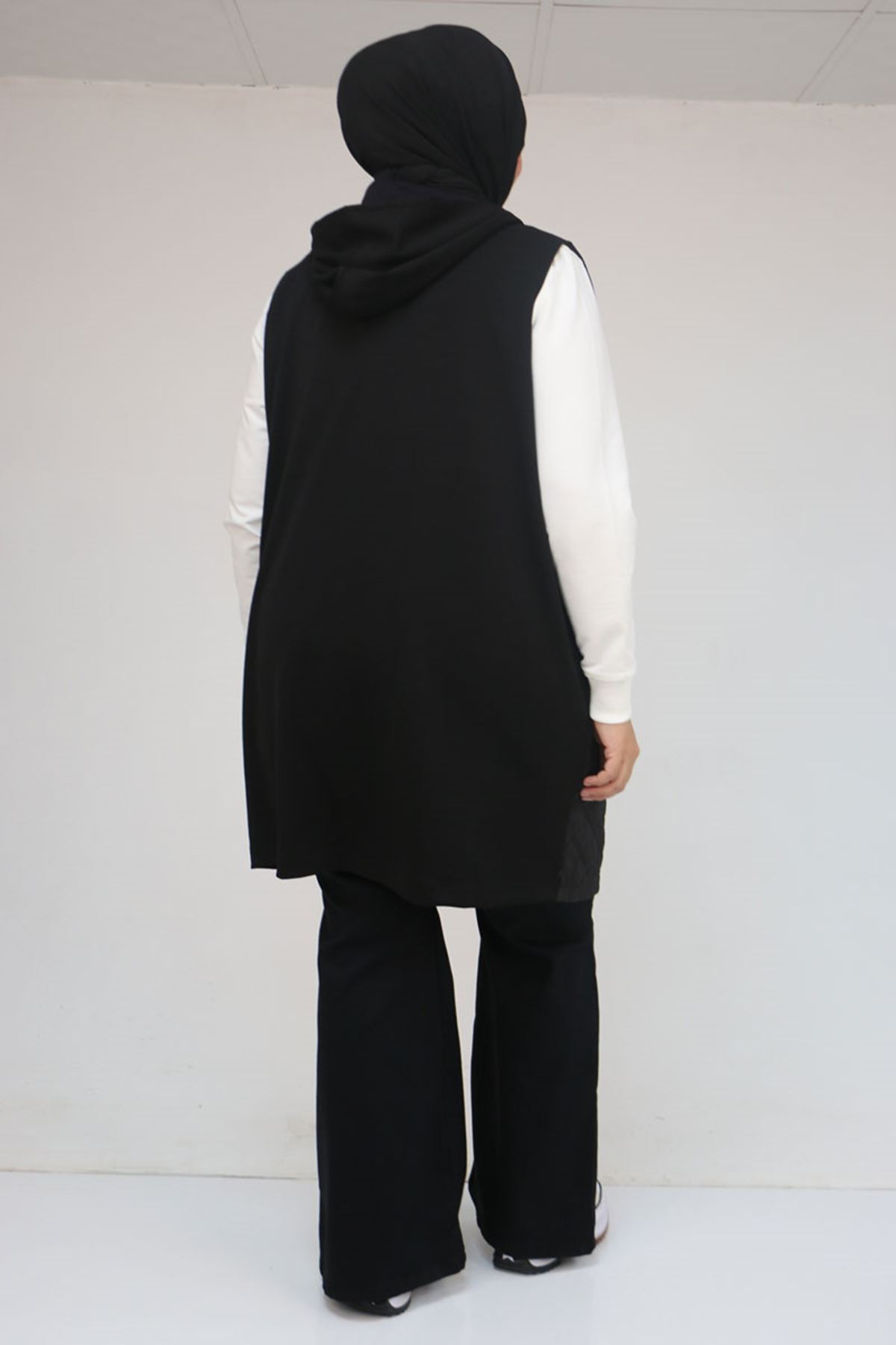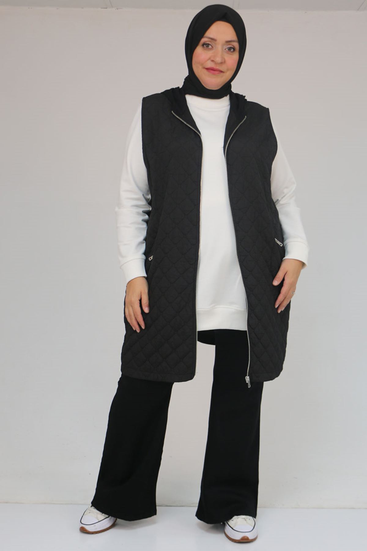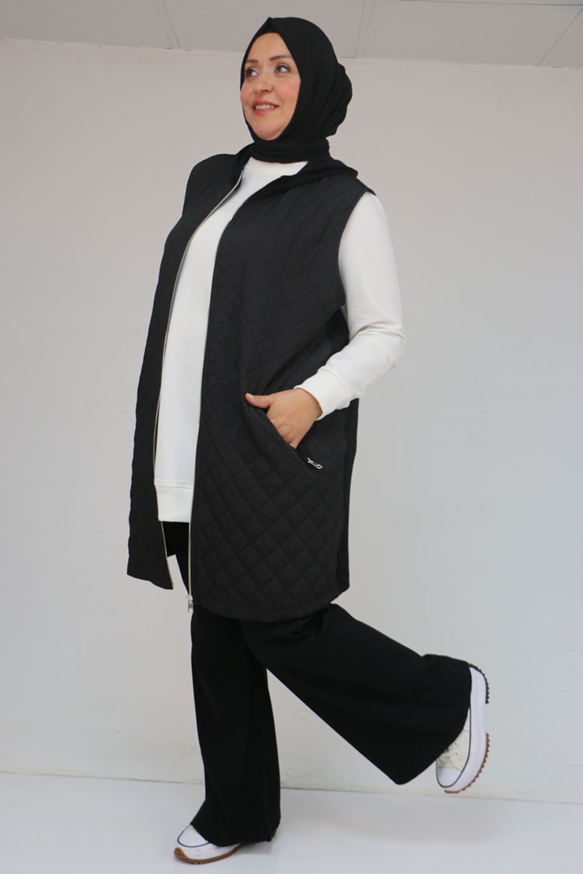 54011 Büyük Beden Cepleri Fermuarlı Modal - Kapitone Yelek - Siyah