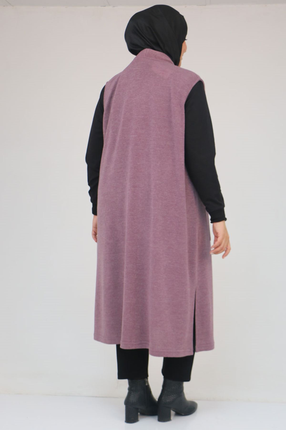 54012 Büyük Beden Cepli Giy-Çık Mir Yelek - Gül Kurusu