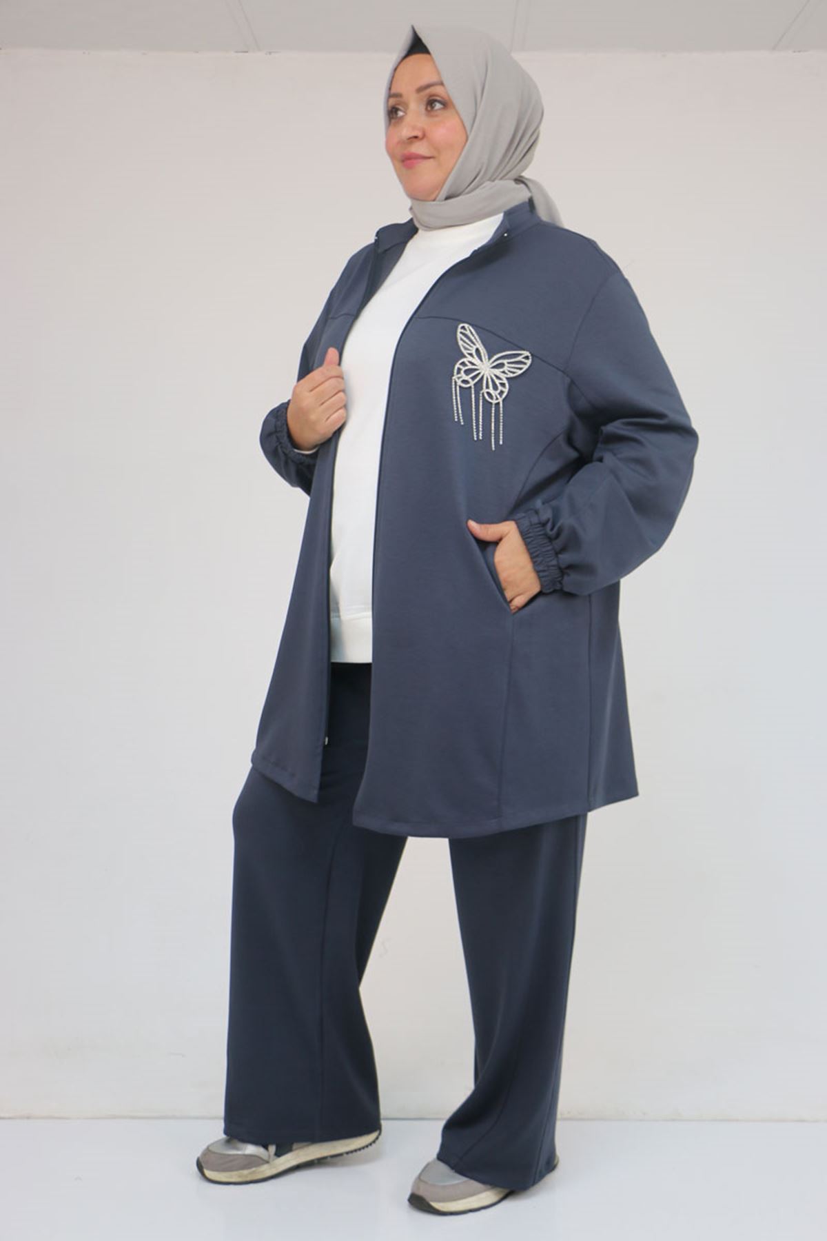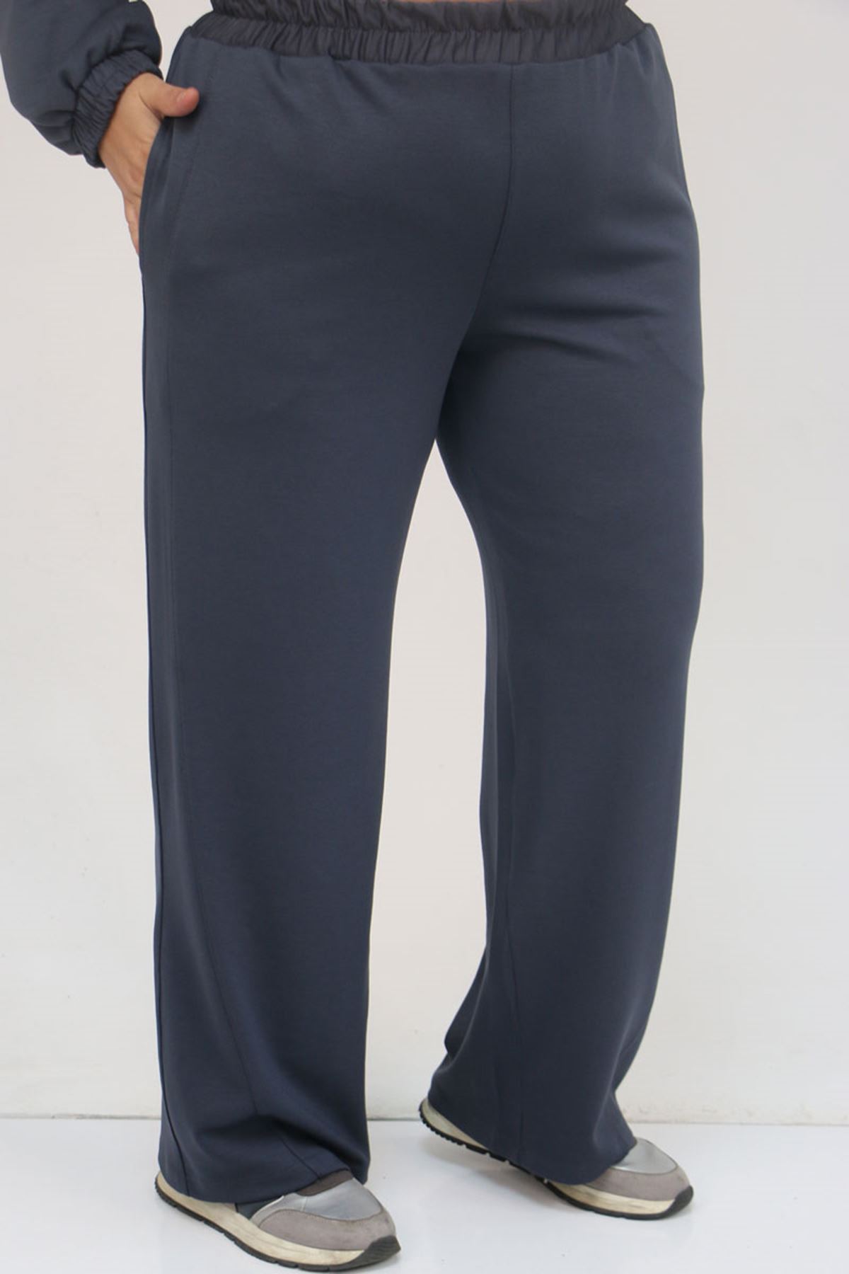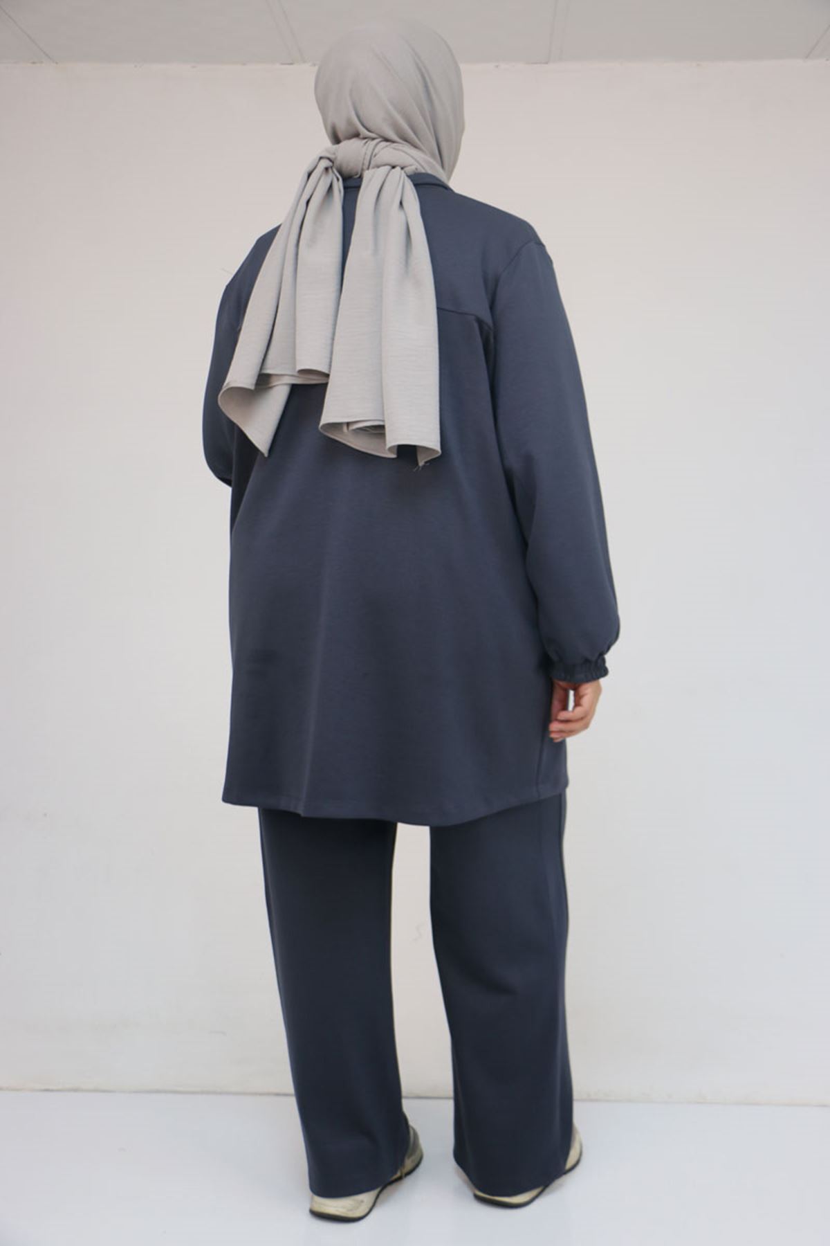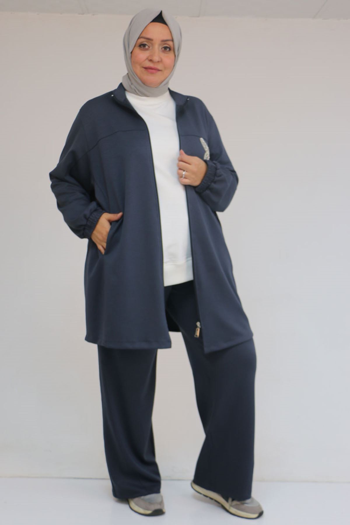 57057 Büyük Beden Fermuarlı Pantolonlu Modal Takım - Antrasit