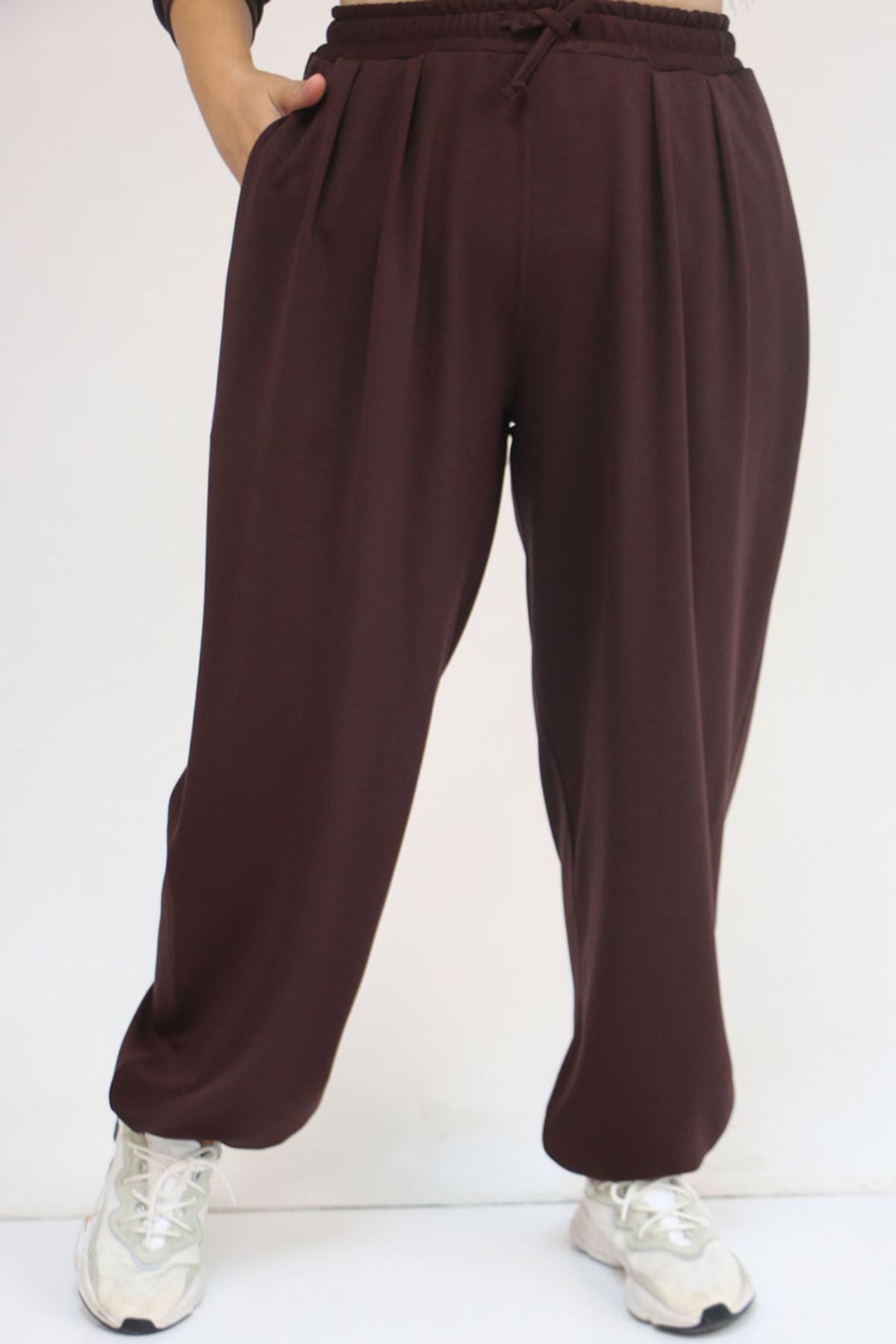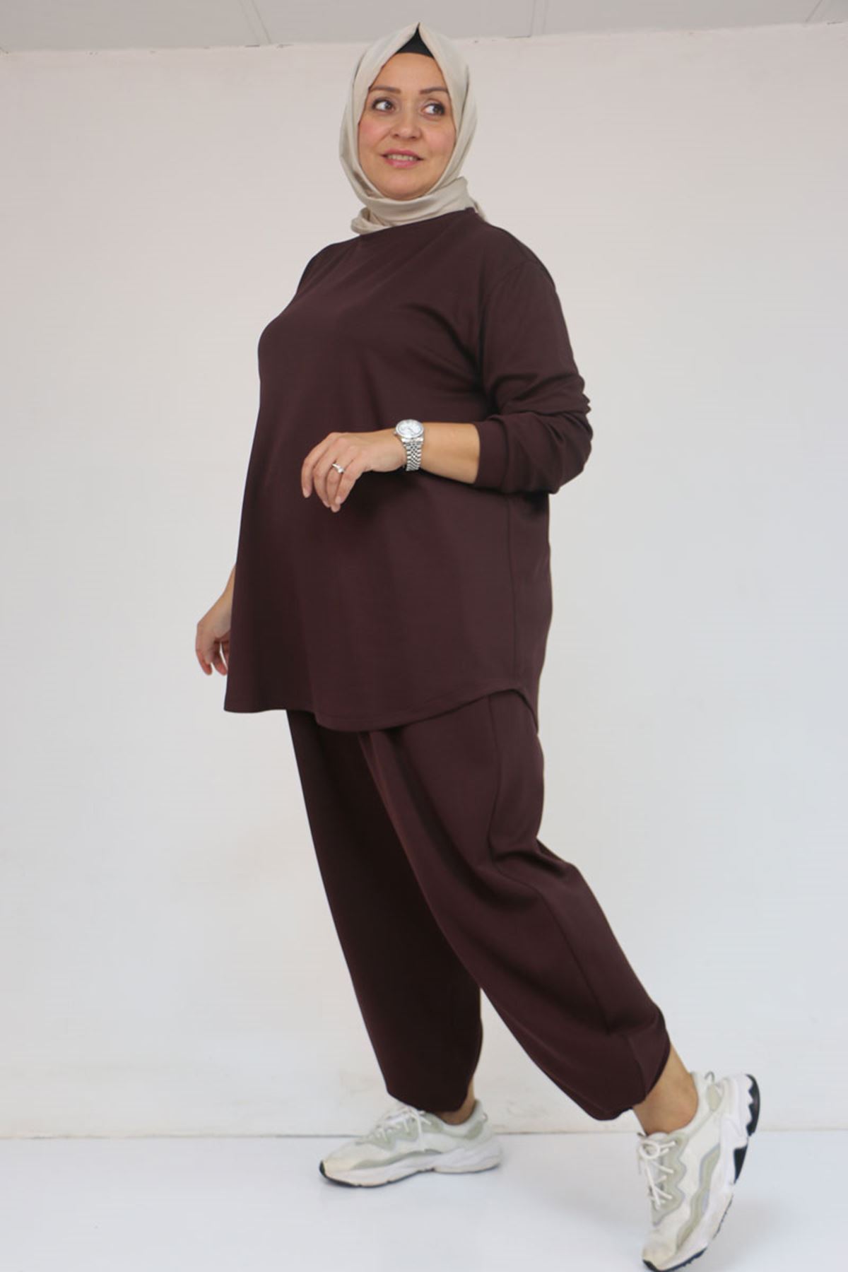 57058 Büyük Beden Pantolonlu Modal İkili Takım - Kahve