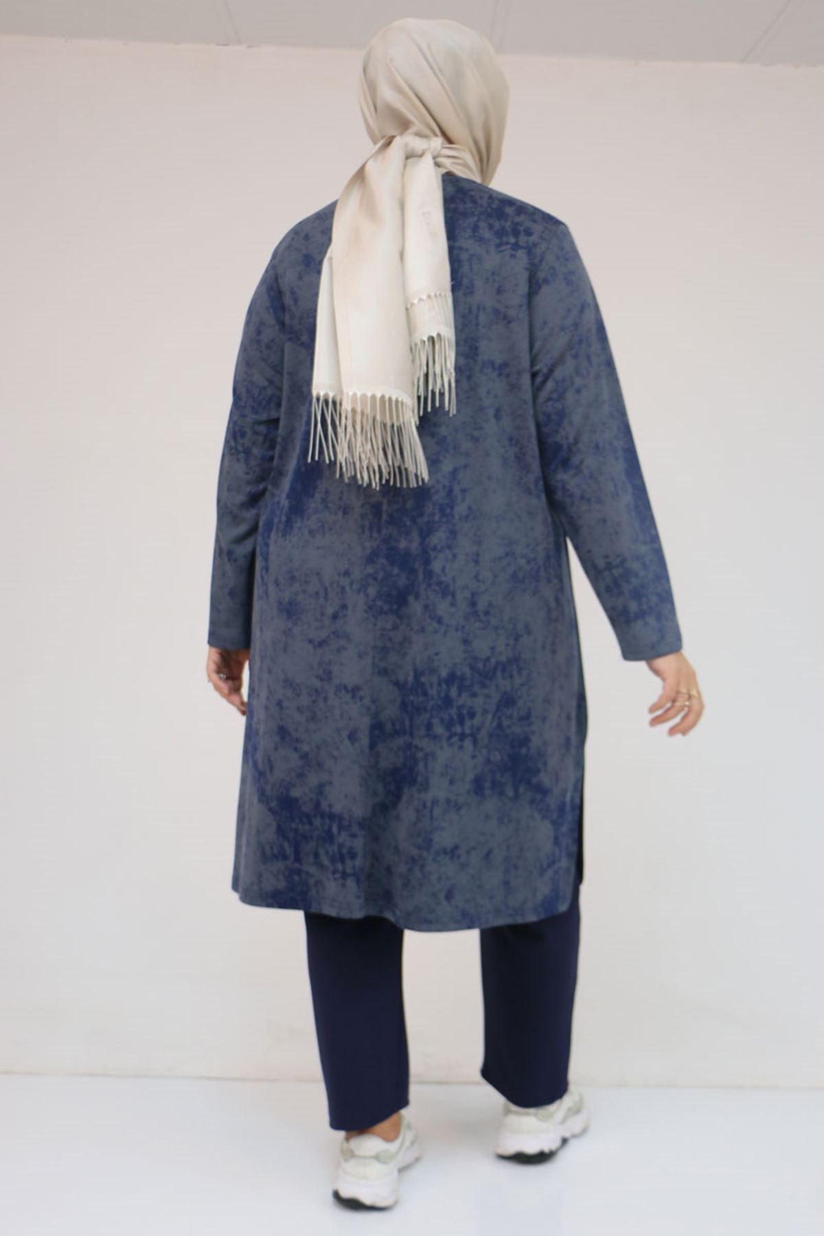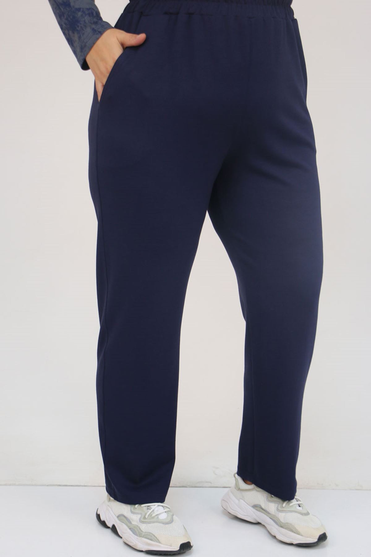 57070 Büyük Beden Önü Simetri Kesim Batik Pantolonlu Takım - Lacivert