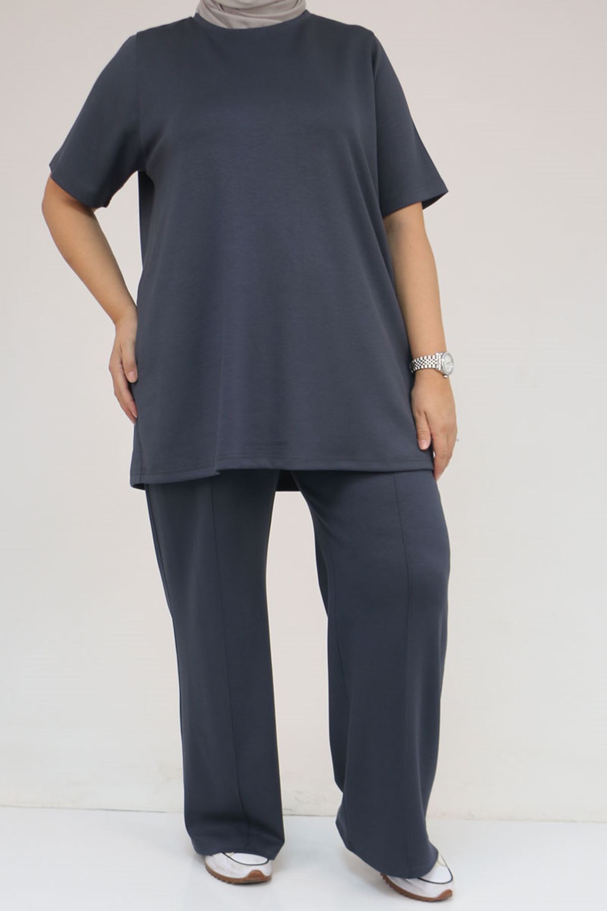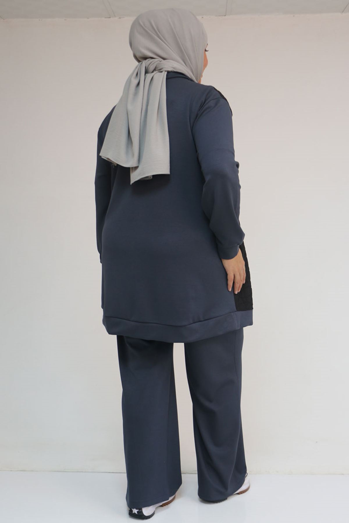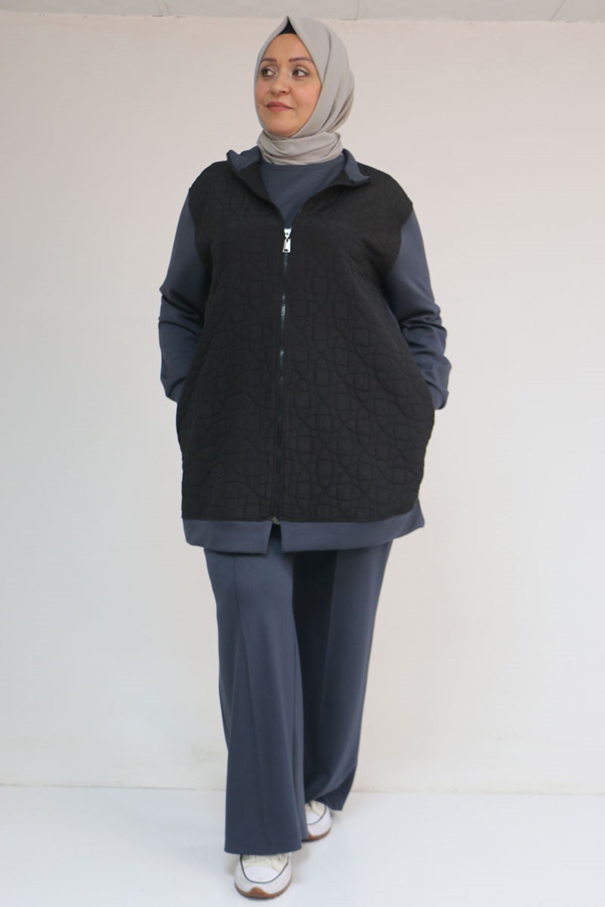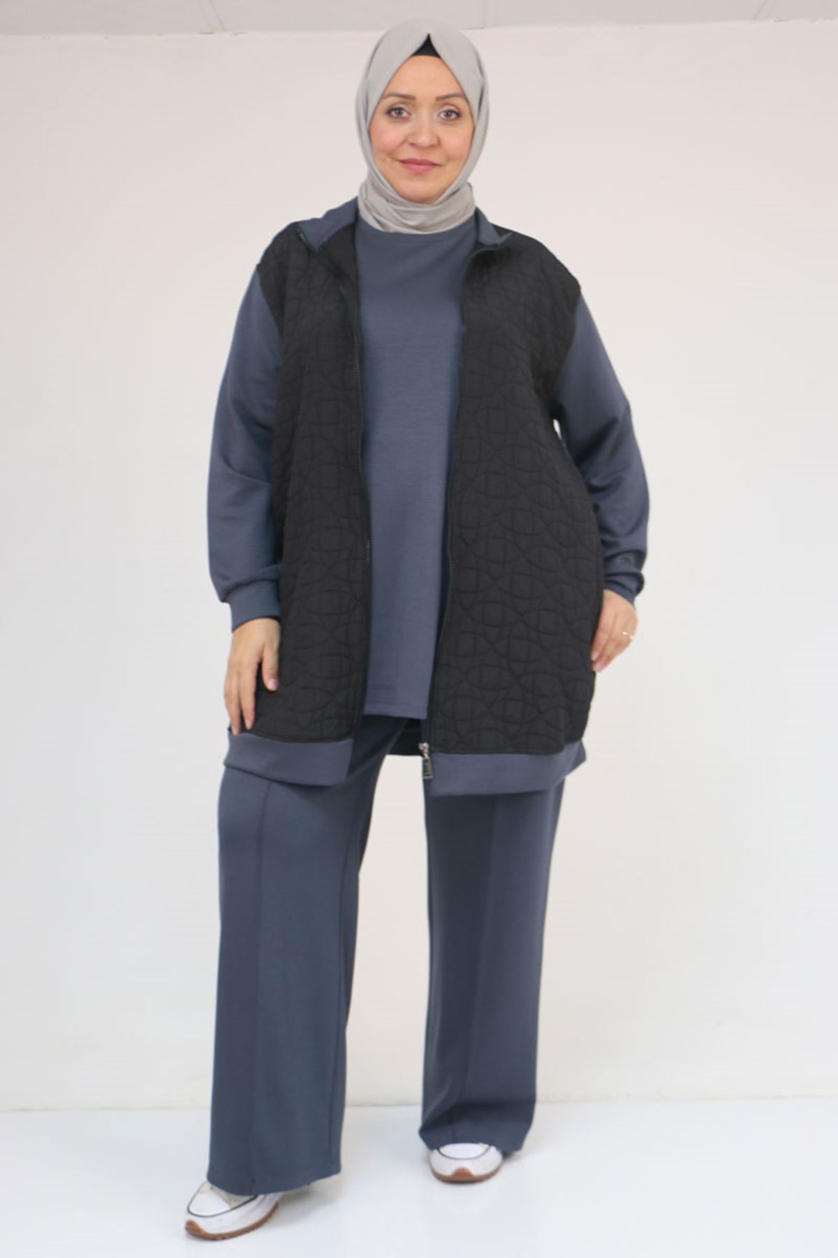 57304 Büyük Beden Ceketli Modal-Kapitone Üçlü Takım - Siyah-Antrasit