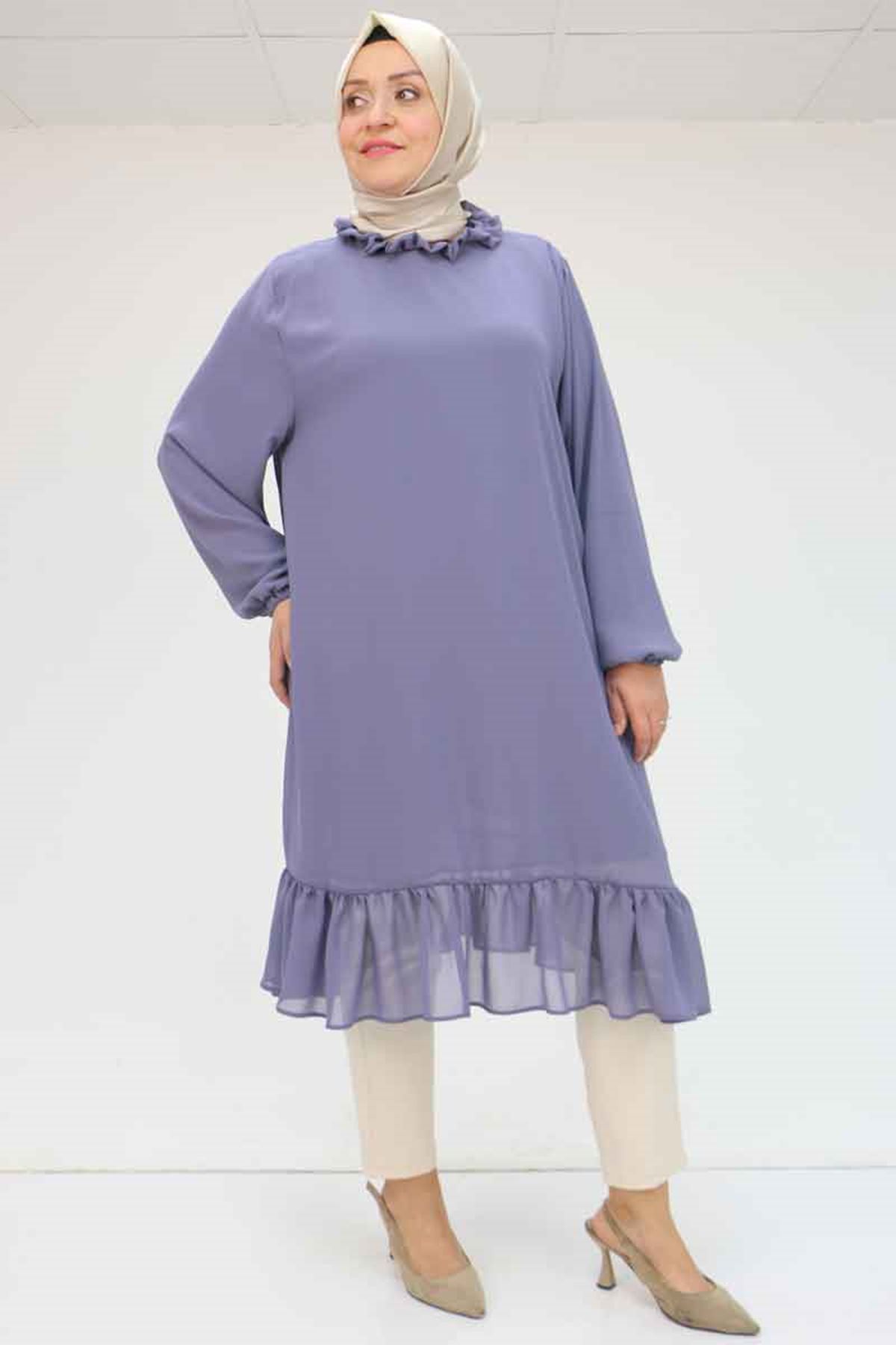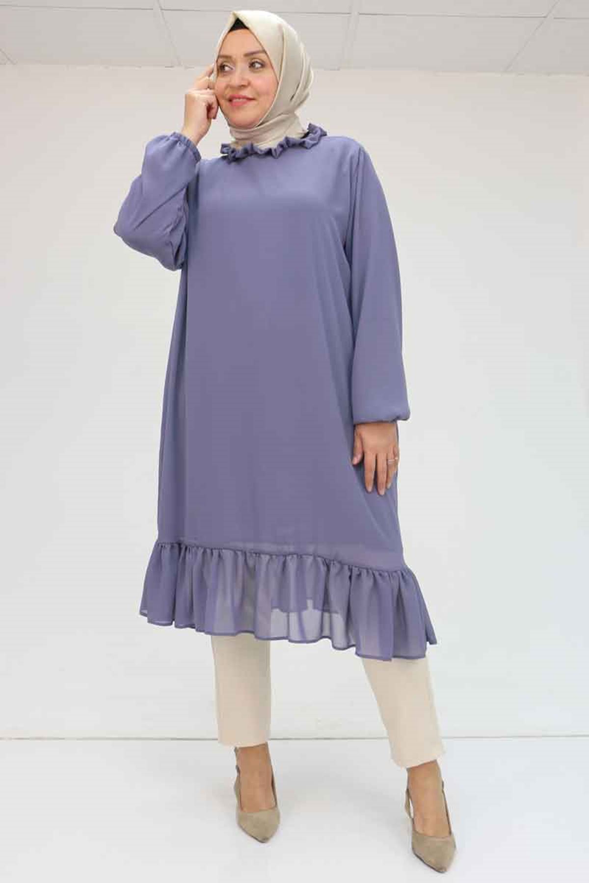 58017 Büyük Beden Etek Ucu Fırfırlı Şifon Tunik - Açık Lila