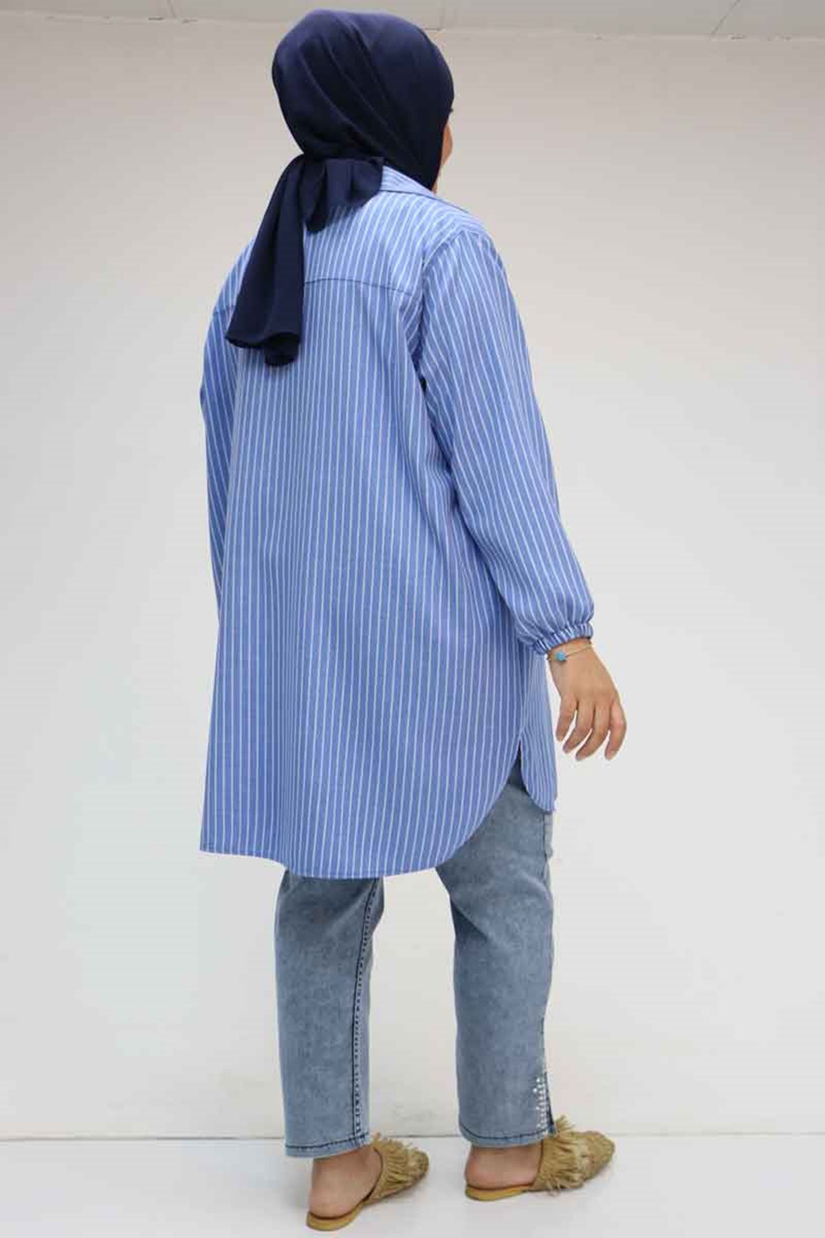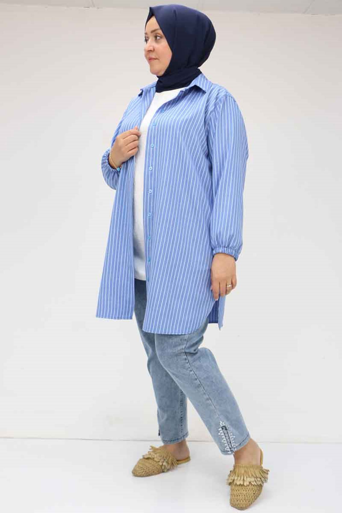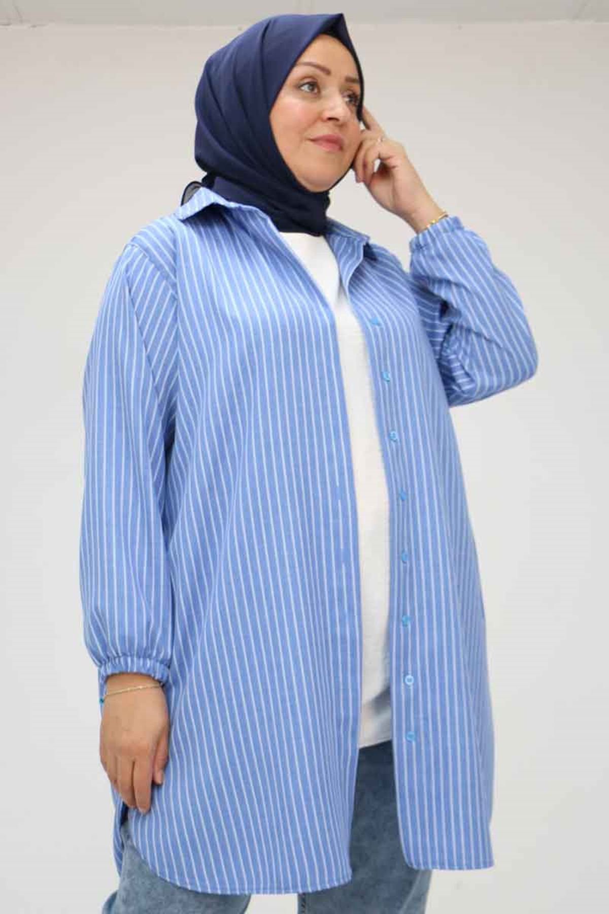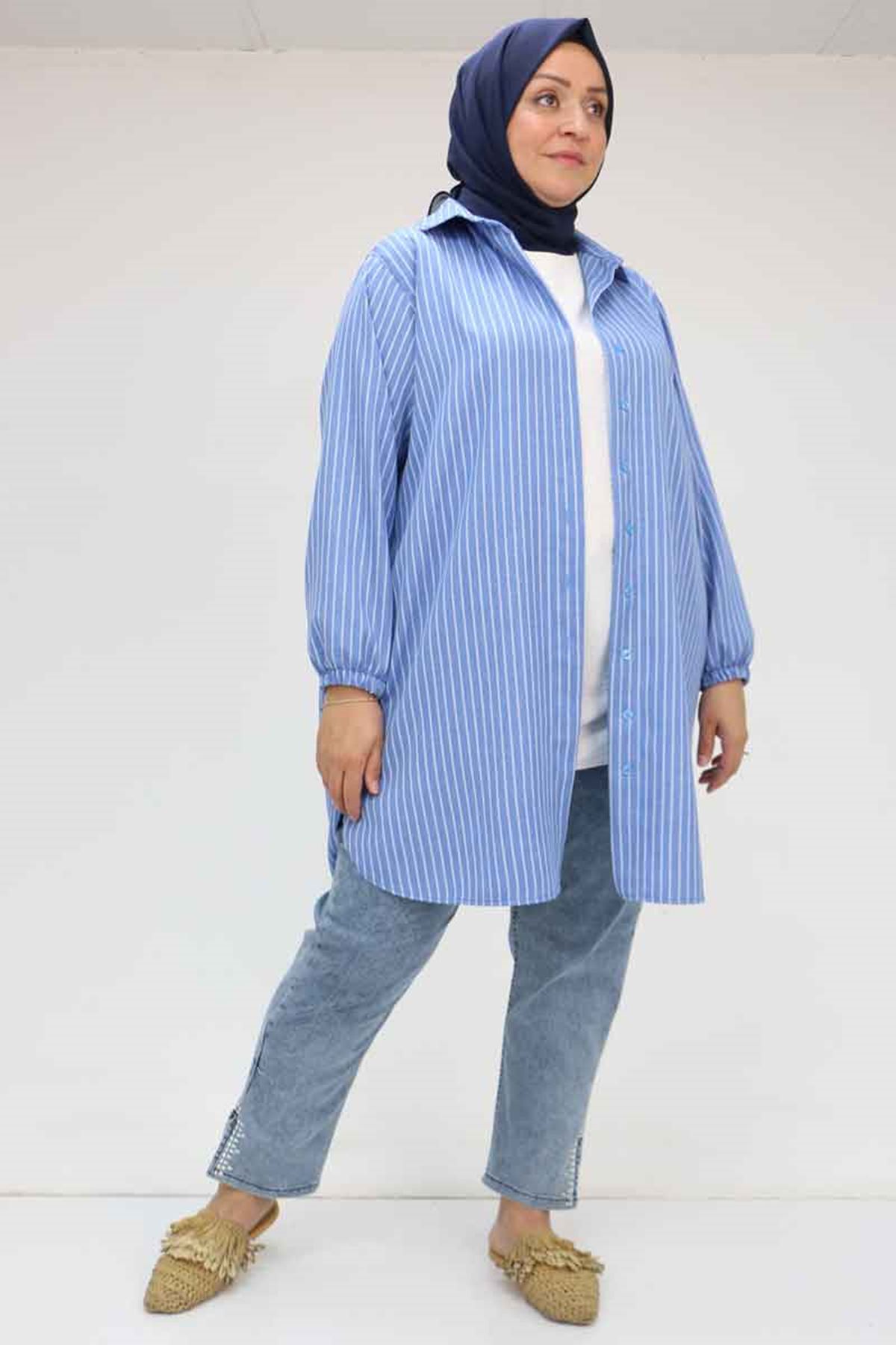 58068-E Büyük Beden Erkek Yakalı Gömlek - Çizgili İndigo