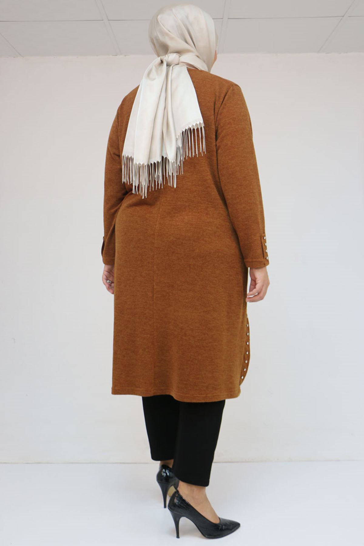 58109 Büyük Beden Patlı Düğmeli Mir Tunik - Taba