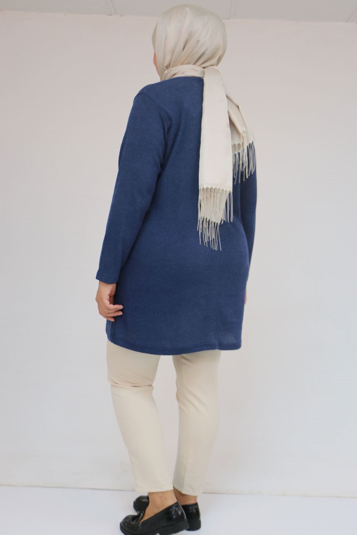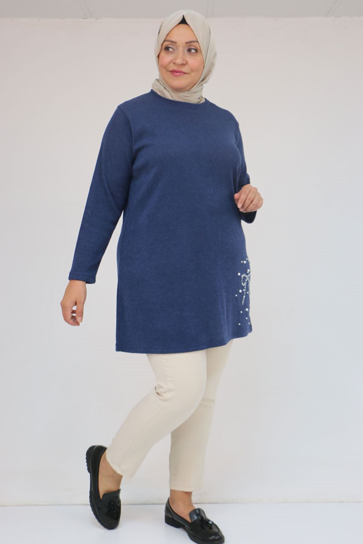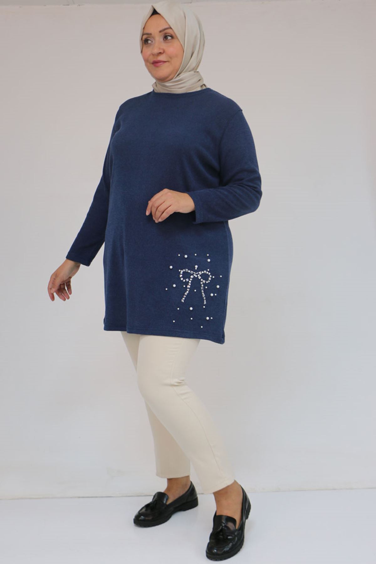 58111 Büyük Beden Önü Taş Detaylı Mir Tunik - İndigo