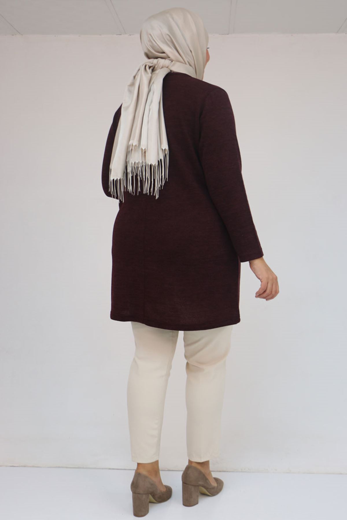 58111 Büyük Beden Önü Taş Detaylı Mir Tunik - Mürdüm