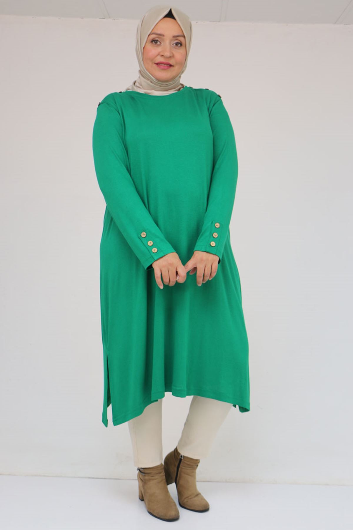 58116 Büyük Beden Kol Ve Omzu Düğme Detaylı Çilek Tunik - Benetton