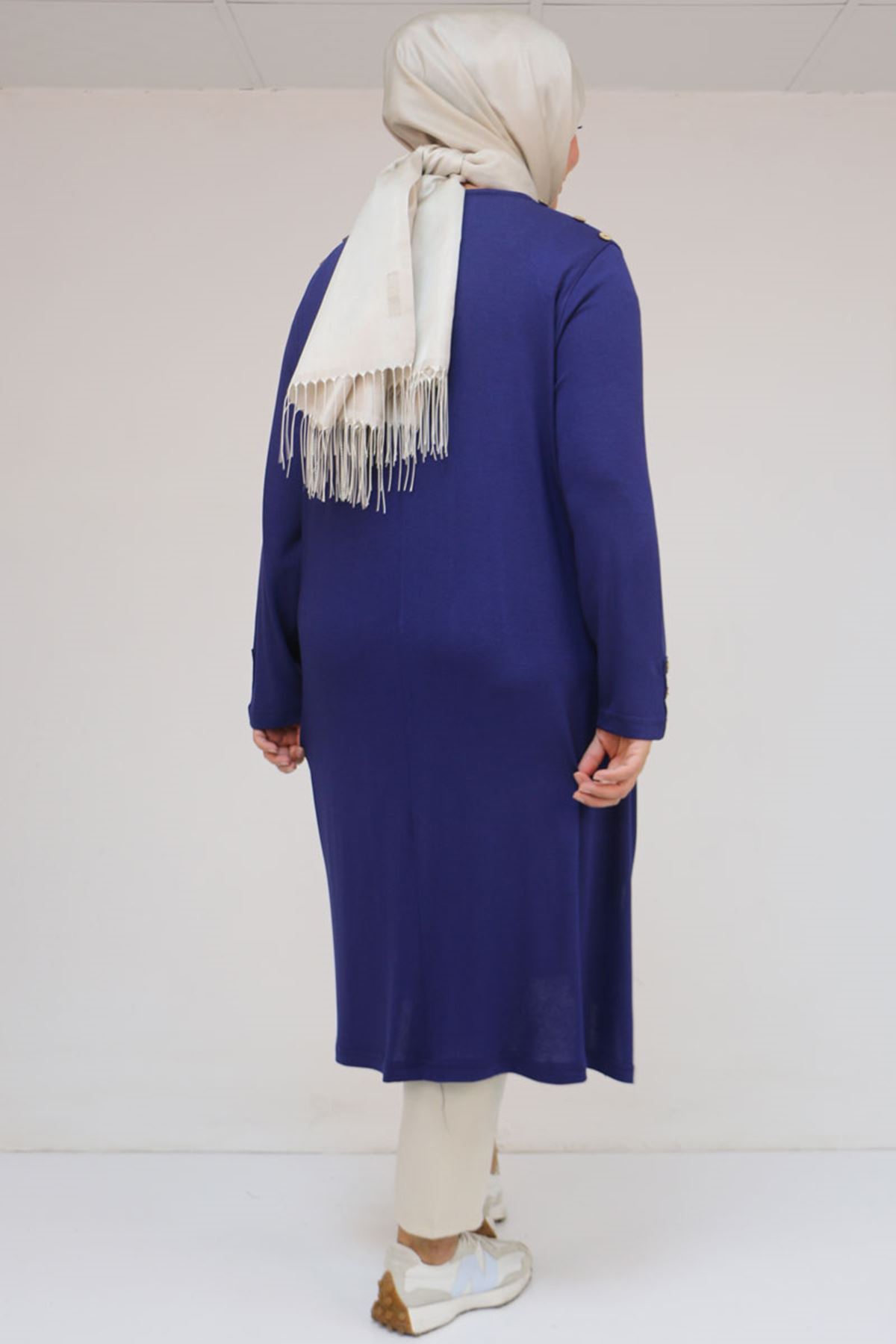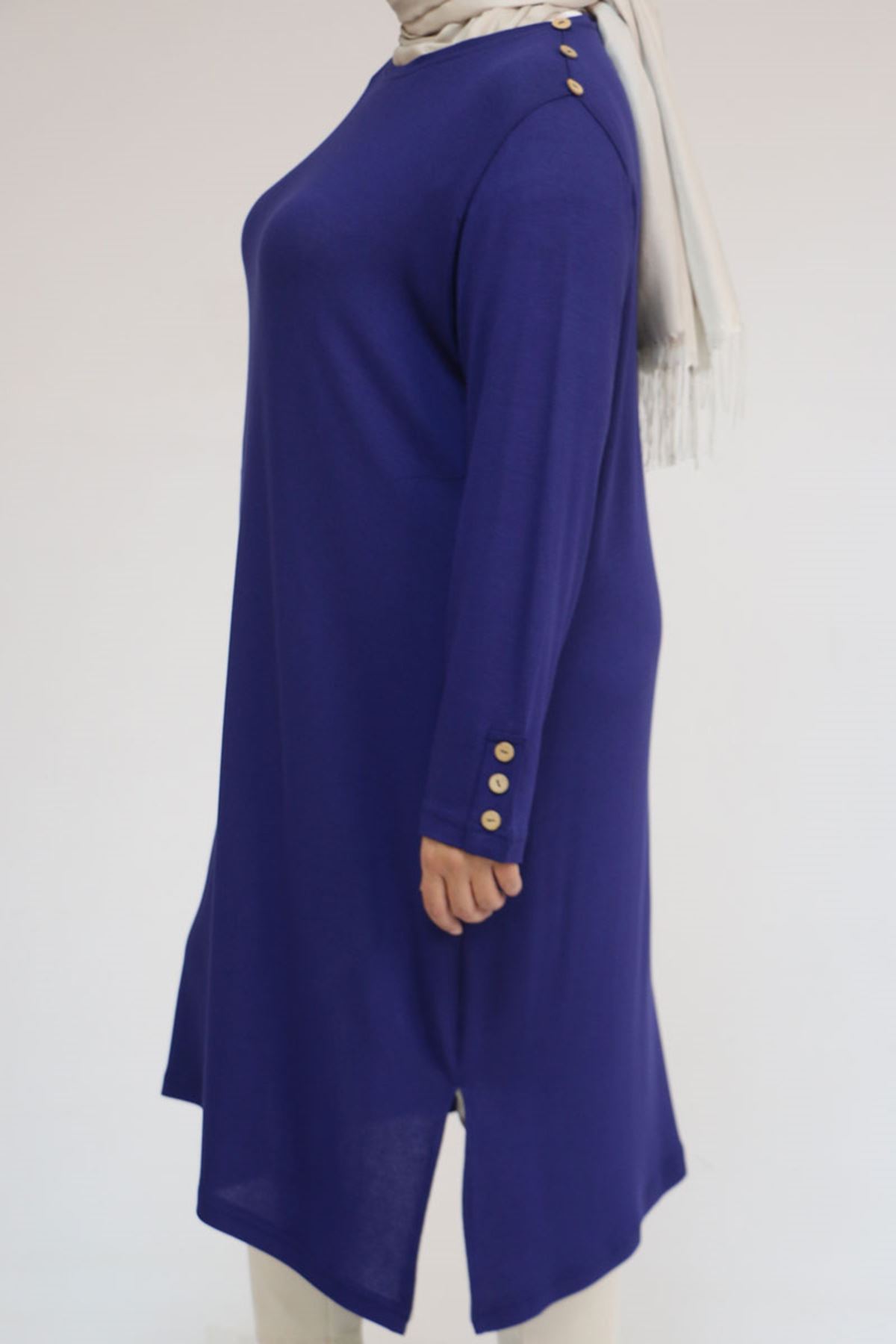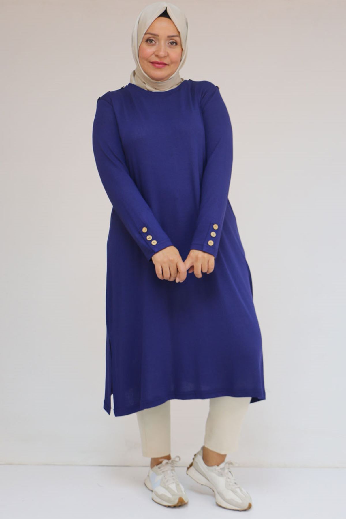 58116 Büyük Beden Kol Ve Omzu Düğme Detaylı Çilek Tunik - İndigo
