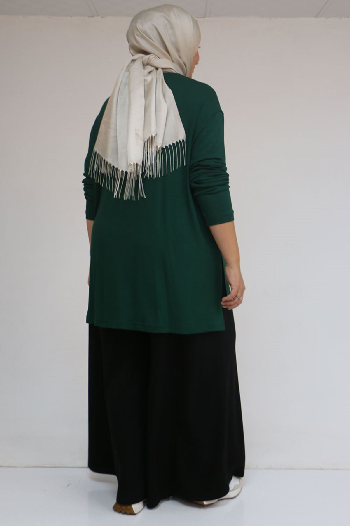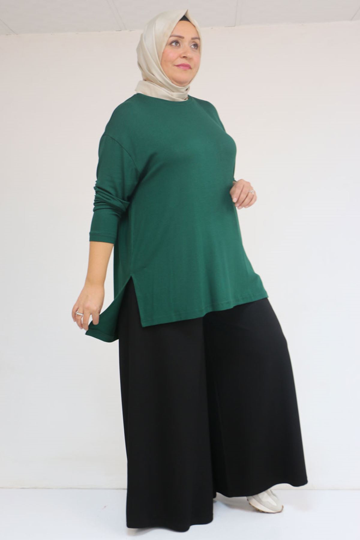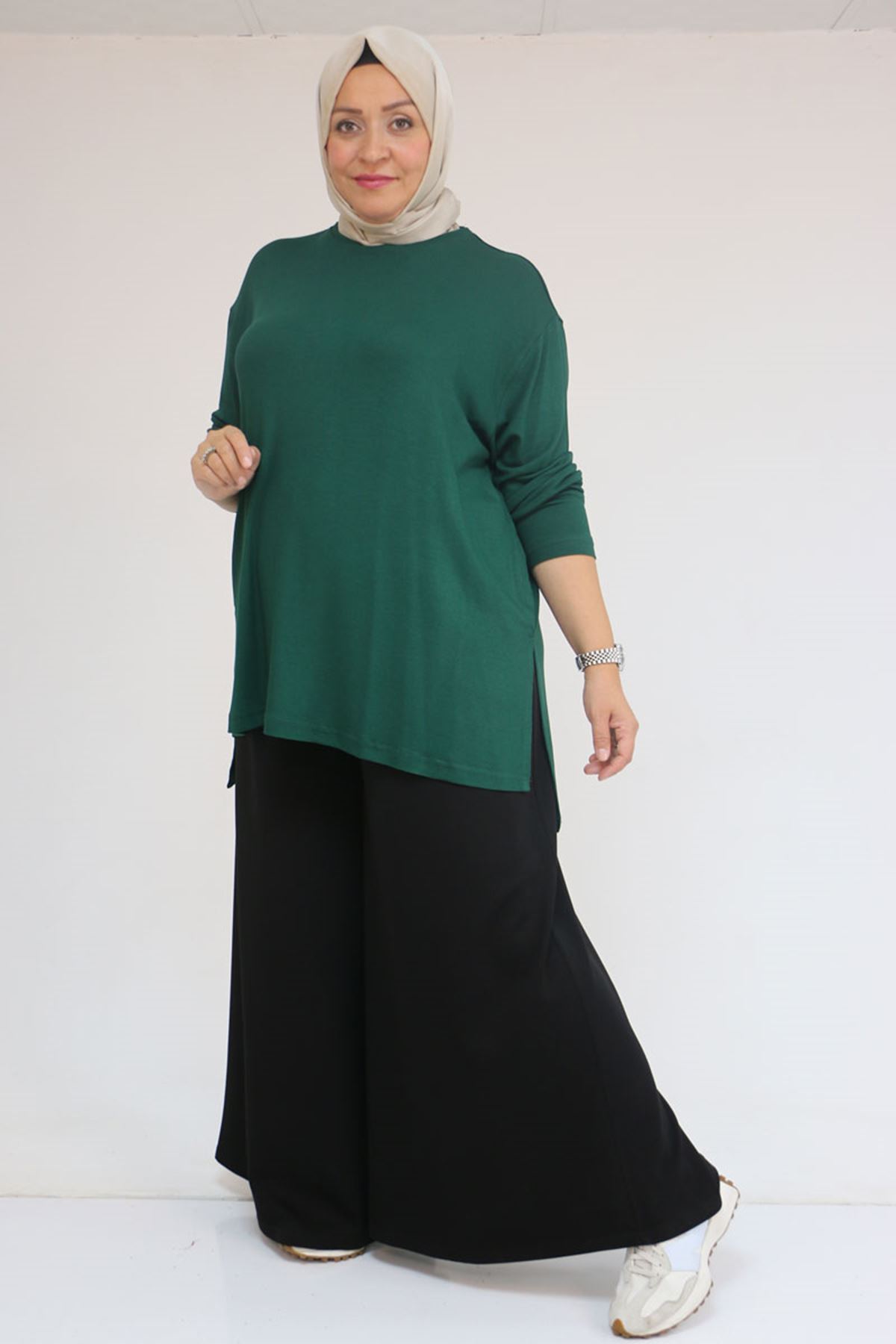 58119 Büyük Beden Yanı Yırtmaçlı Çilek Tunik - Zümrüt