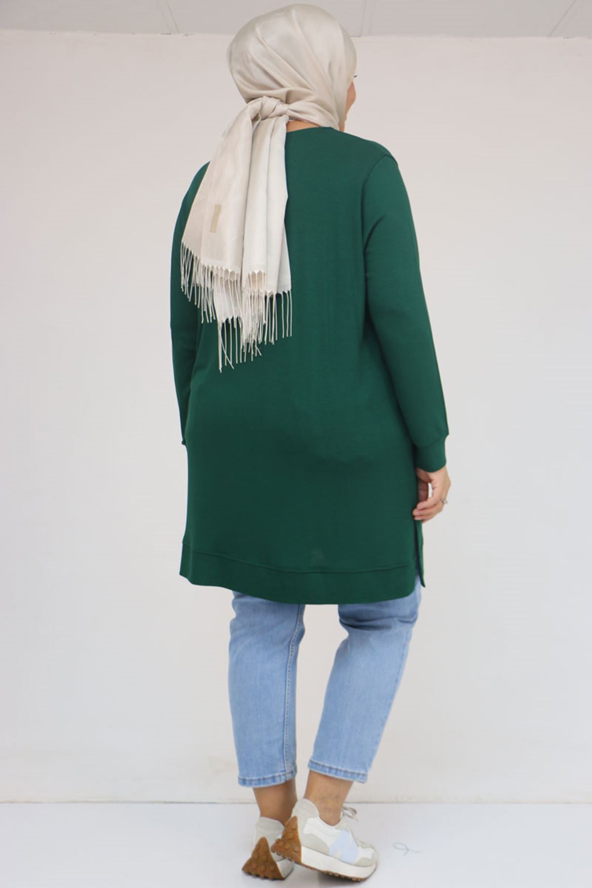 58120 Büyük Beden Manşetli Çilek Tunik - Zümrüt