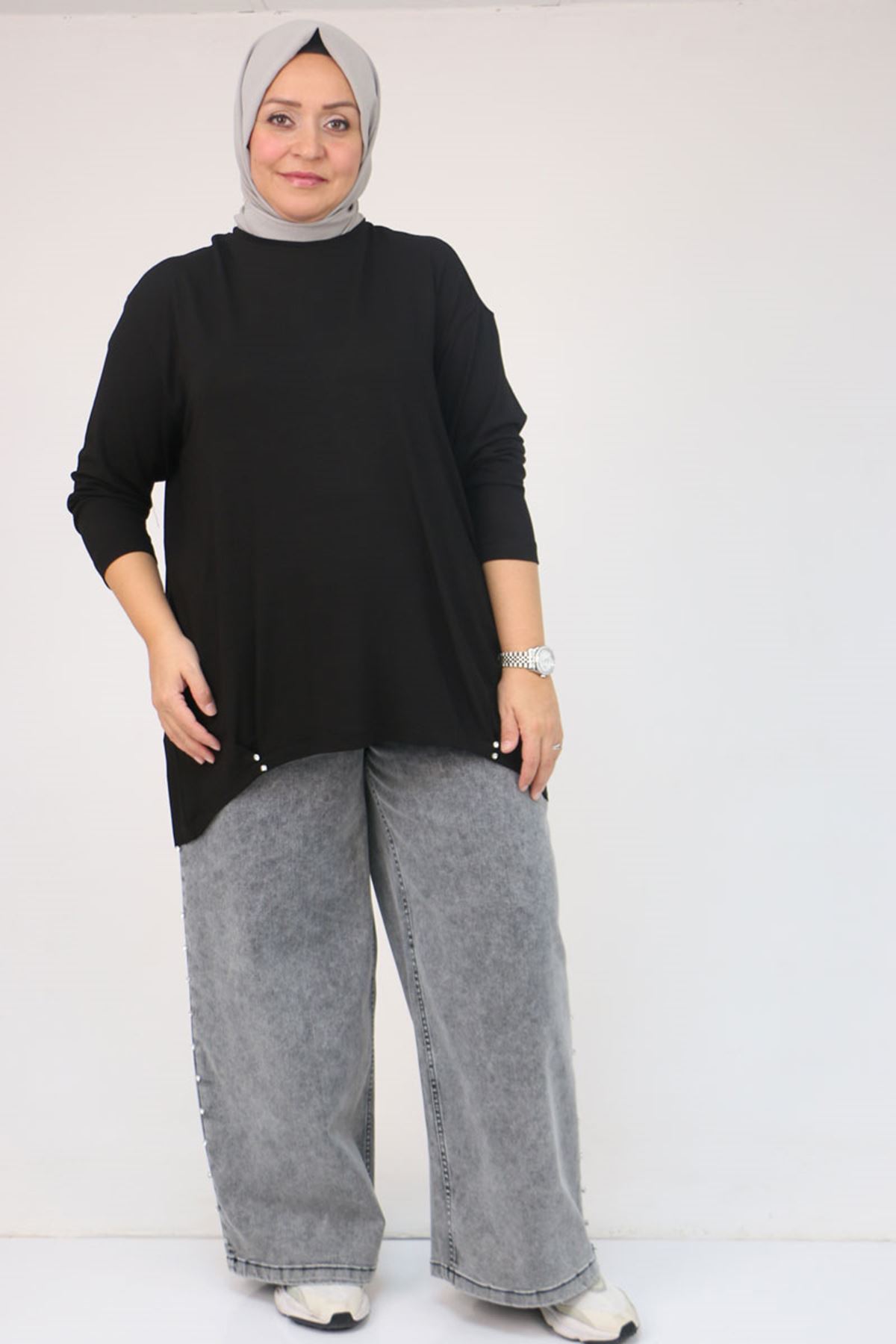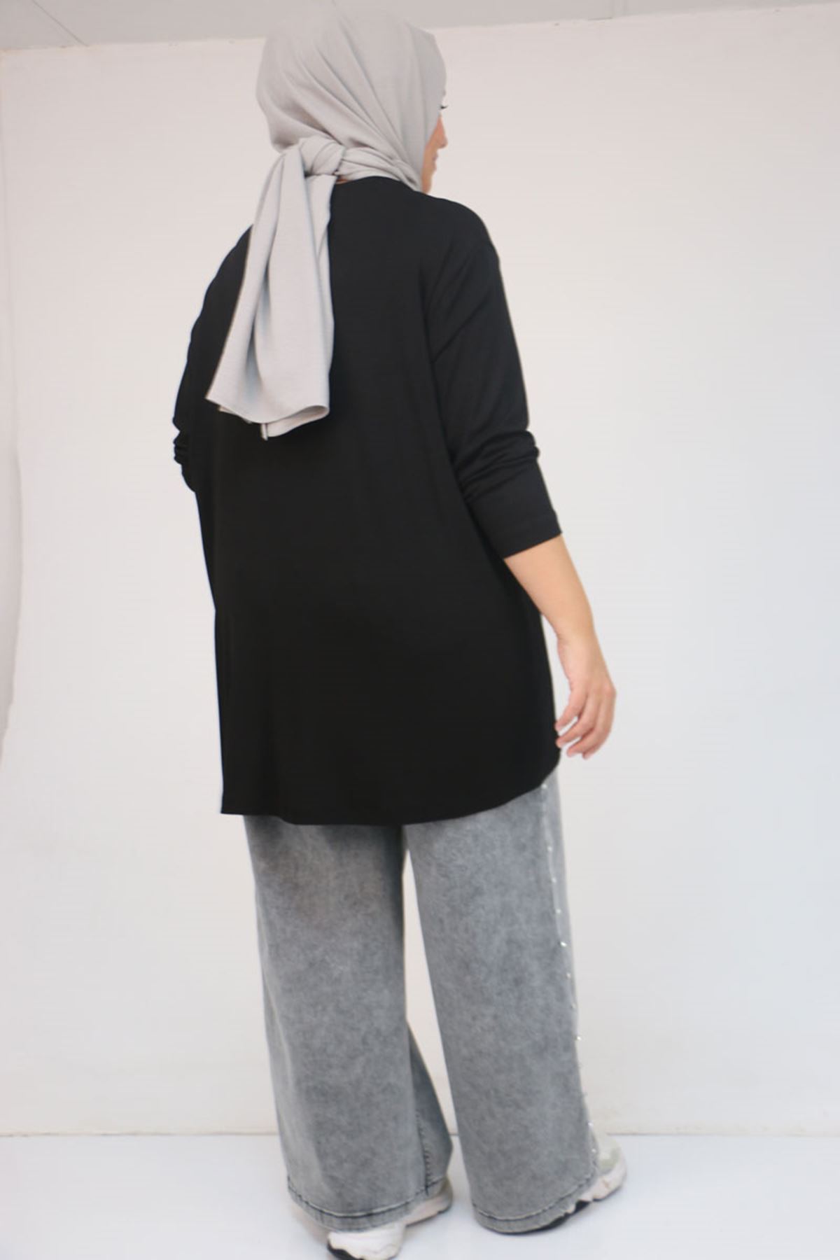 58121 Büyük Beden Yanları Biyeli Çilek Tunik - Siyah