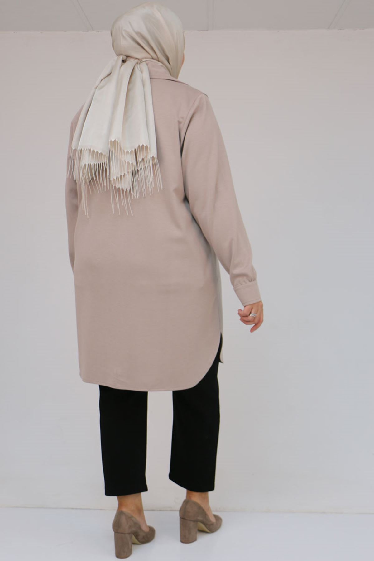 58126 Büyük Beden Düğmeli Aksesuar Detaylı Modal Tunik - Bej
