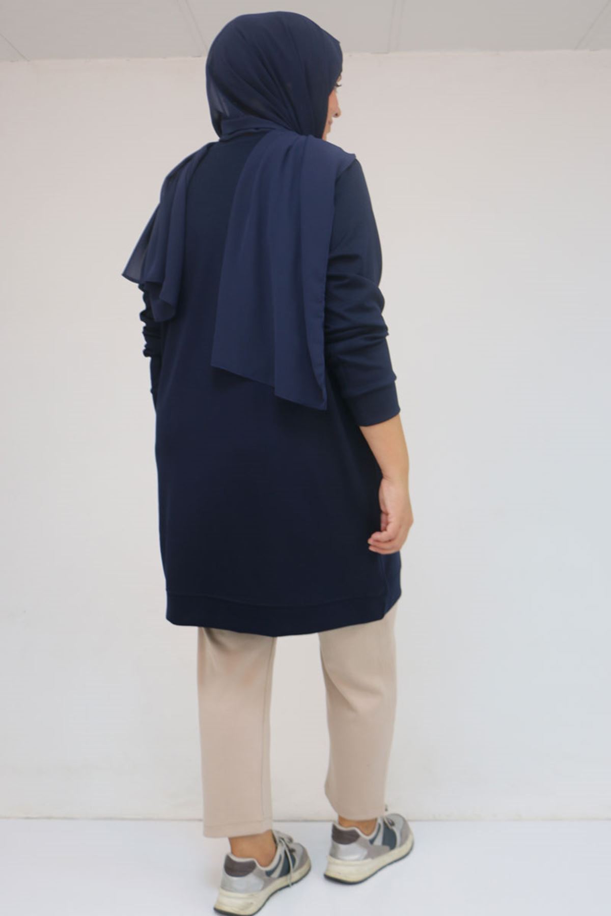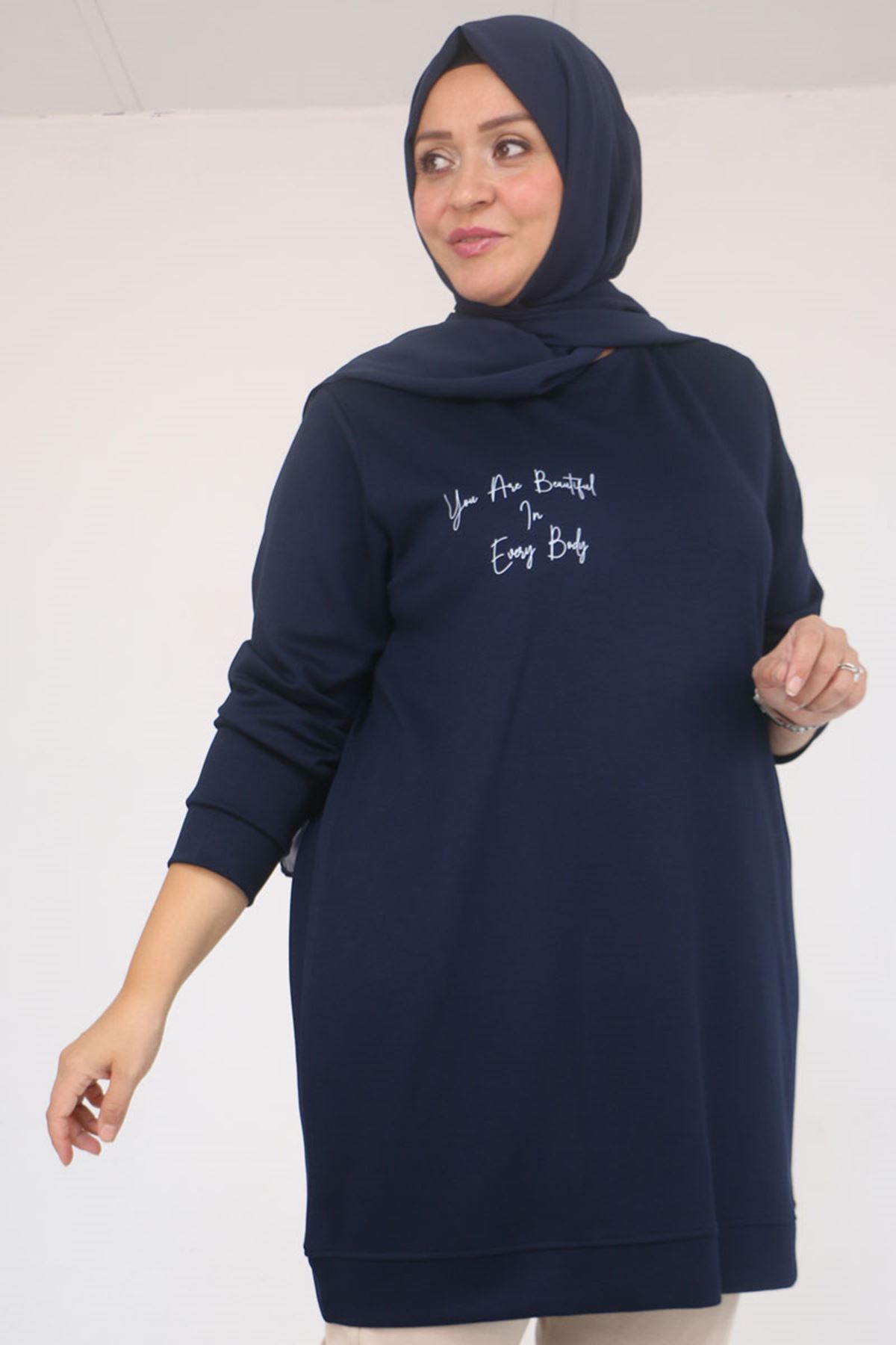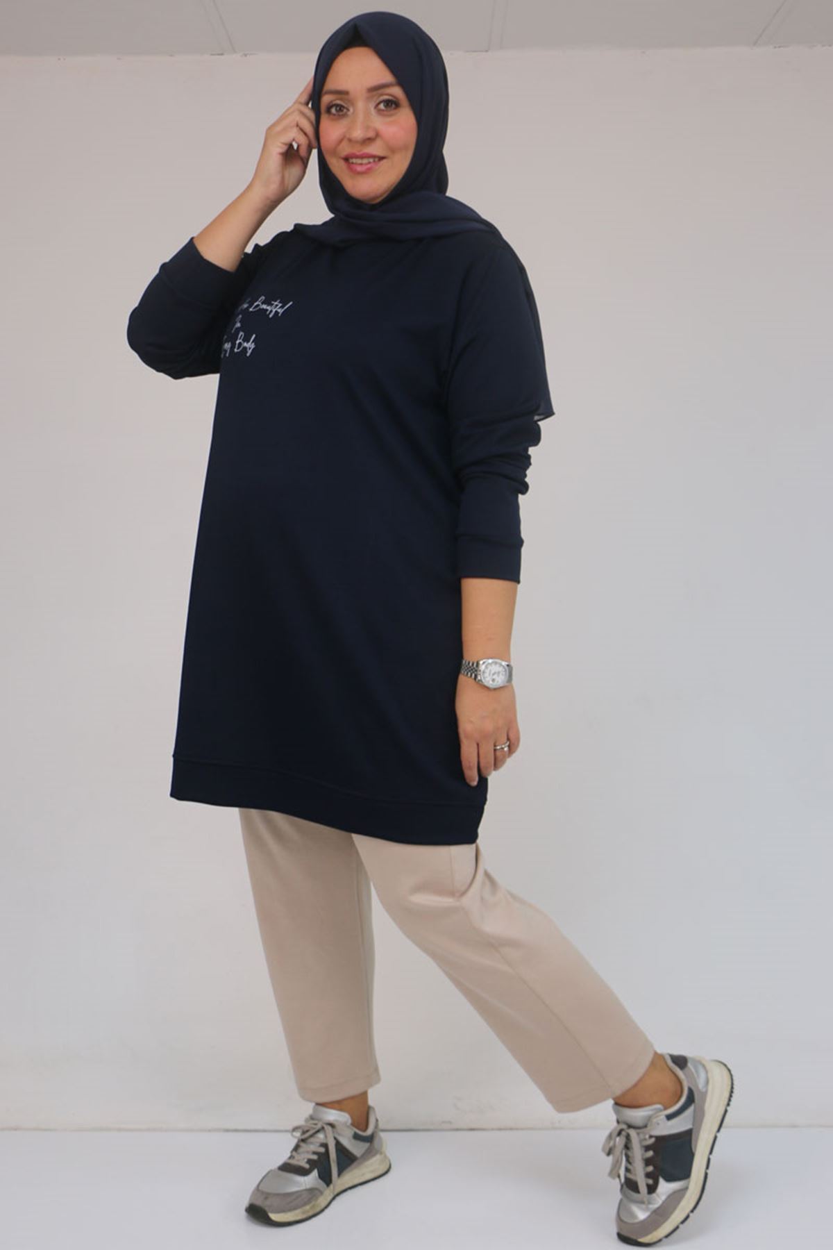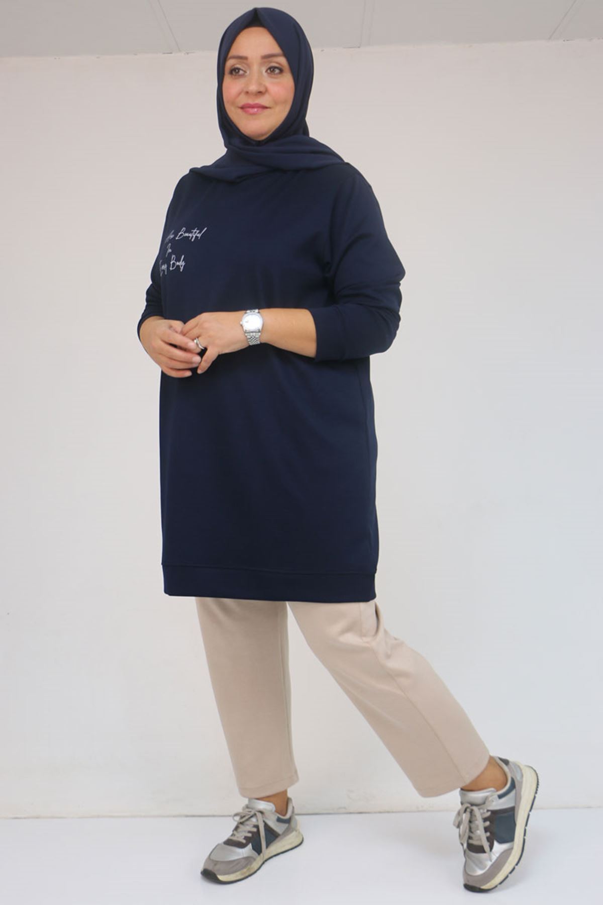 58128 Büyük Beden Baskı Detaylı Modal Tunik - Lacivert